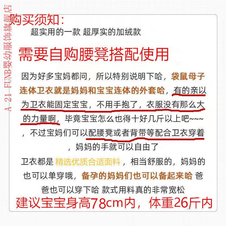 A 21 FUNB extra large size 2-300Jin Jin is equal to 0.5kg Kangaroo mother mother and child onesie baby spring and autumn new nursing sweatshirt plus velvet jacket apricot plus velvet waistless stool 190 3XL recommended 200-250Jin Jin is equal to 0.5kg
