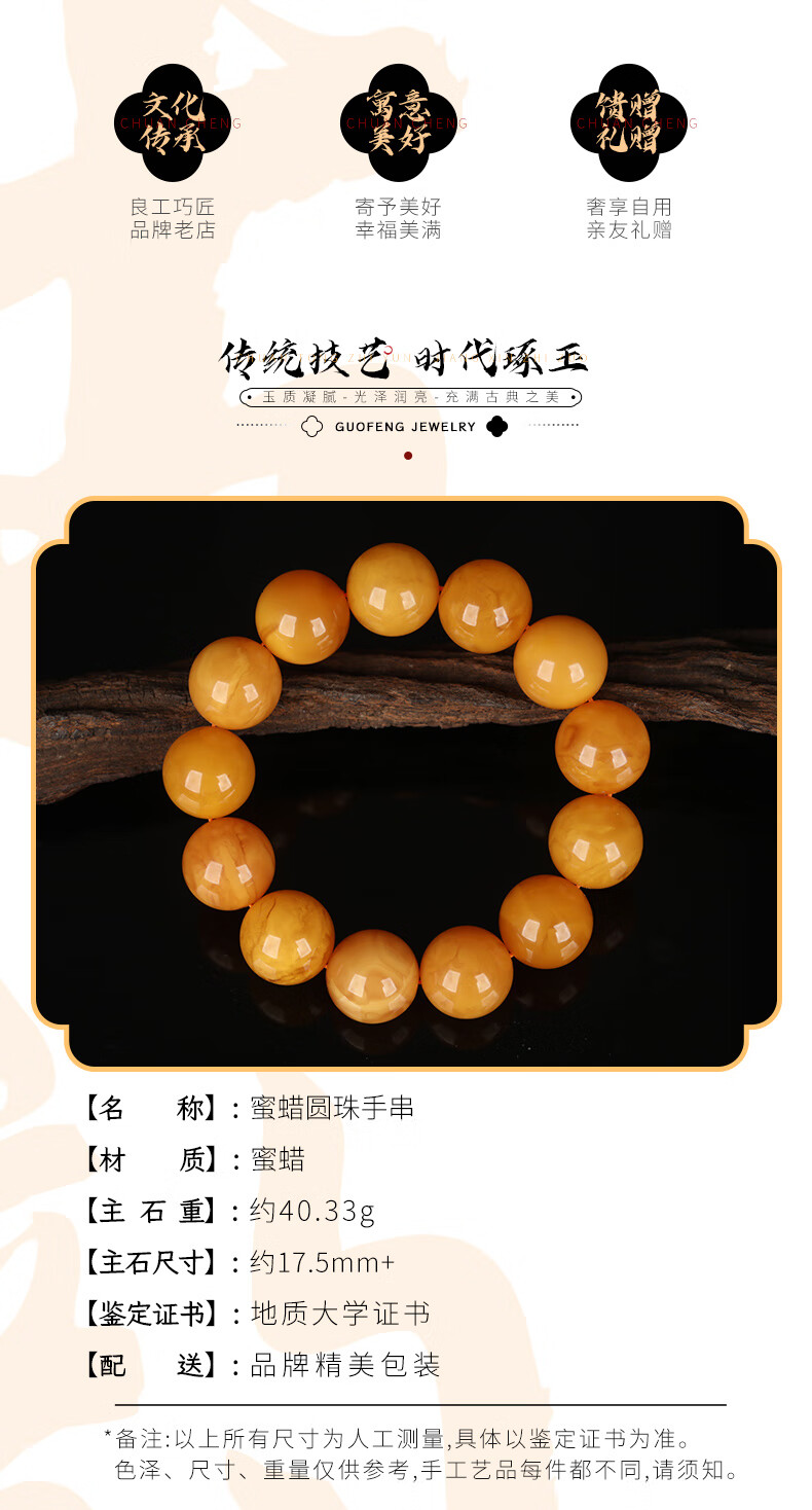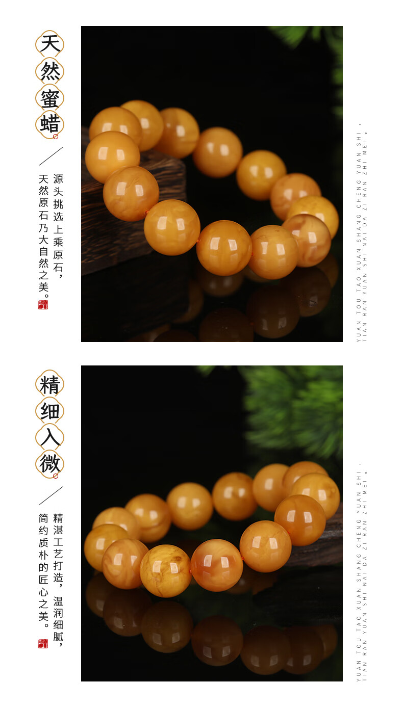 OUCERNY Beeswax Bracelet Collection Presbyopia Wax Natural Amber Chicken Oil Red Honey Buddha Beads Old Wax Bracelet Russian Material Orphan Natural Beeswax Orphan Flower Wax Ball Bead Bracelet