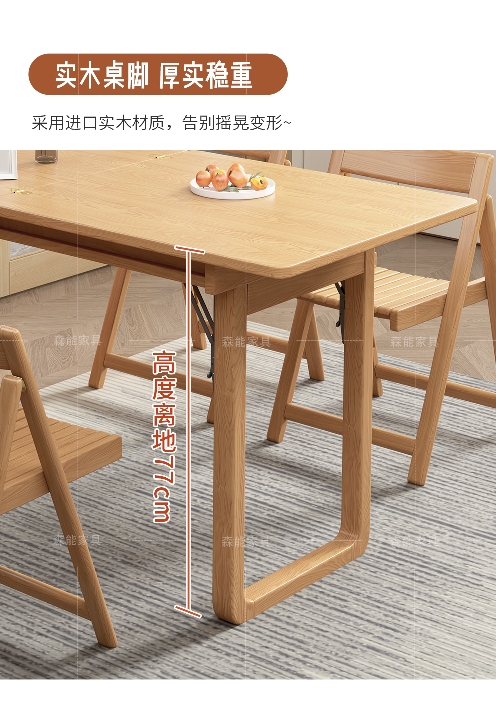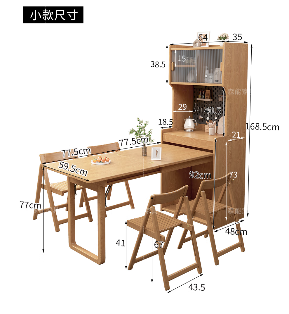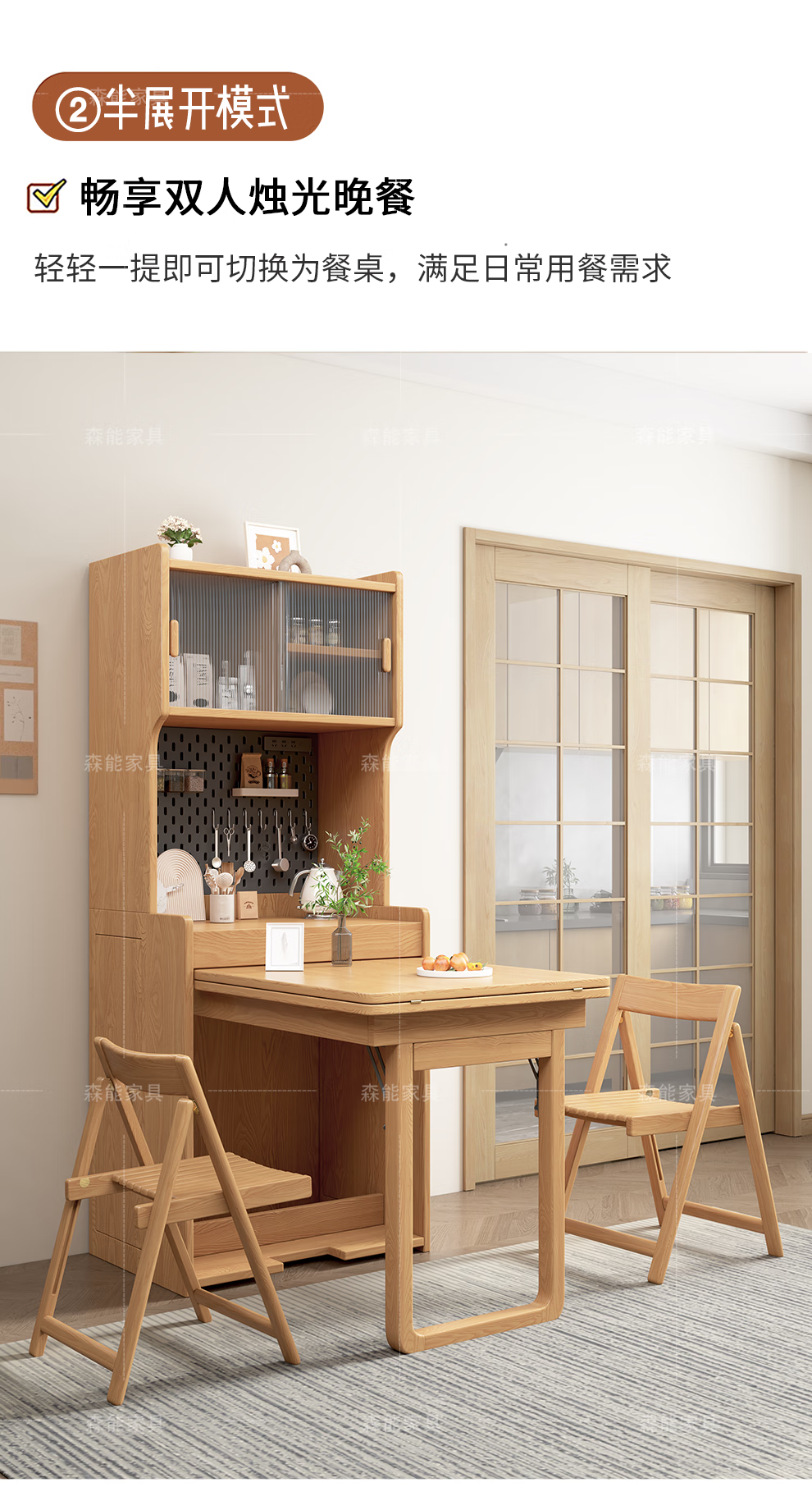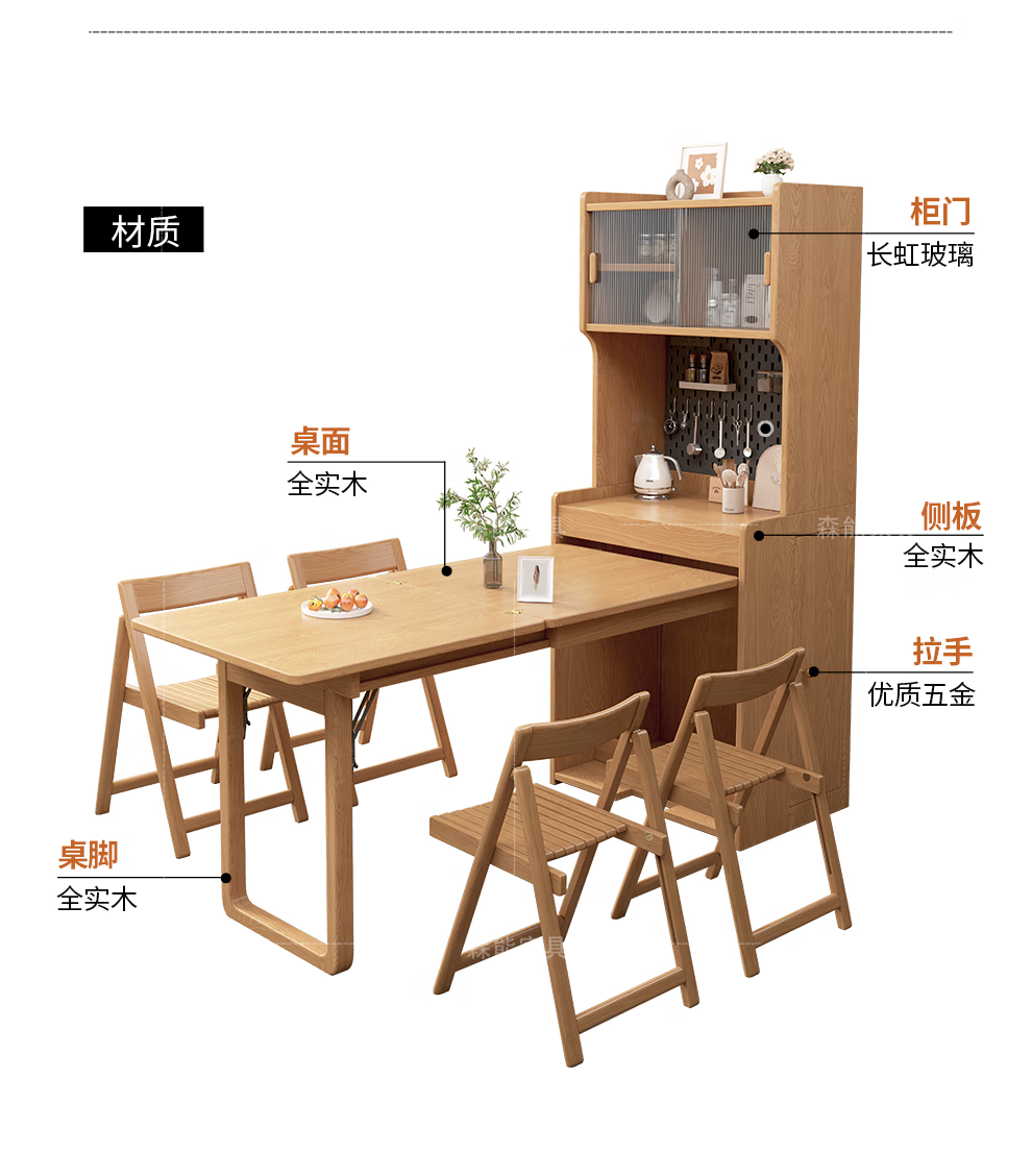 Senneng solid wood folding dining table and sideboard combination telescopic small apartment modern simple dining table 64cm telescopic dining table + folding chairs x2