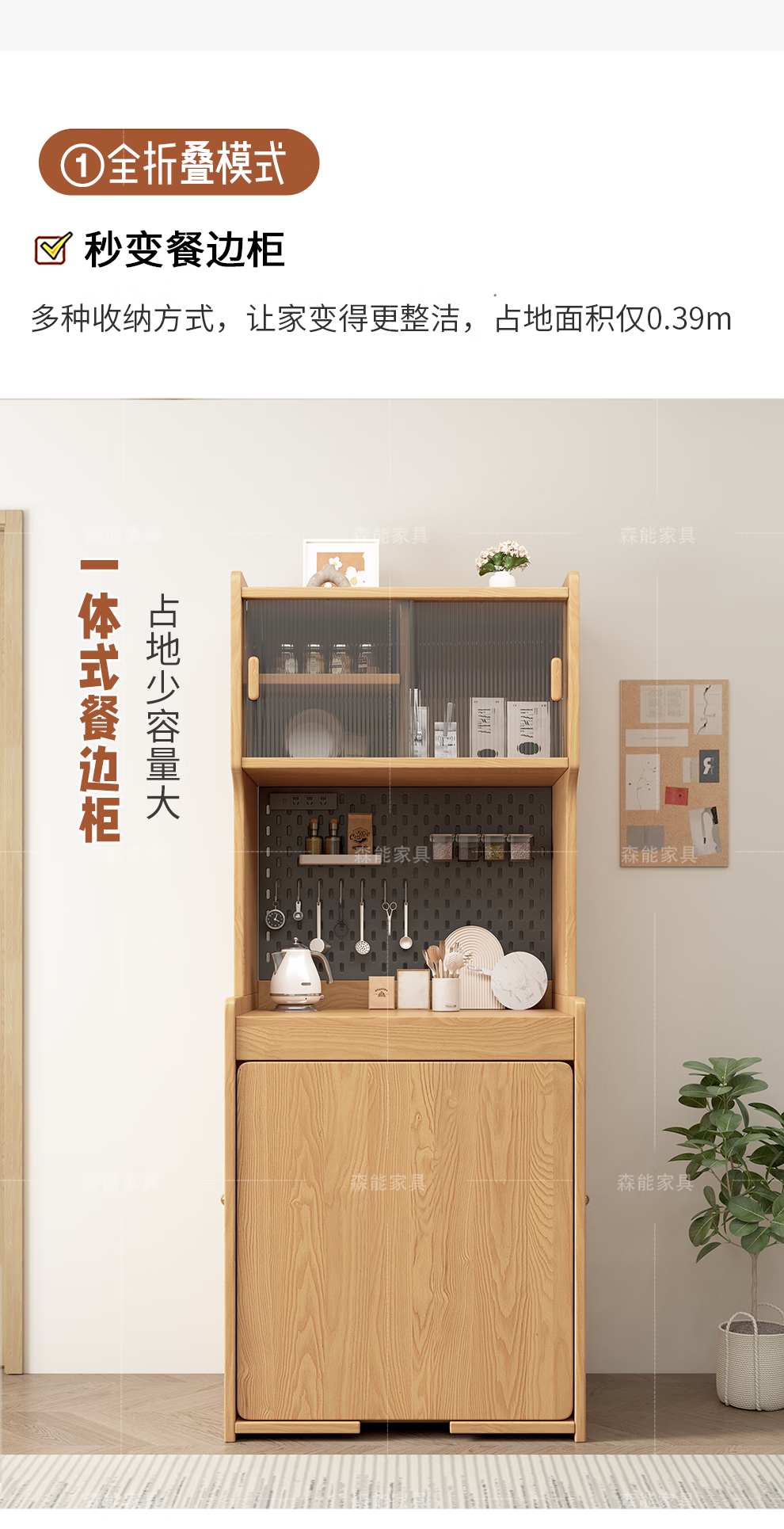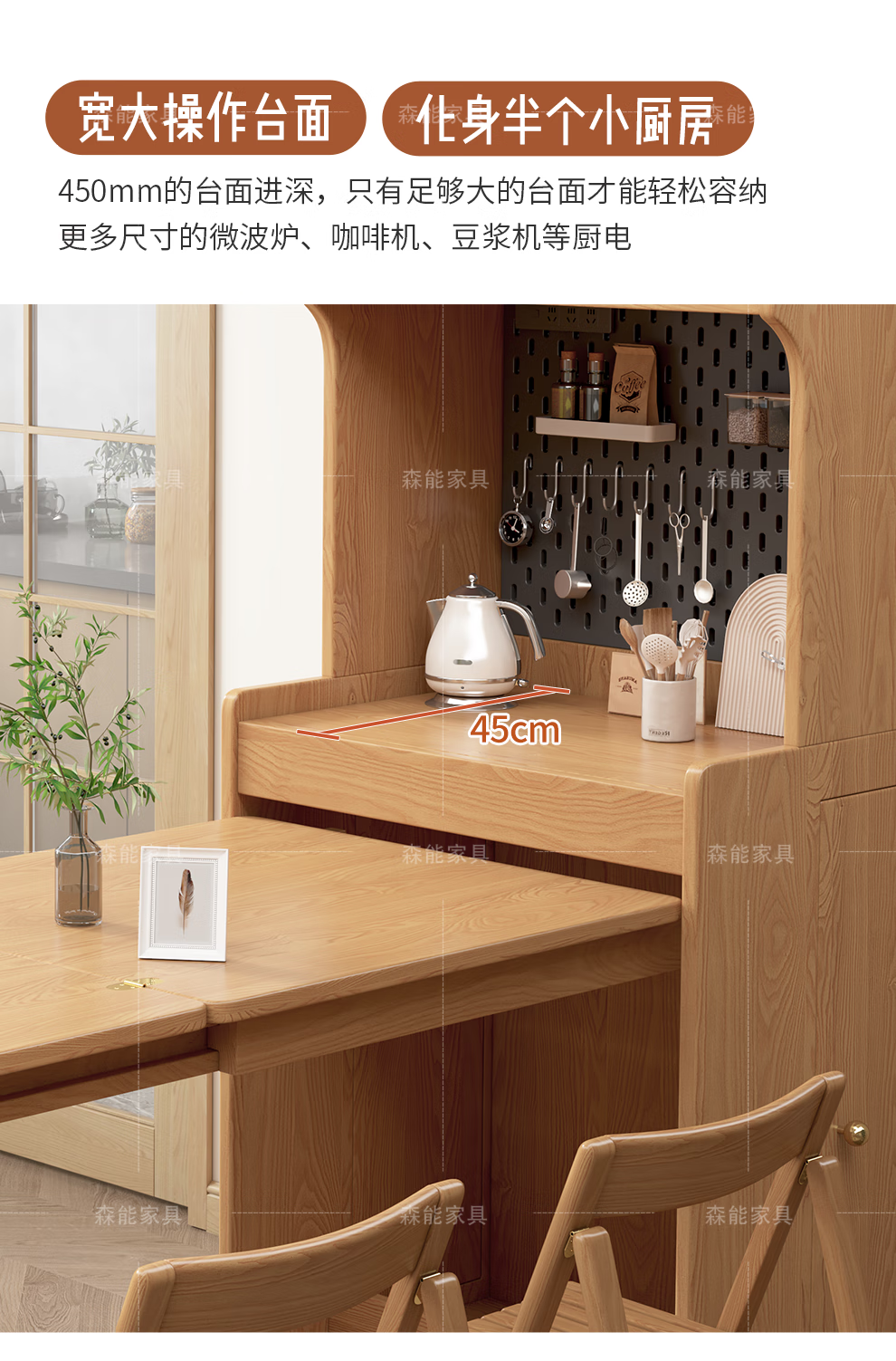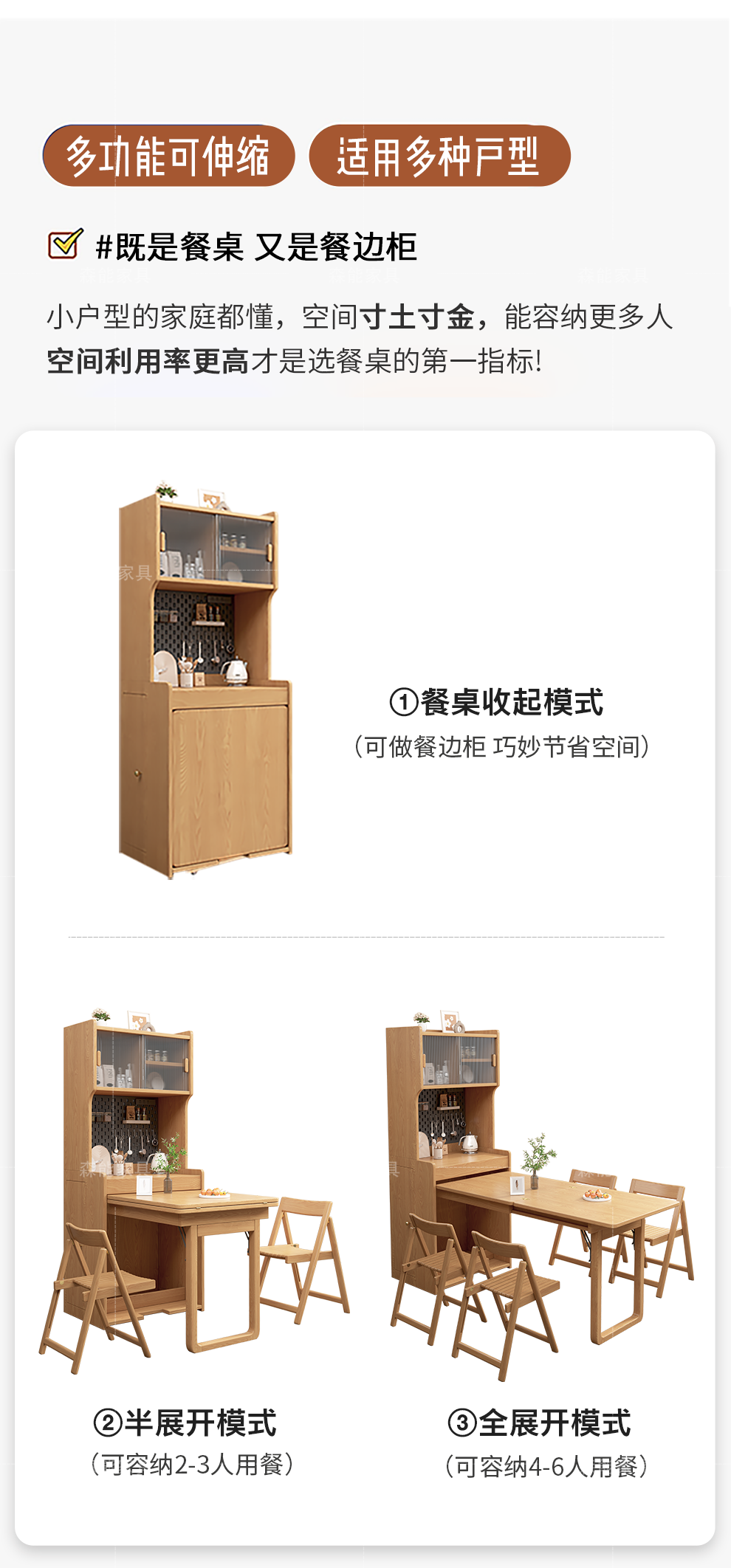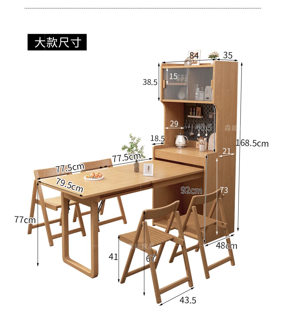 Senneng solid wood folding dining table and sideboard combination telescopic small apartment modern simple dining table 64cm telescopic dining table + folding chairs x2