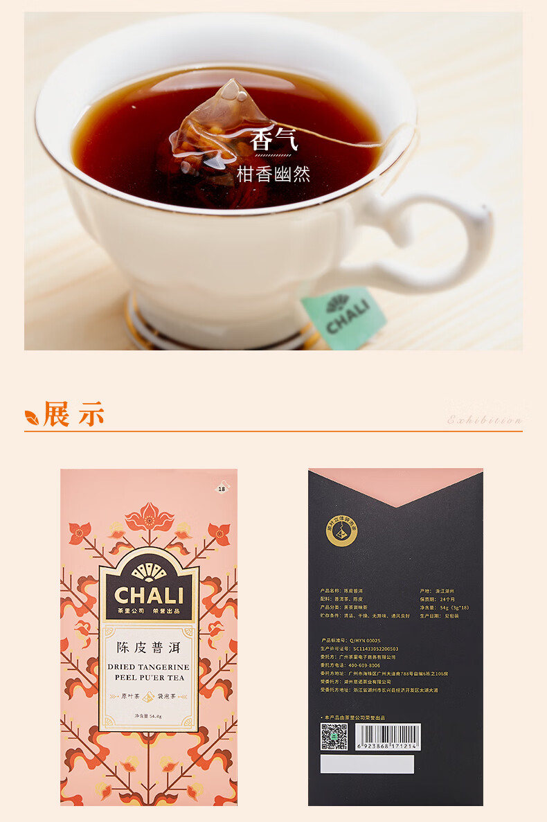 ChaLi (ChaLi) Tangerine Peel Pu'er Tea Bags Authentic Xinhui Ganpu Tea Non-Xiaoqinggan Pu'er Chali Company Tea Leaves 105 Yuan Choose 2 Boxes Tangerine Peel Pu'er Tea*11