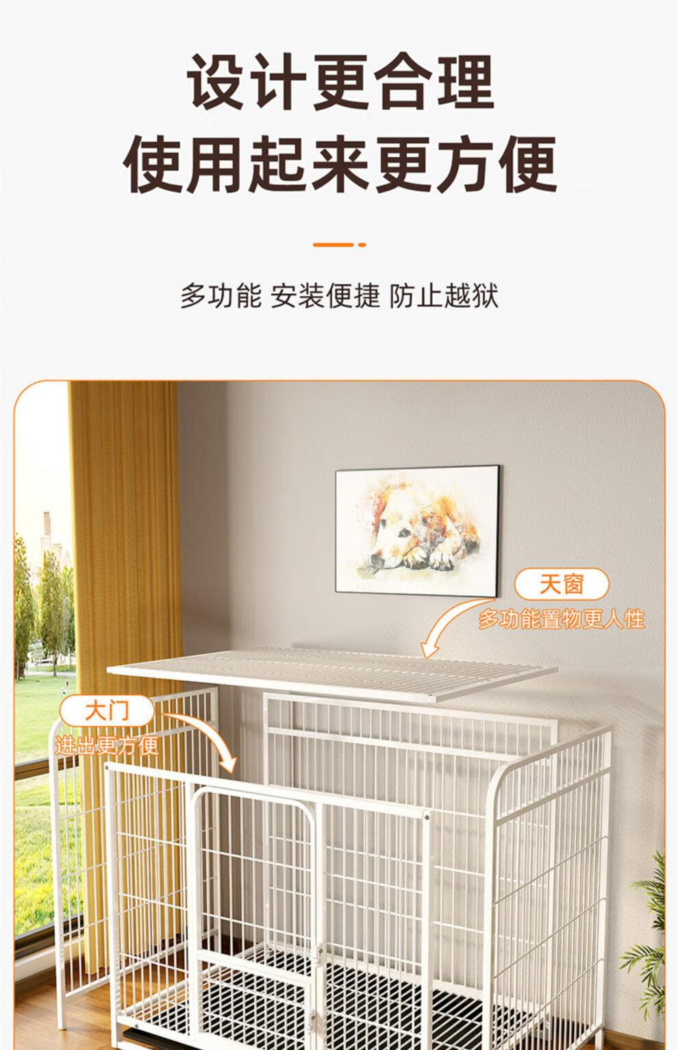 Dog cage small dog indoor kennel medium and large dog Corgi pet storage dog cage fence Corgi fur white storage dog - 125*95*125 height inside the cage