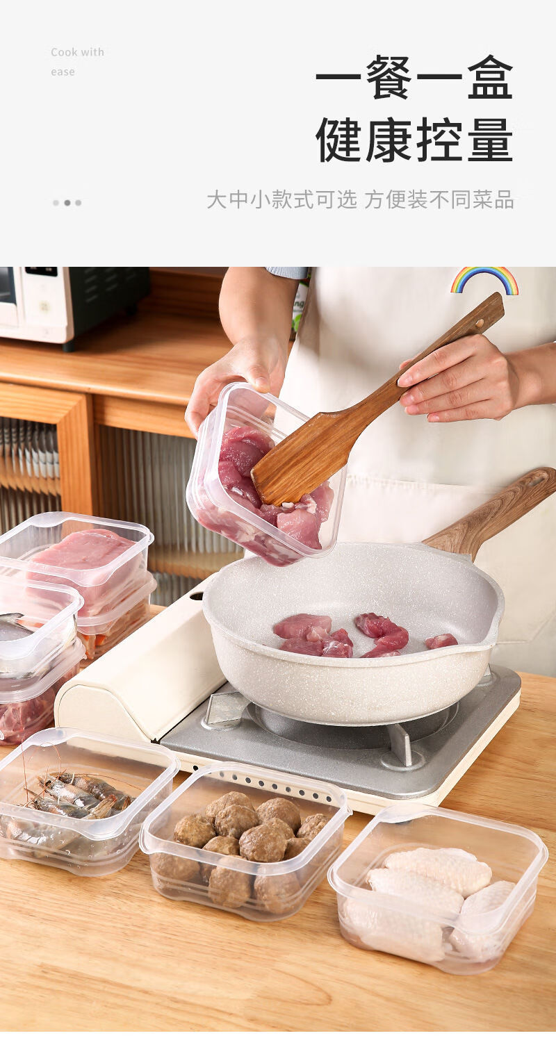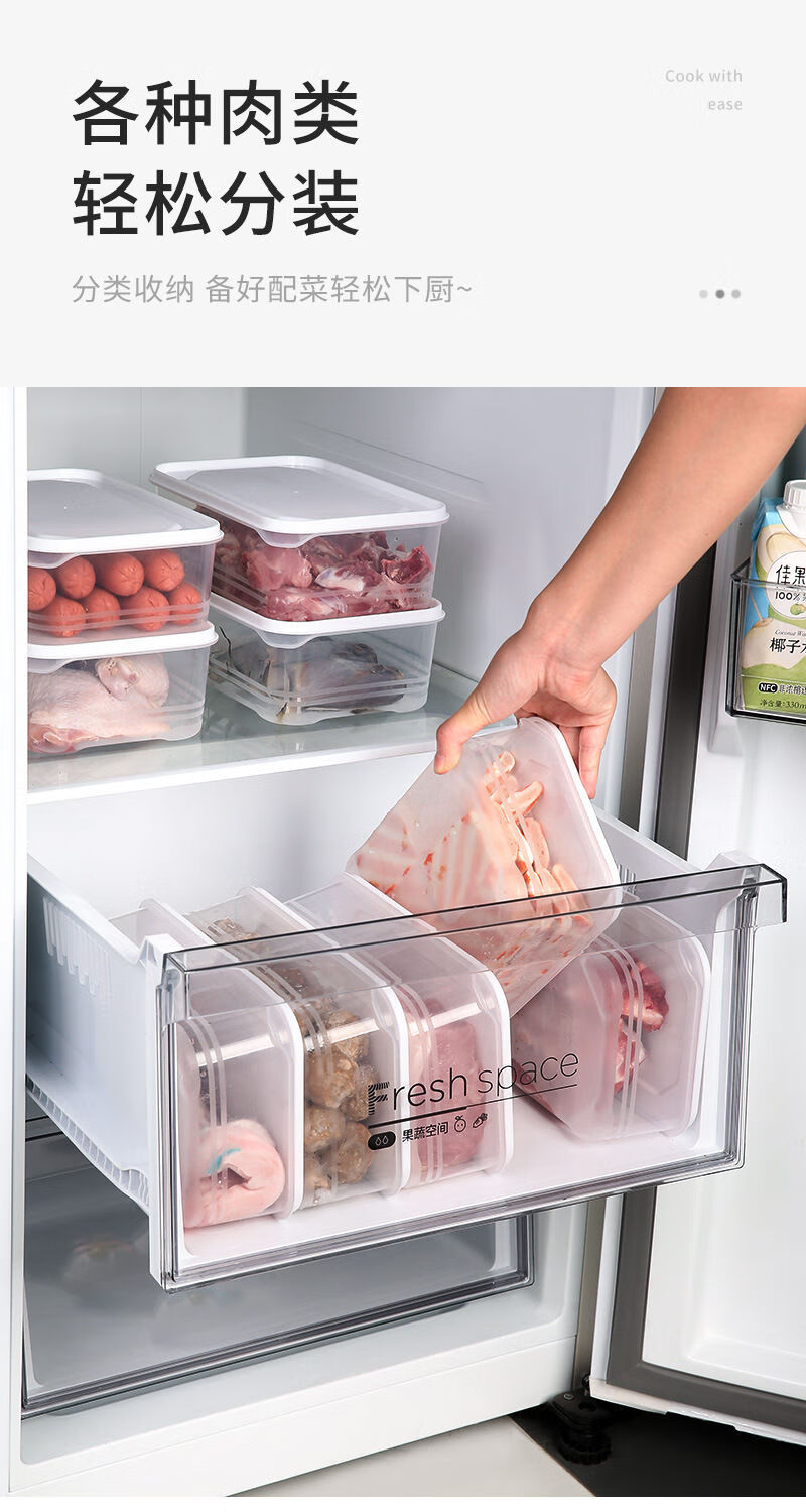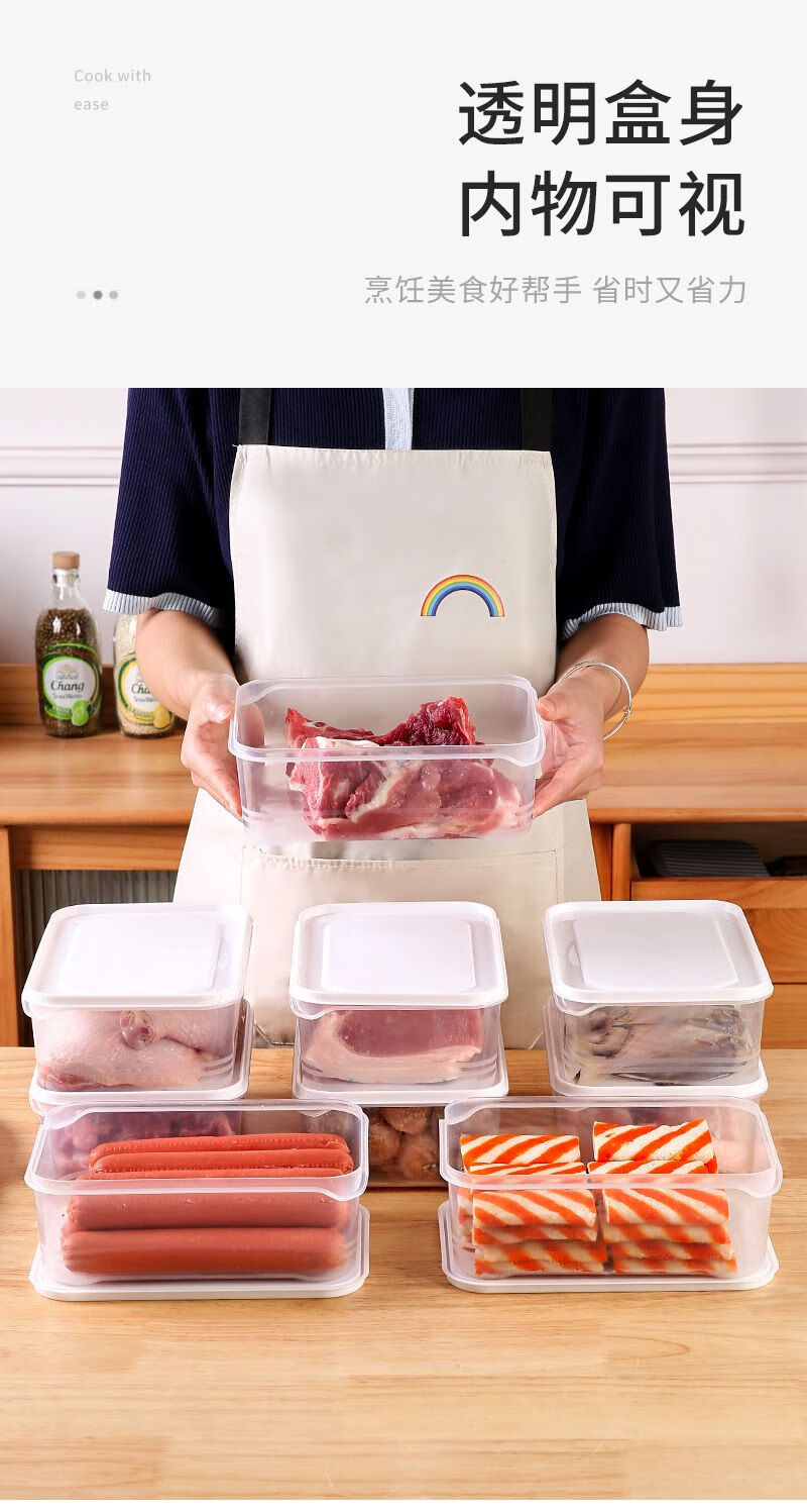 Refrigerator frozen meat box storage box with lid, classification grid, ice cream, no odor, sealed kitchen transparent box, 6 pieces x650ML