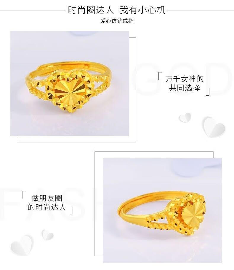 2025 new Hong Kong duty-free ring golden love gold-plated jewelry fashionable heart-shaped adjustable sand gold gift