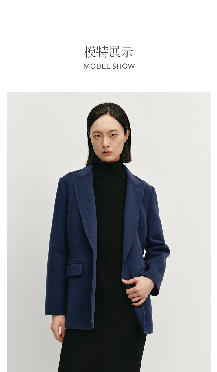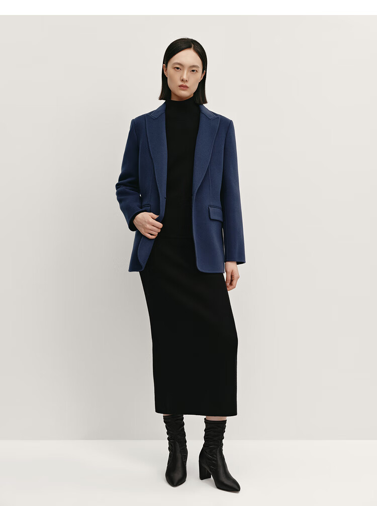 OVV Autumn and Winter Hot Sale Women's Peaked Collar Simple One Button Casual Commuting Wool Suit Jacket Navy Blue M