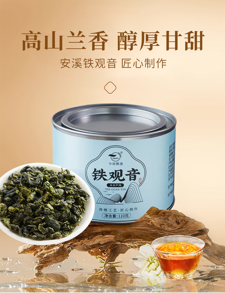 Zhongfujian Piaoxiang Tieguanyin Tea Bulk Small Bubble Bags Authentic Strong Fragrance Orchid Fragrance Gift Box Mellow and Sweet Tieguanyin 330g, 3 cans in total