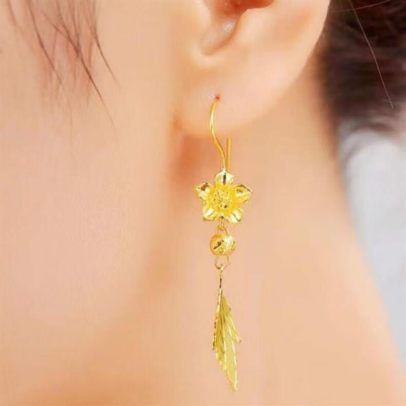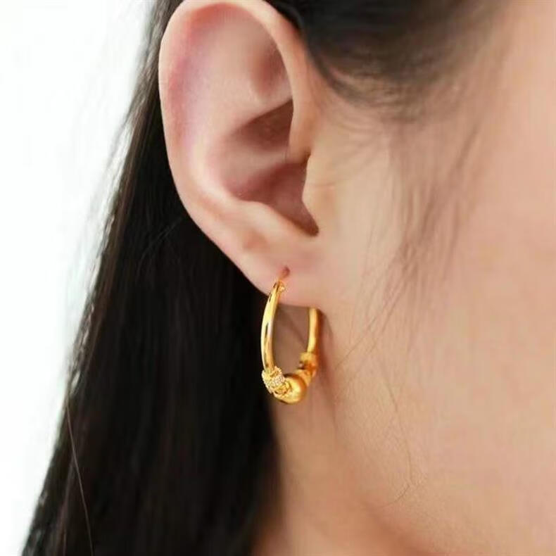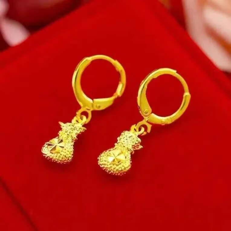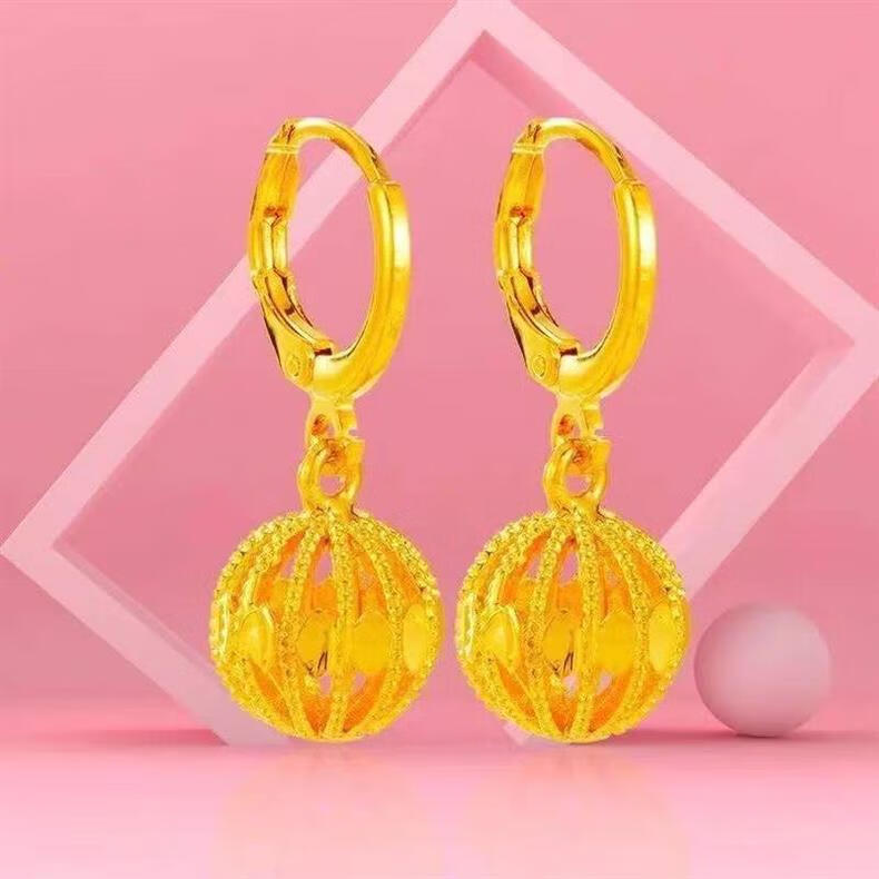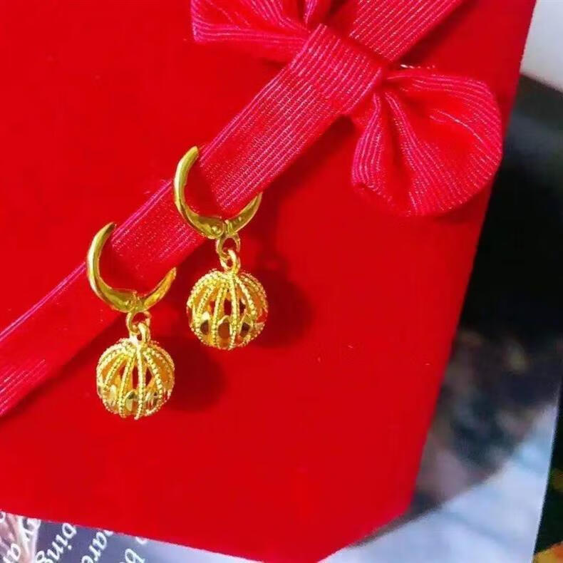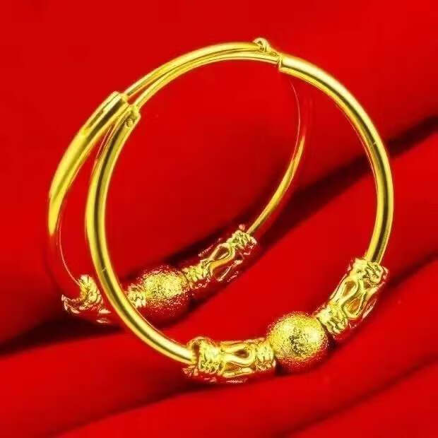 Alluvial Gold Earrings Women's Transfer Bead Gold Earrings Earrings Versatile Gifts for Mom/Lucky Beads/Earrings