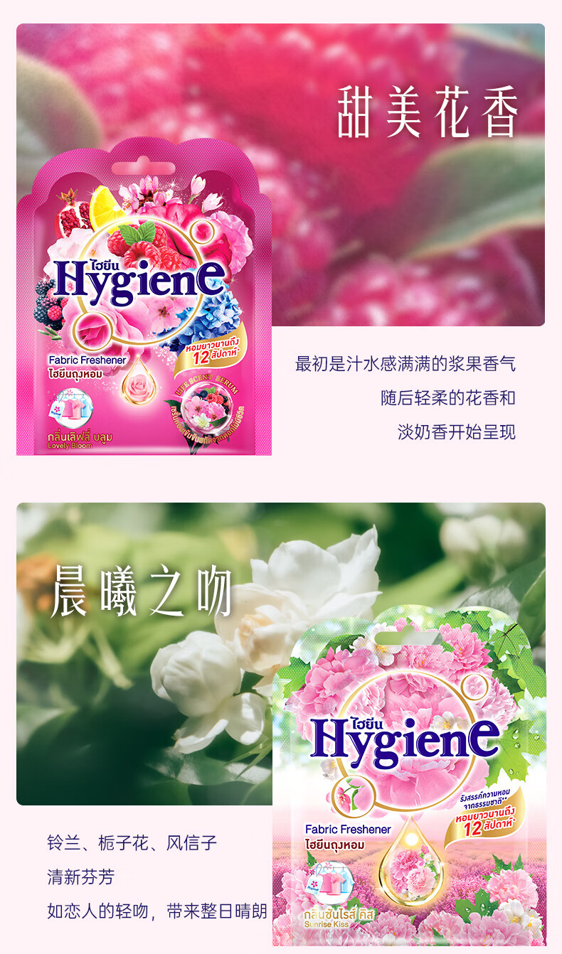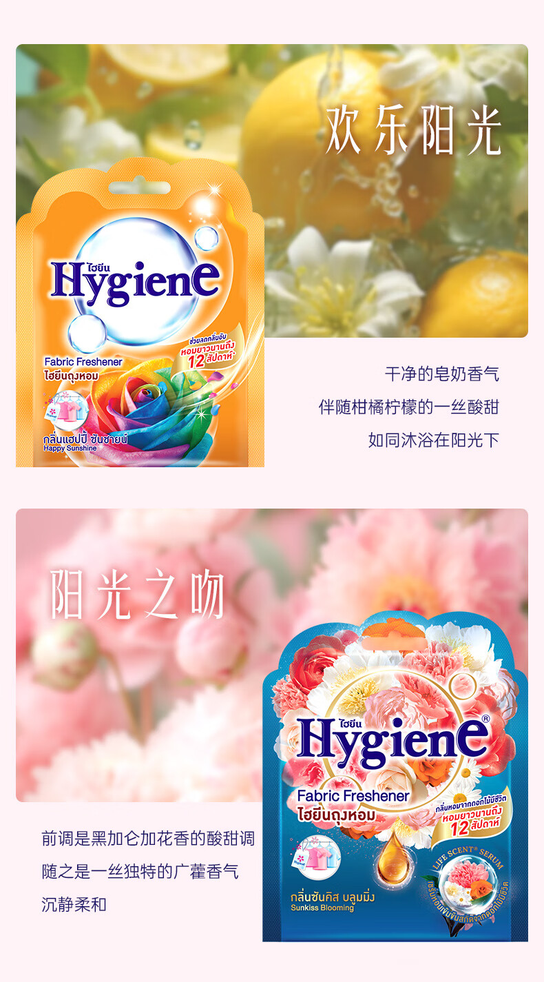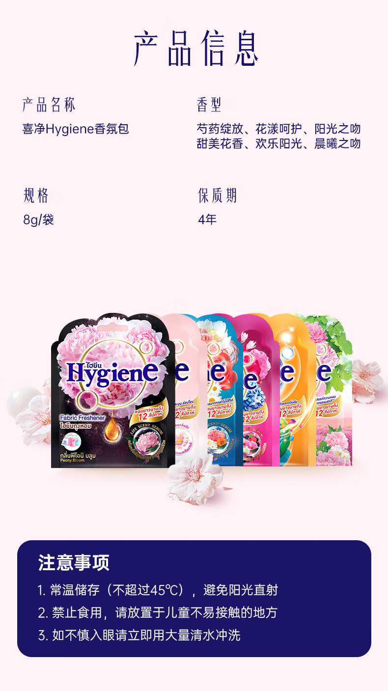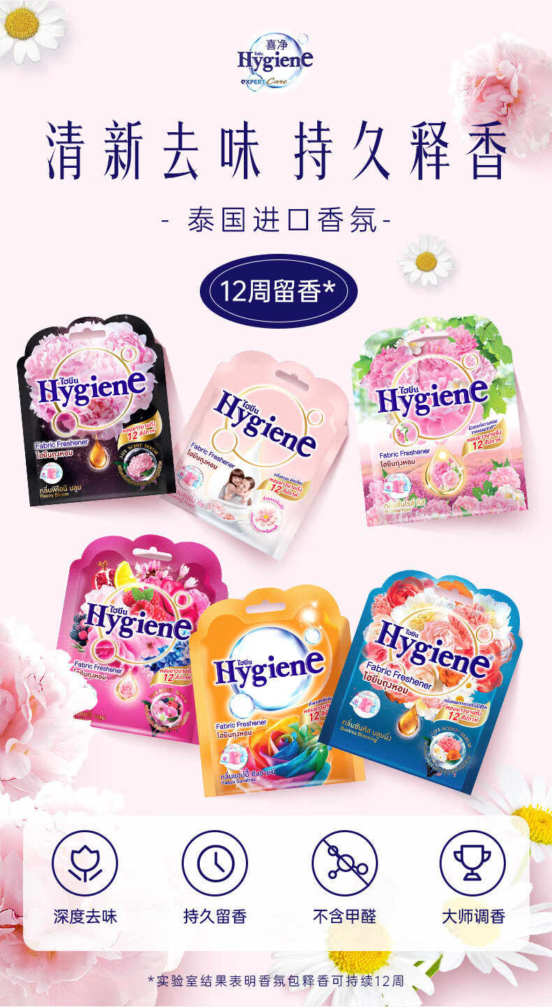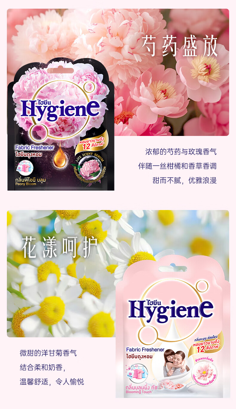 Hygiene Thailand original imported fragrance bag, deodorizing, anti-mold and deodorizing car aromatherapy bag, sachet, 1 pack of peony bloom + 1 pack of flower care