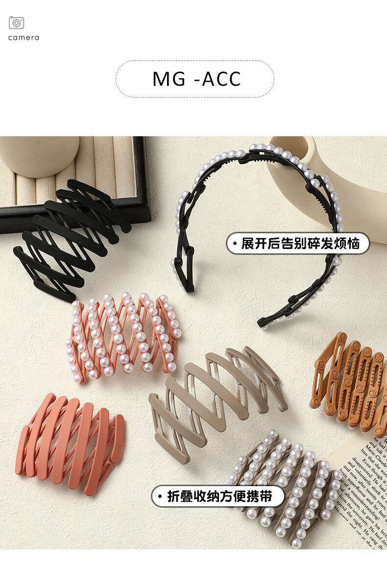SMVP Pearl Retractable Travel Folding Headband Women 2024 New Hair Travel Headband Broken Hair Hairpin Face Wash Special Hair Bundle Black Pearl Folding Headband 1 Pack