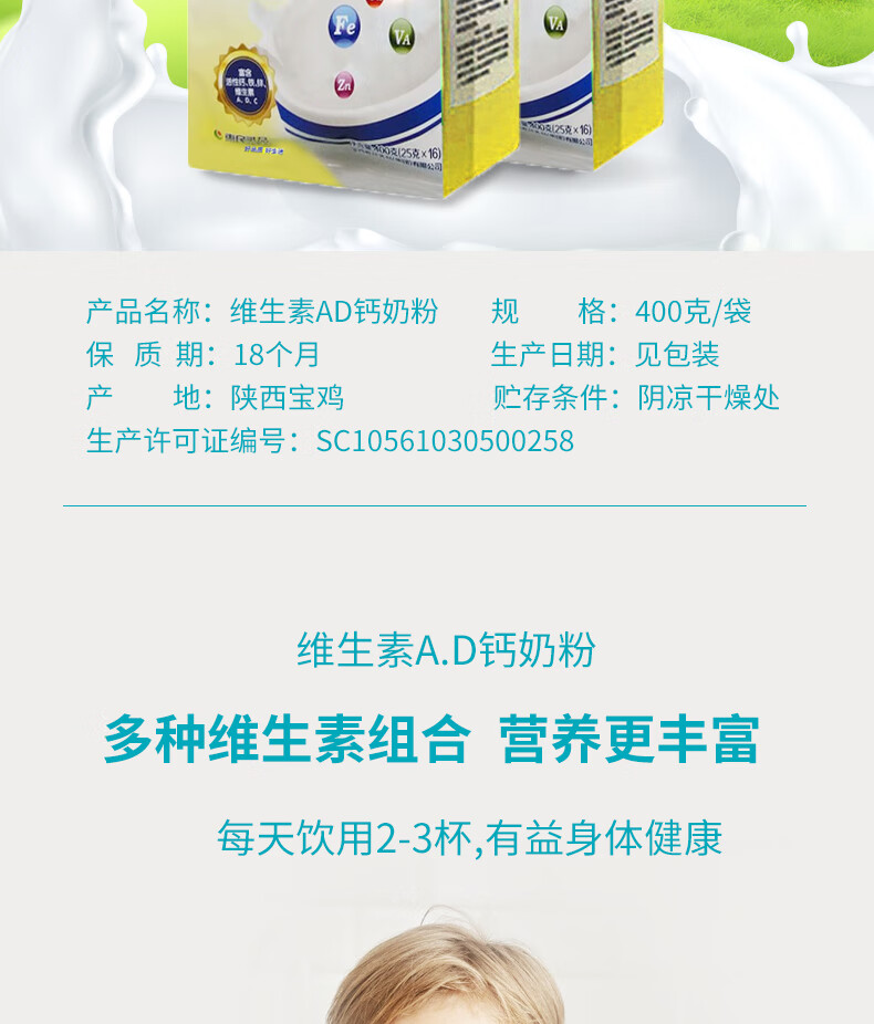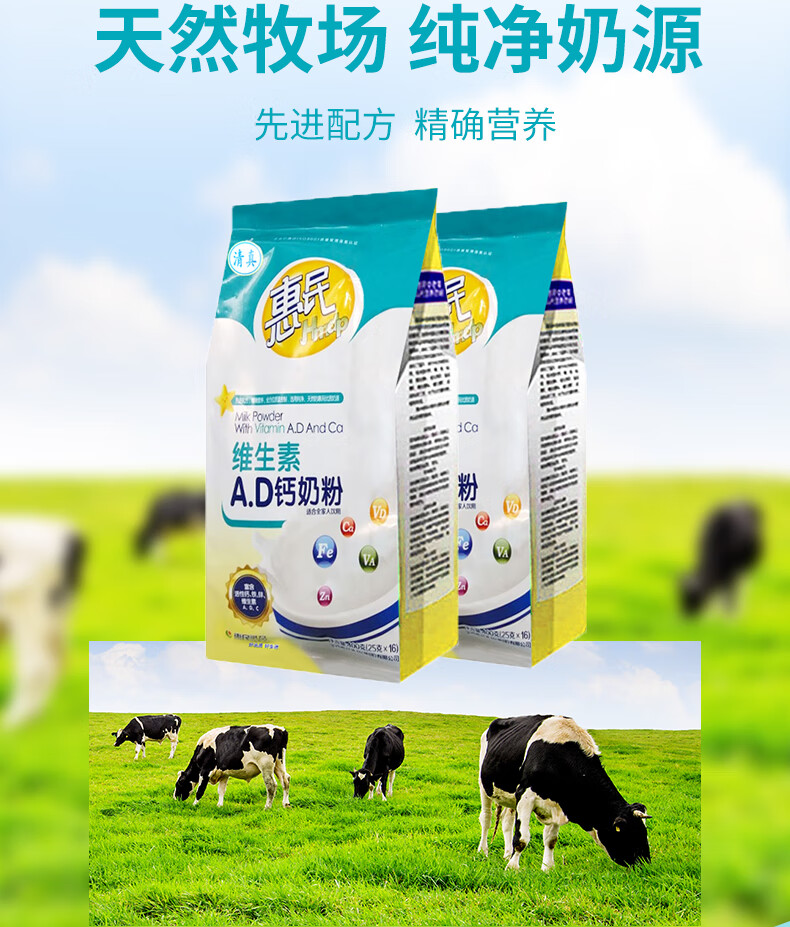 Huimin Vitamin AD calcium milk powder 400g high calcium high protein adult milk powder bag 400g x 1 bag