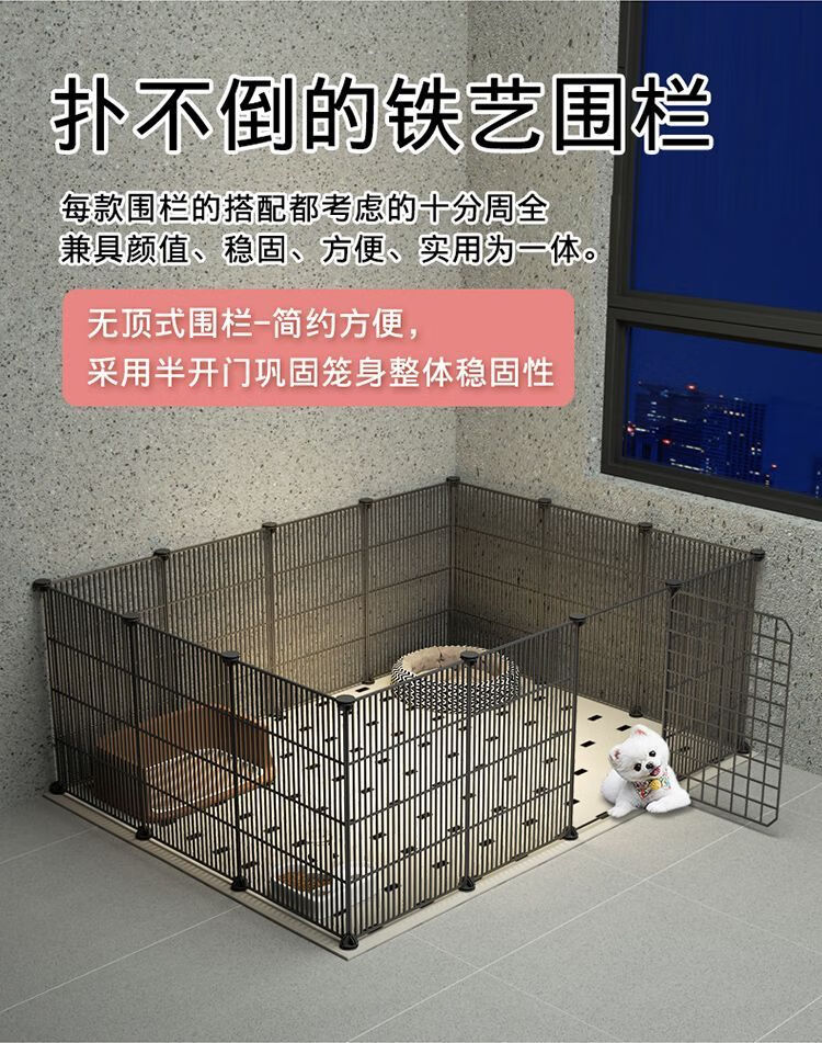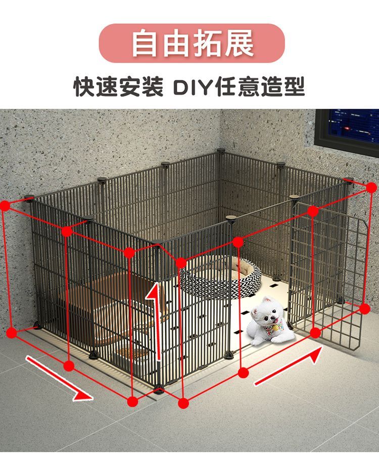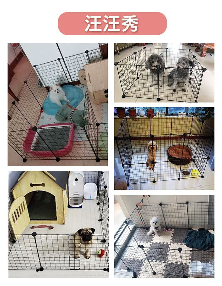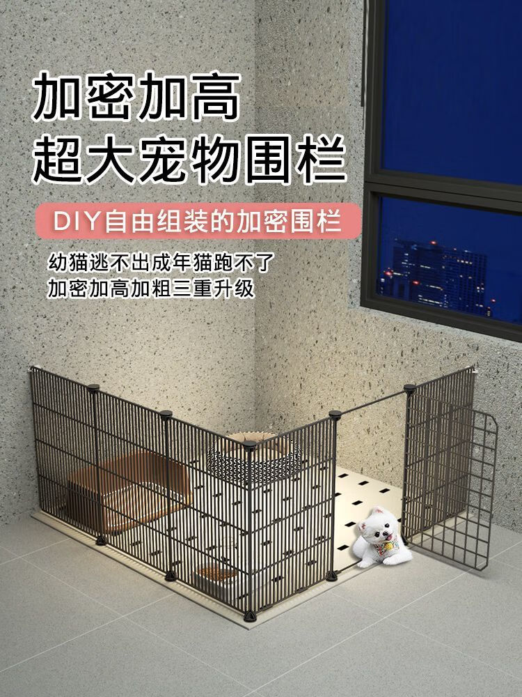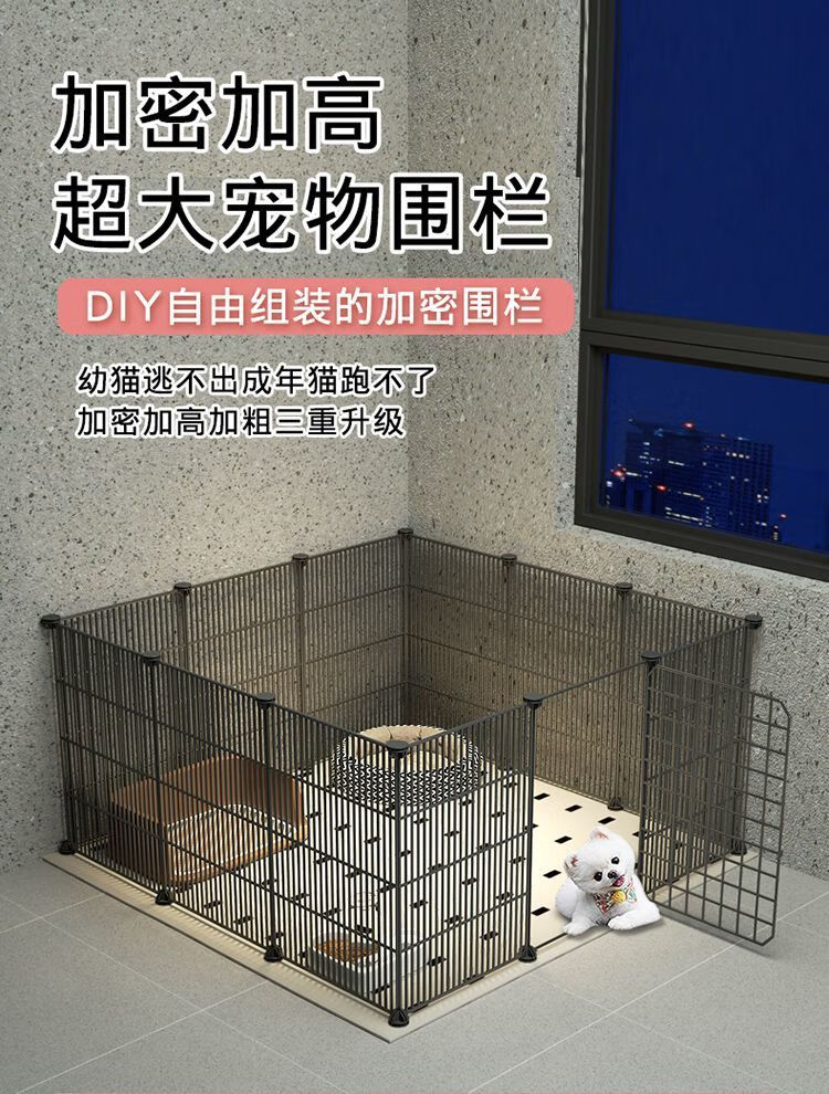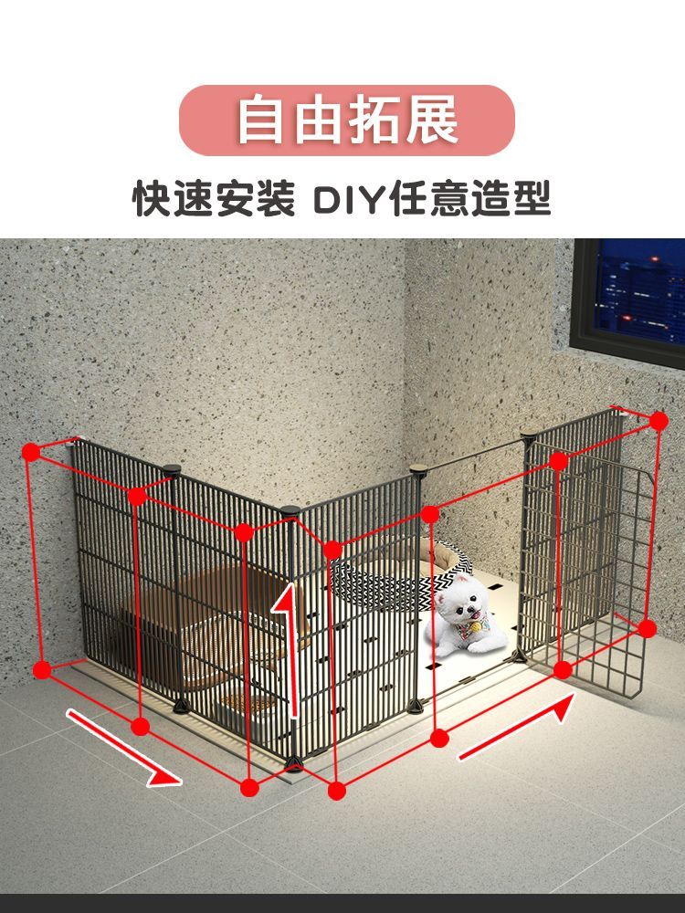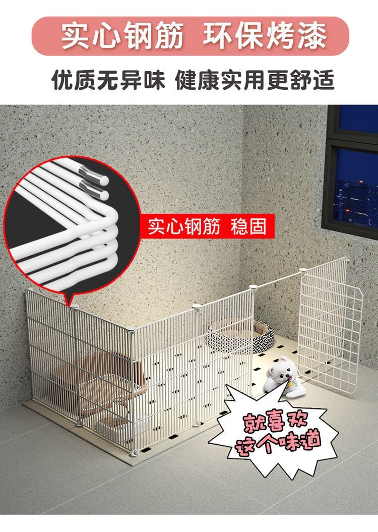 Raft core dog fence indoor door fence dog punch-free fence encrypted wire mesh pet puppy kennel small dog cage encrypted mesh/3 pieces-73*37*47 standard