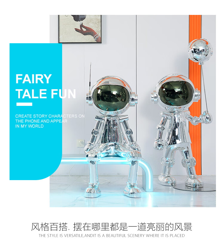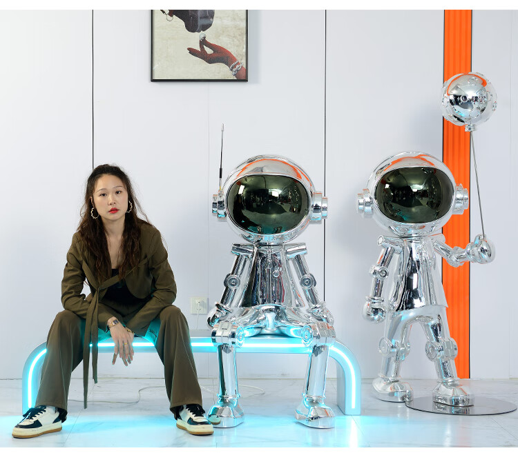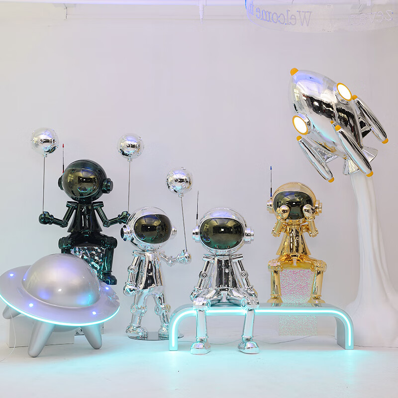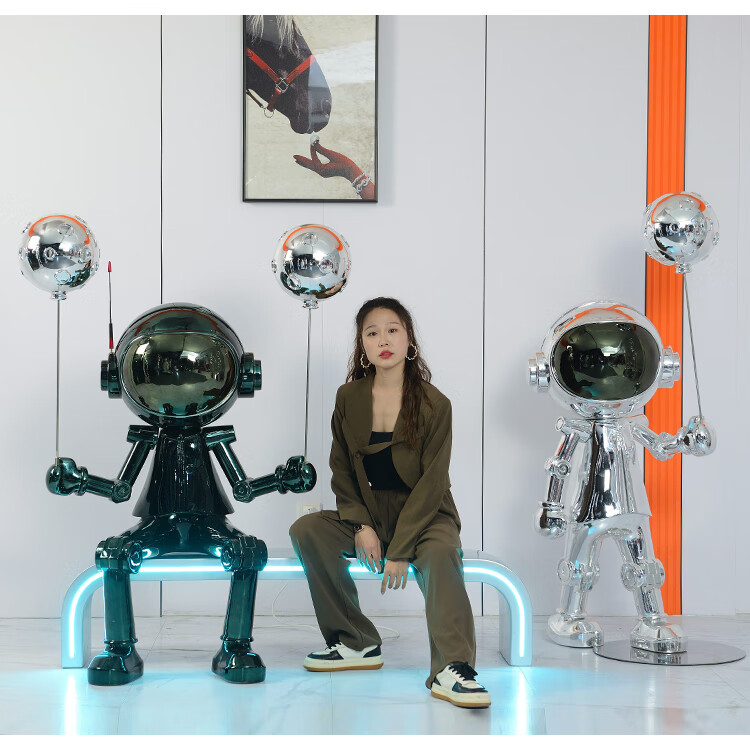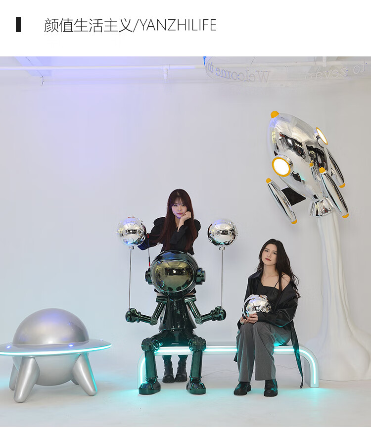 Luminous robot model large ornaments space rabbit sculpture living room bar ktv flying saucer door decoration MC-robot height 2.19 meters fixed jin