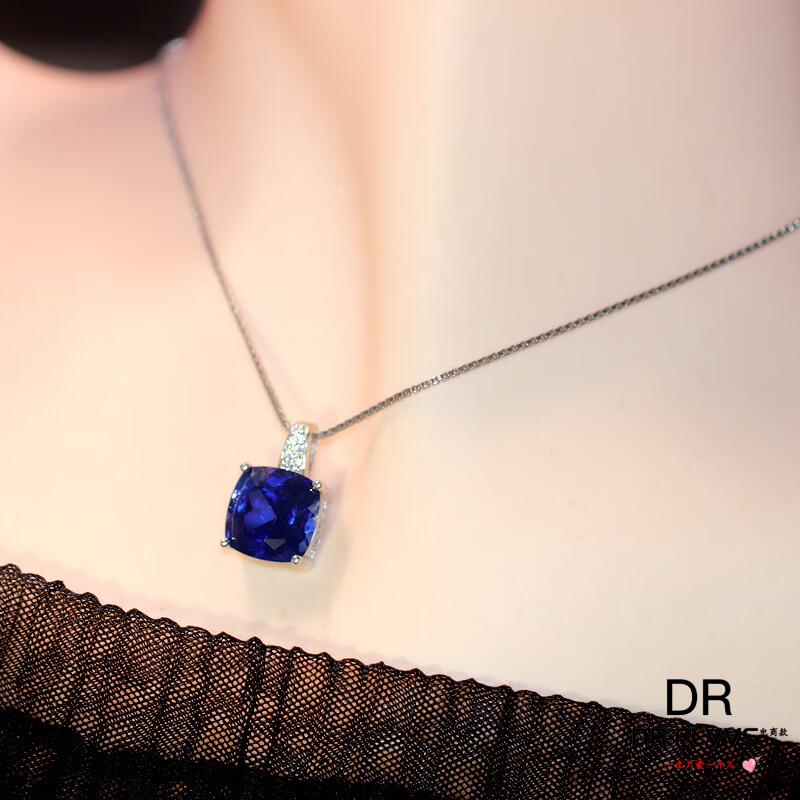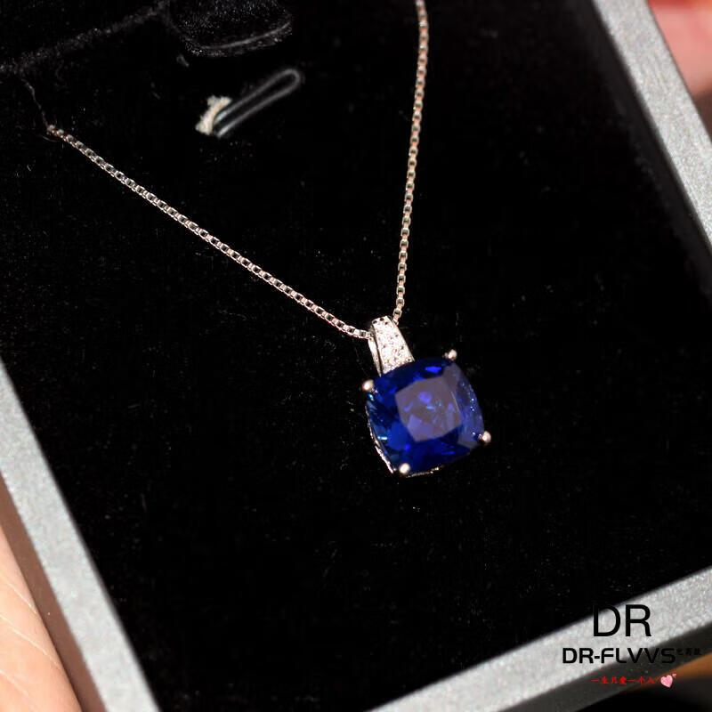 Fat Donglai same model Tanzanite sapphire square tanzanite necklace women's blue pendant pendant 925 silver platinum plated small single pendant without chain
