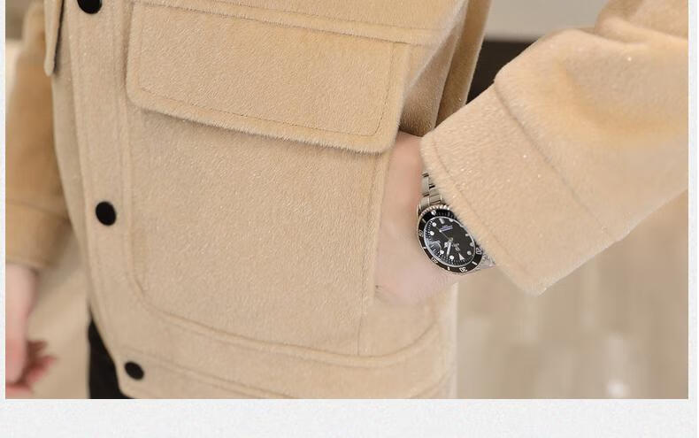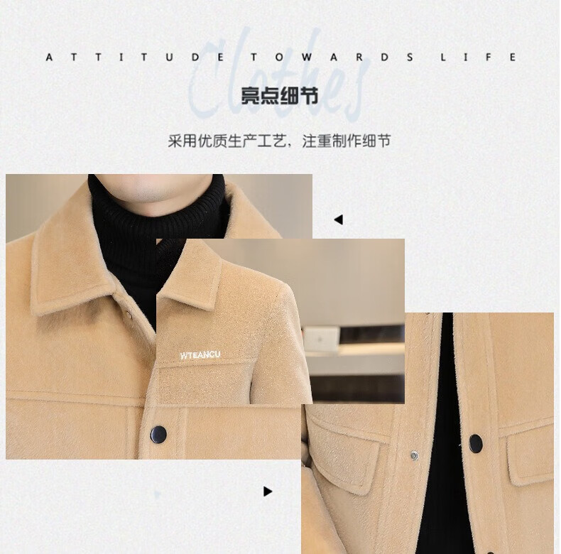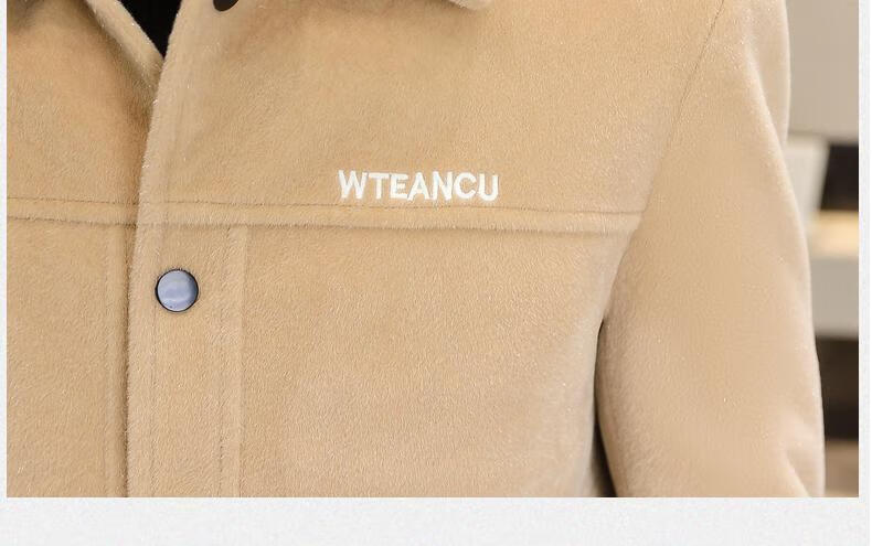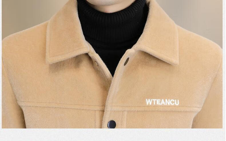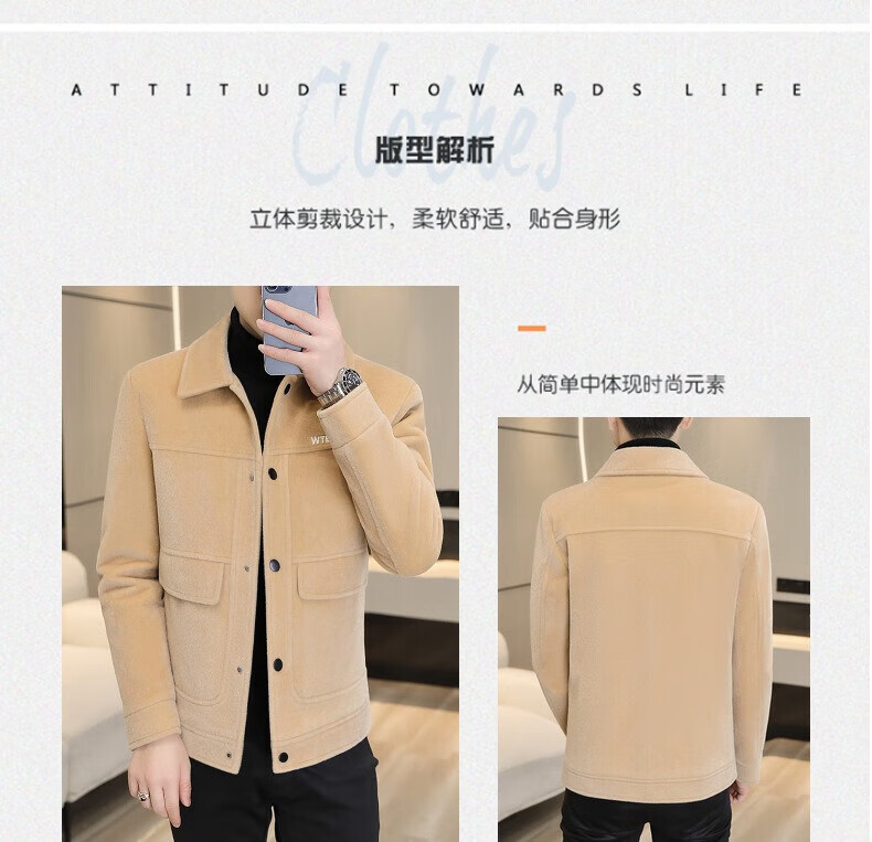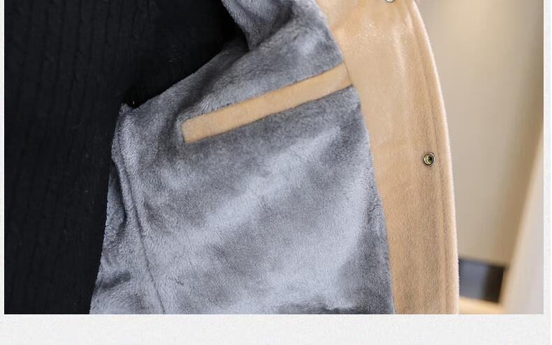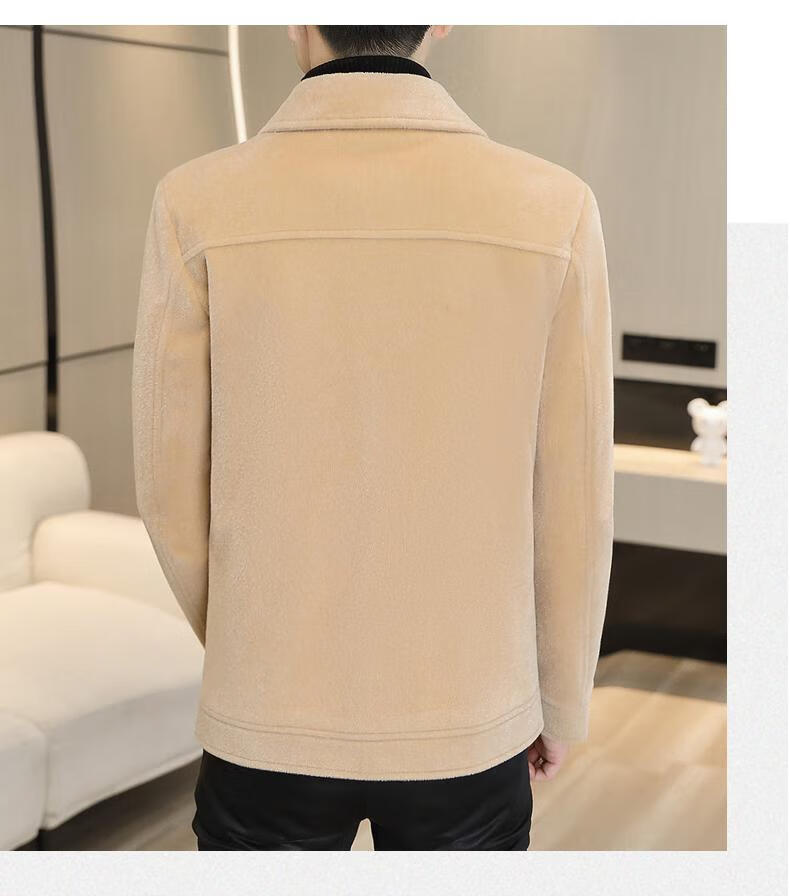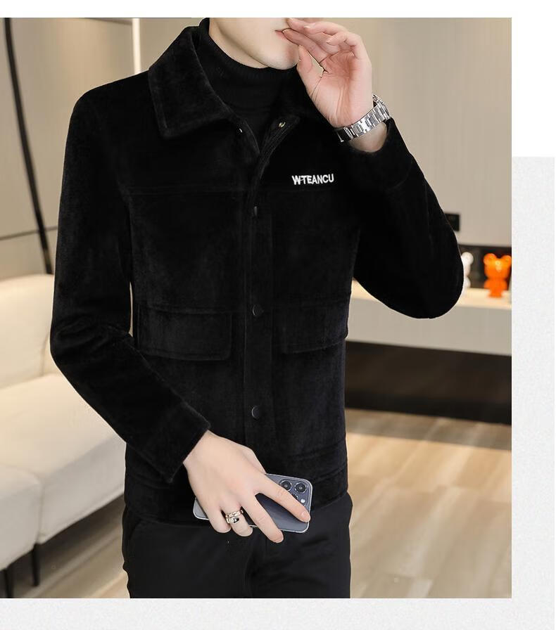 Pierre Cardin 2025 autumn and winter new gold woolen men's jacket woolen woolen velvet thickened lambswool jacket parka clothes magic black XL 125-145Jin Jin equals 0.5 kg