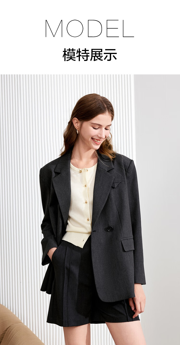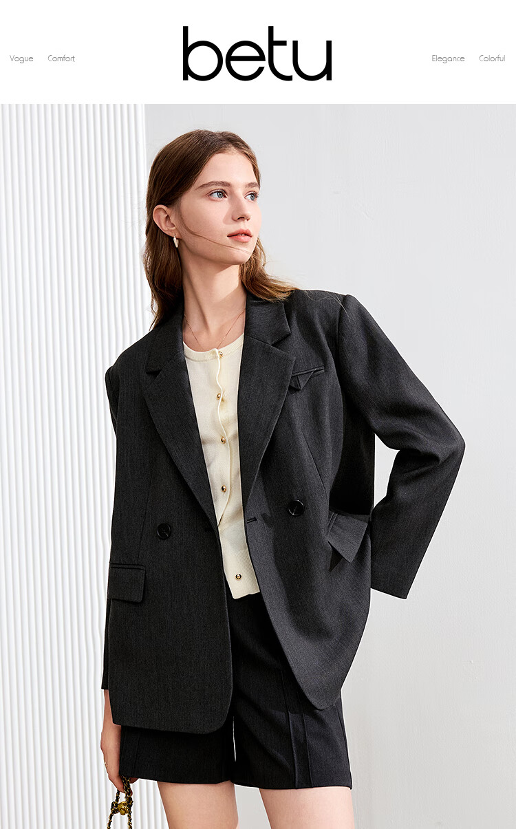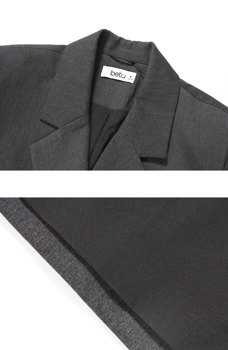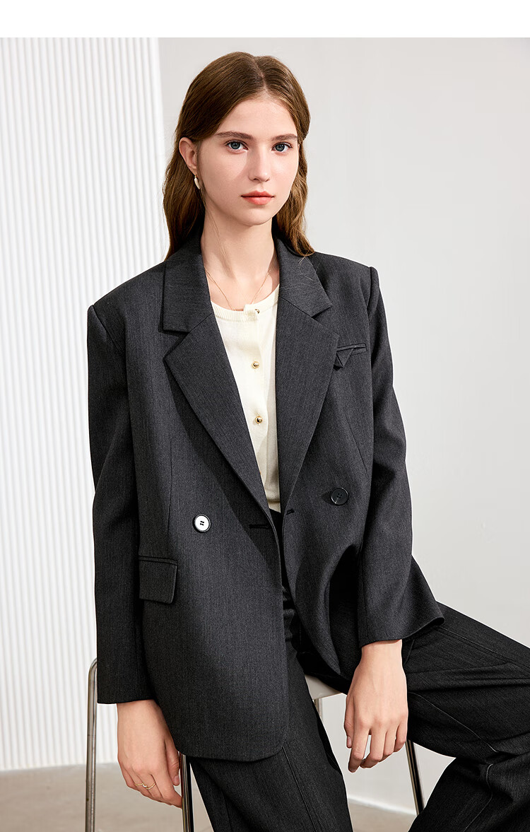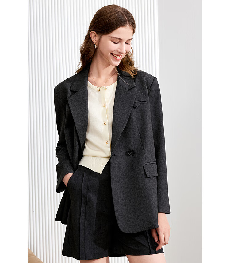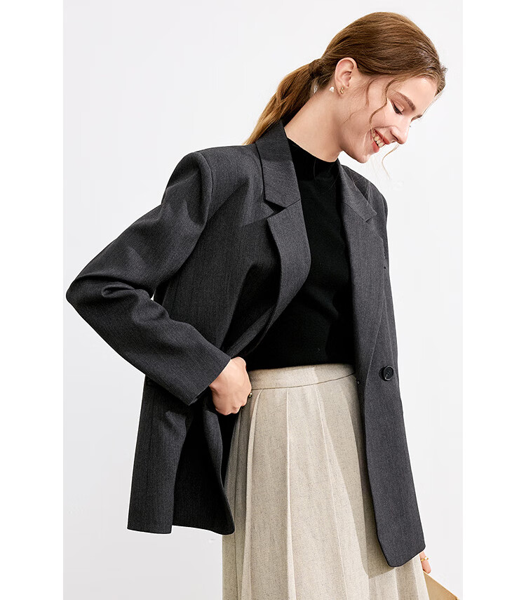 Betu women's autumn new suit lapel fashionable versatile silhouette suit jacket 2408T59 charcoal gray S