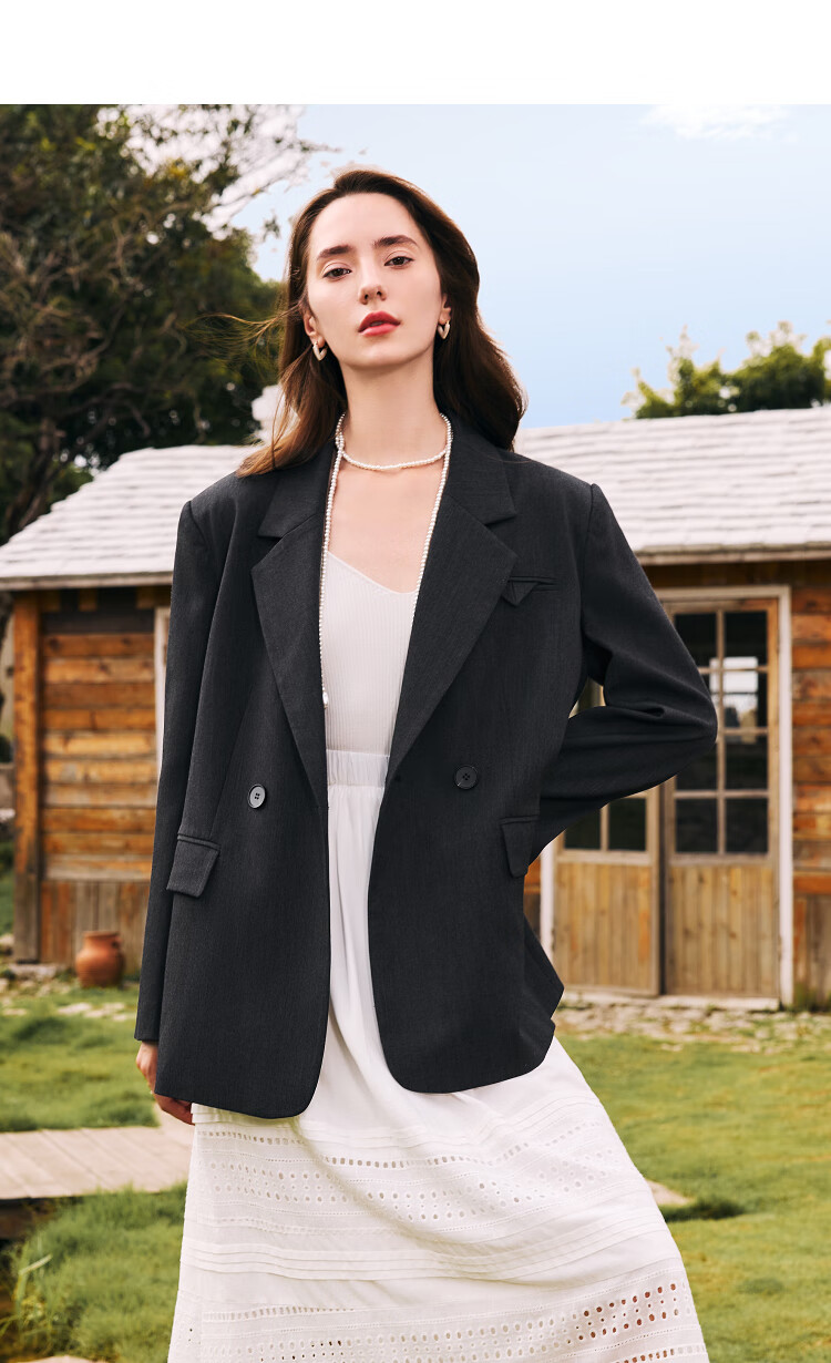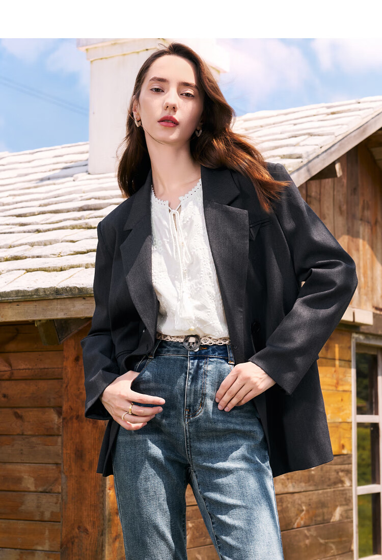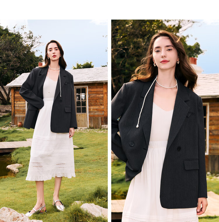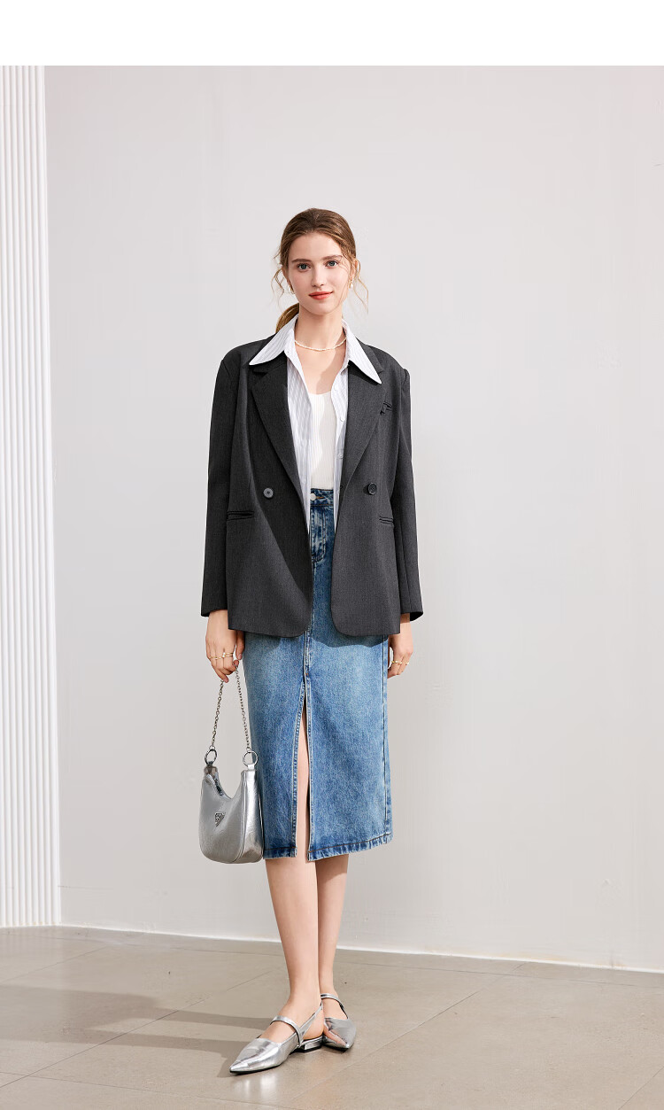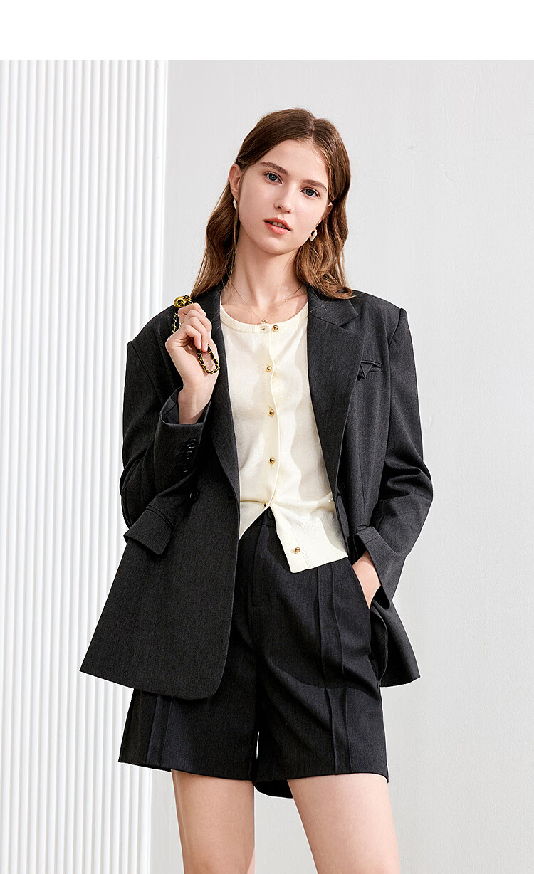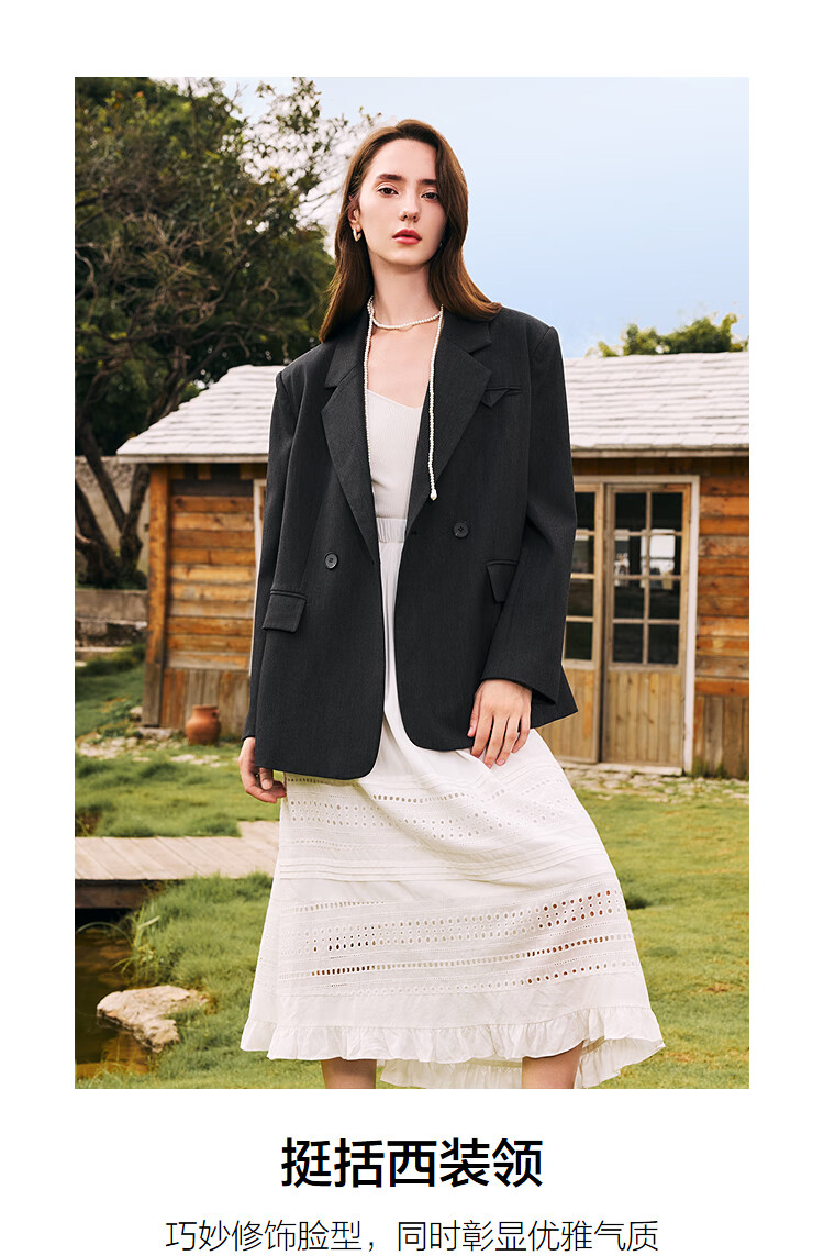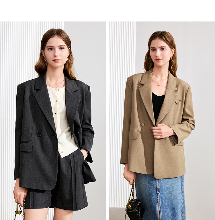 Betu women's autumn new suit lapel fashionable versatile silhouette suit jacket 2408T59 charcoal gray S
