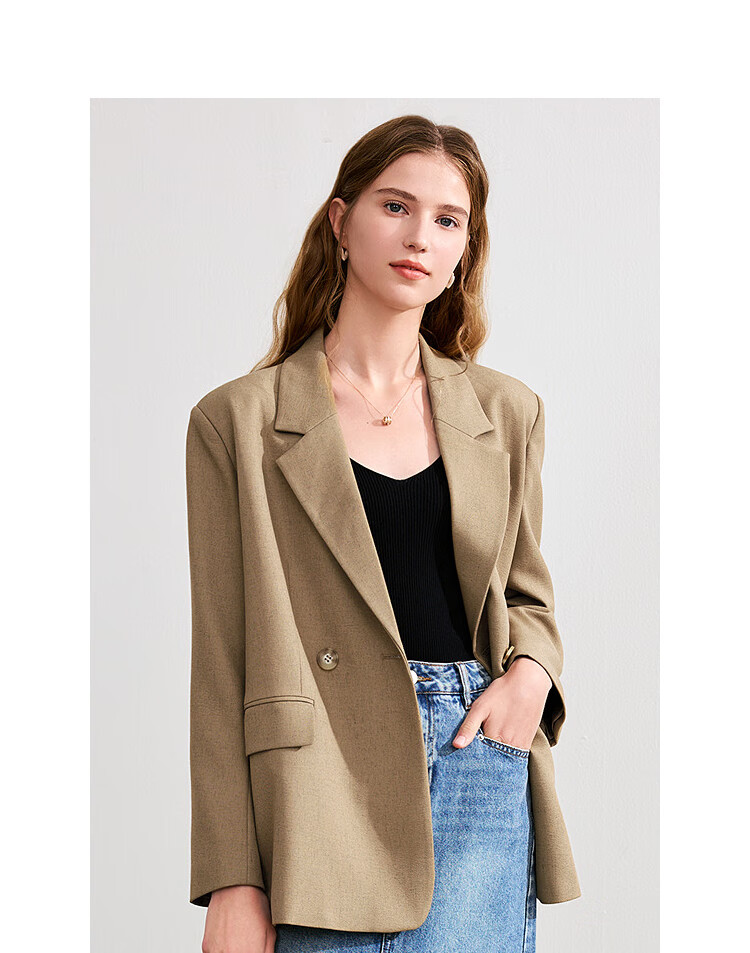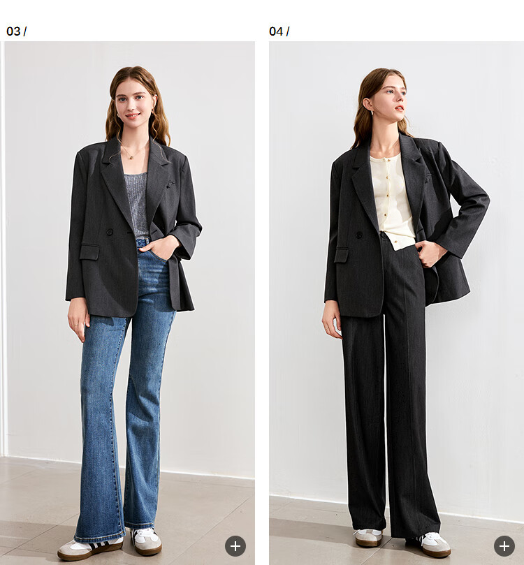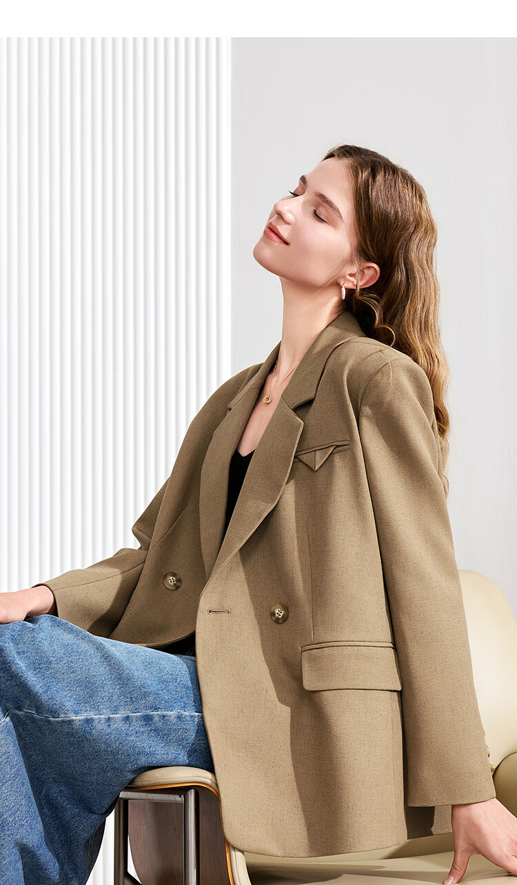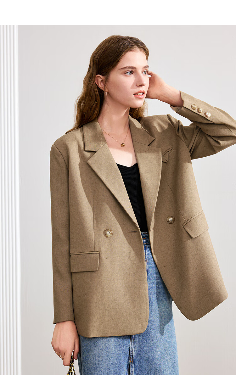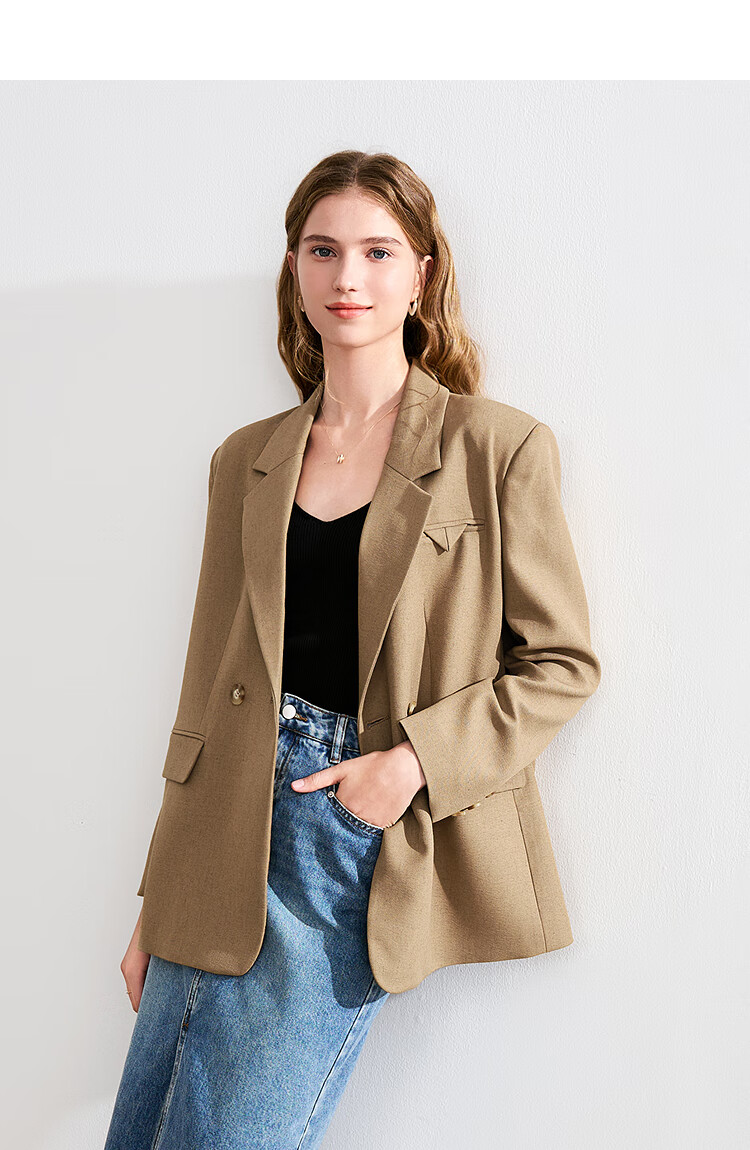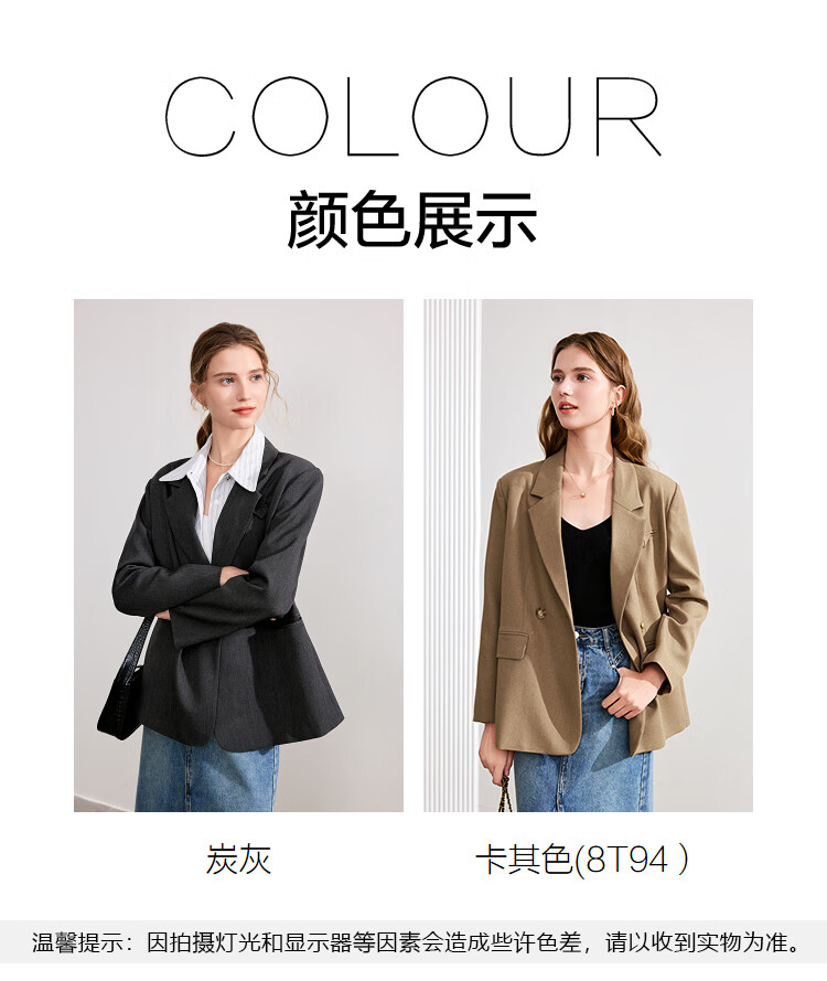 Betu women's autumn new suit lapel fashionable versatile silhouette suit jacket 2408T59 charcoal gray S