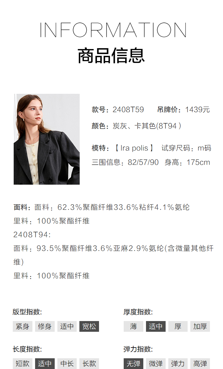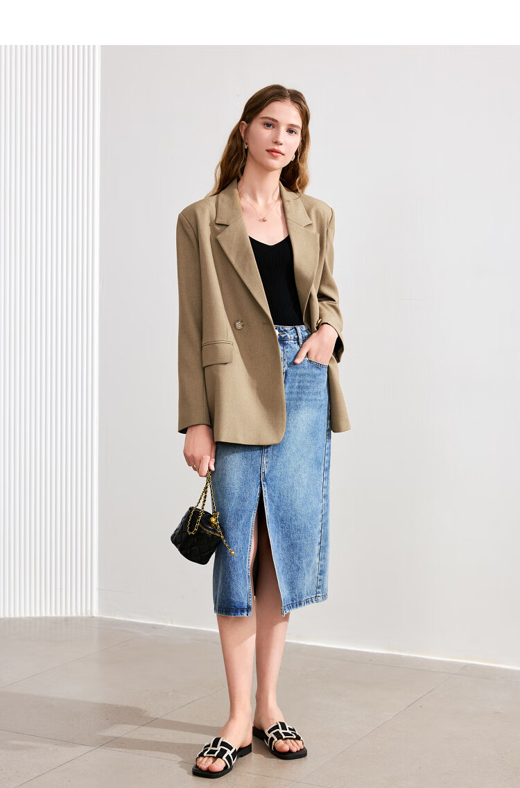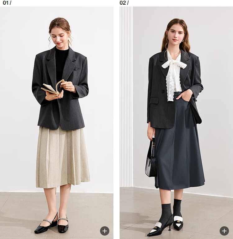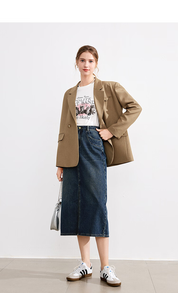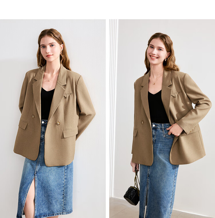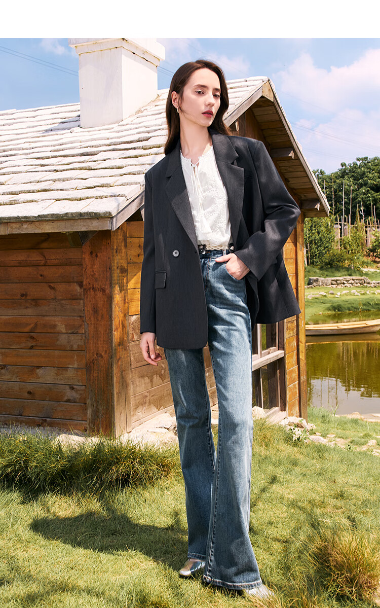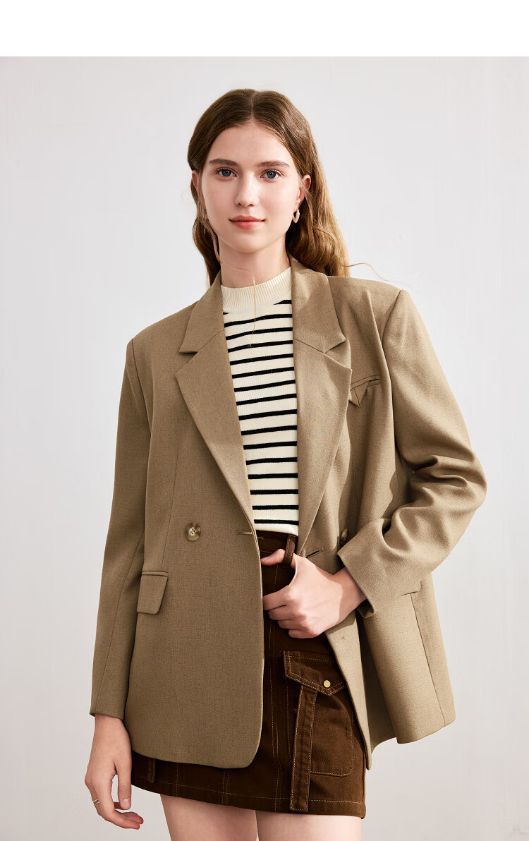 Betu women's autumn new suit lapel fashionable versatile silhouette suit jacket 2408T59 charcoal gray S