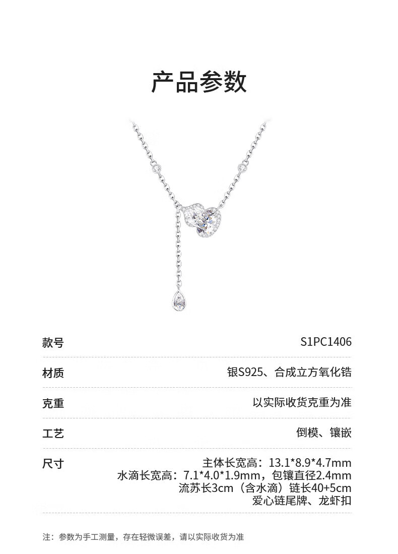 CHOW TAI SENG Gourd S925 Silver Necklace Women's Light Luxury Niche Clavicle Chain Birthday Gift for Girls Gourd Necklace