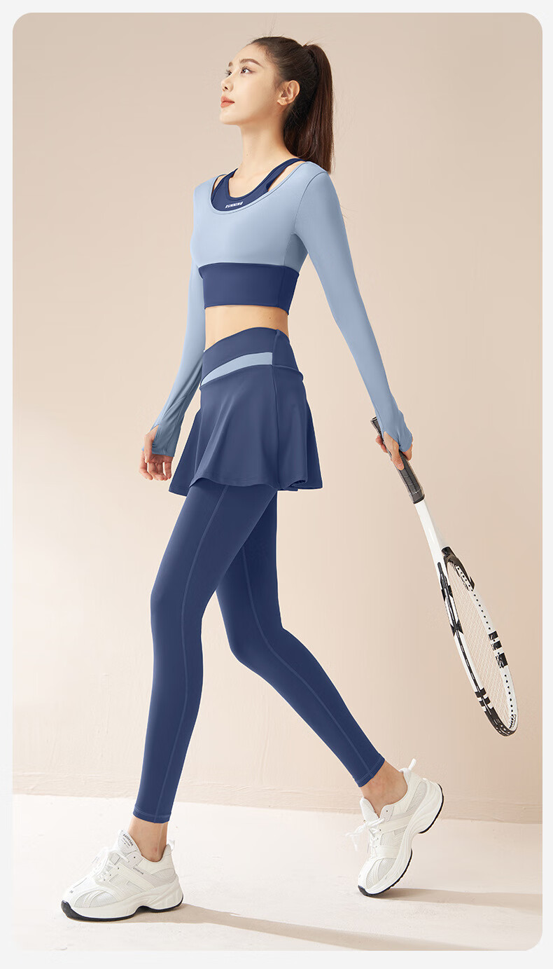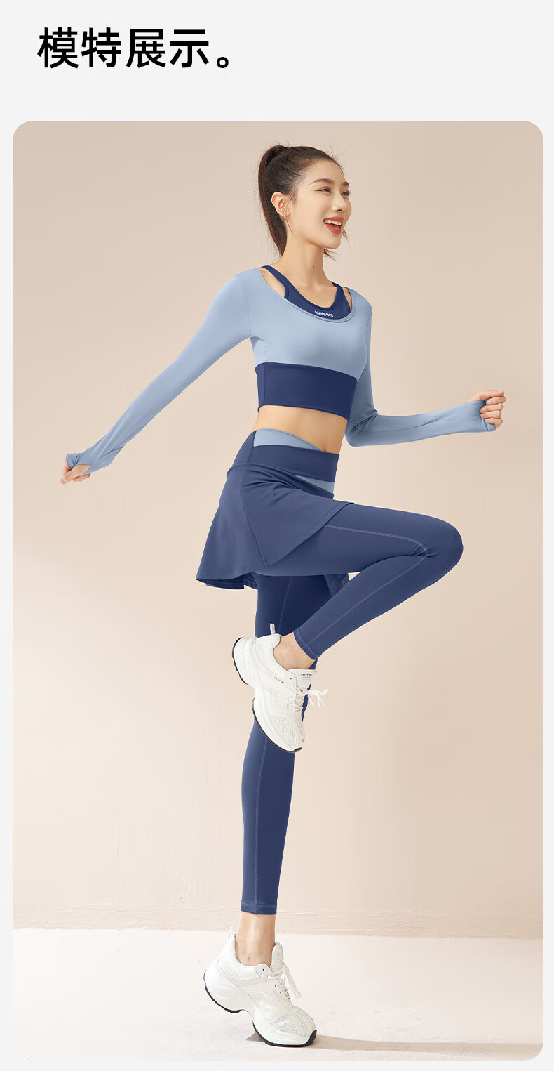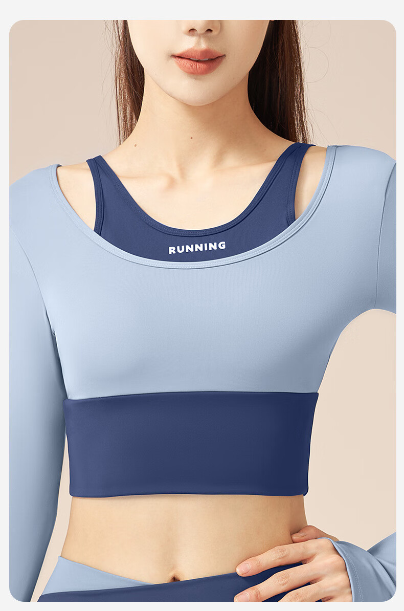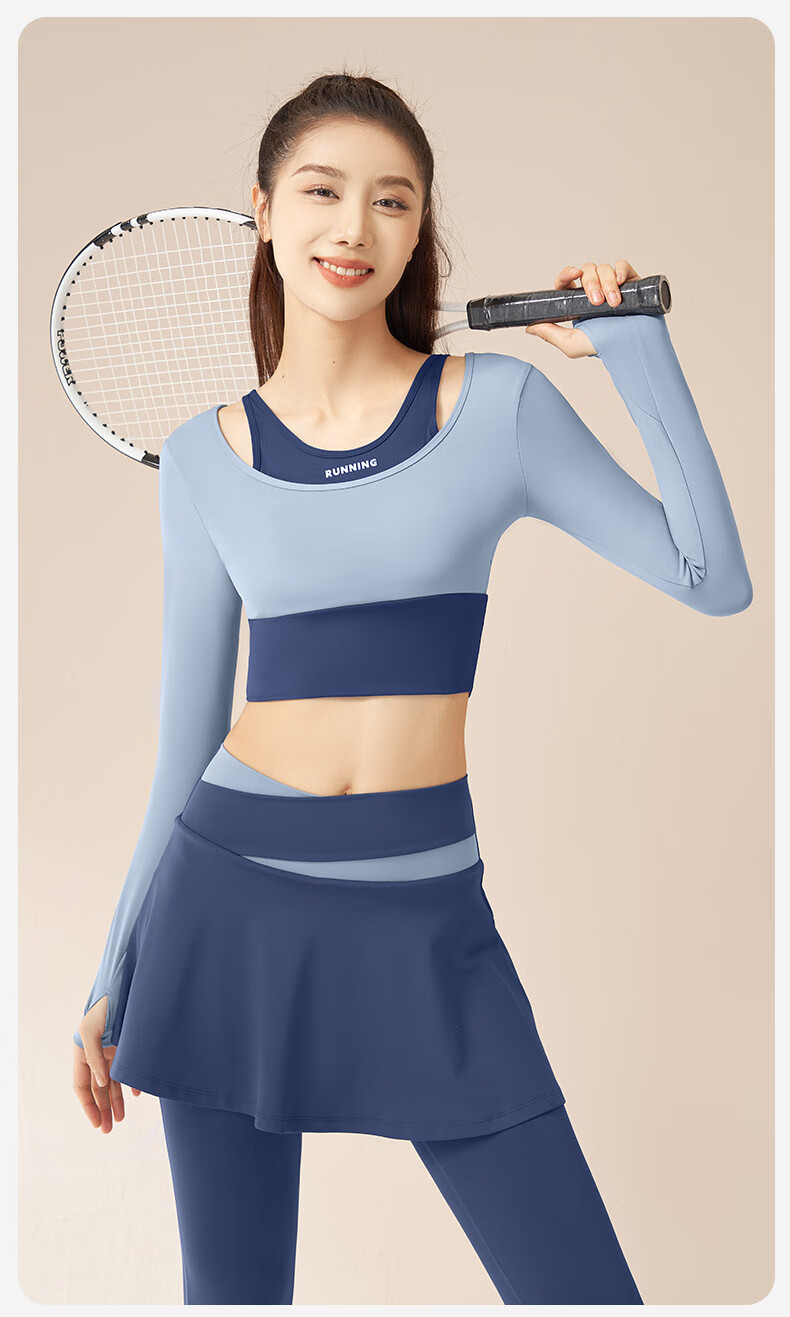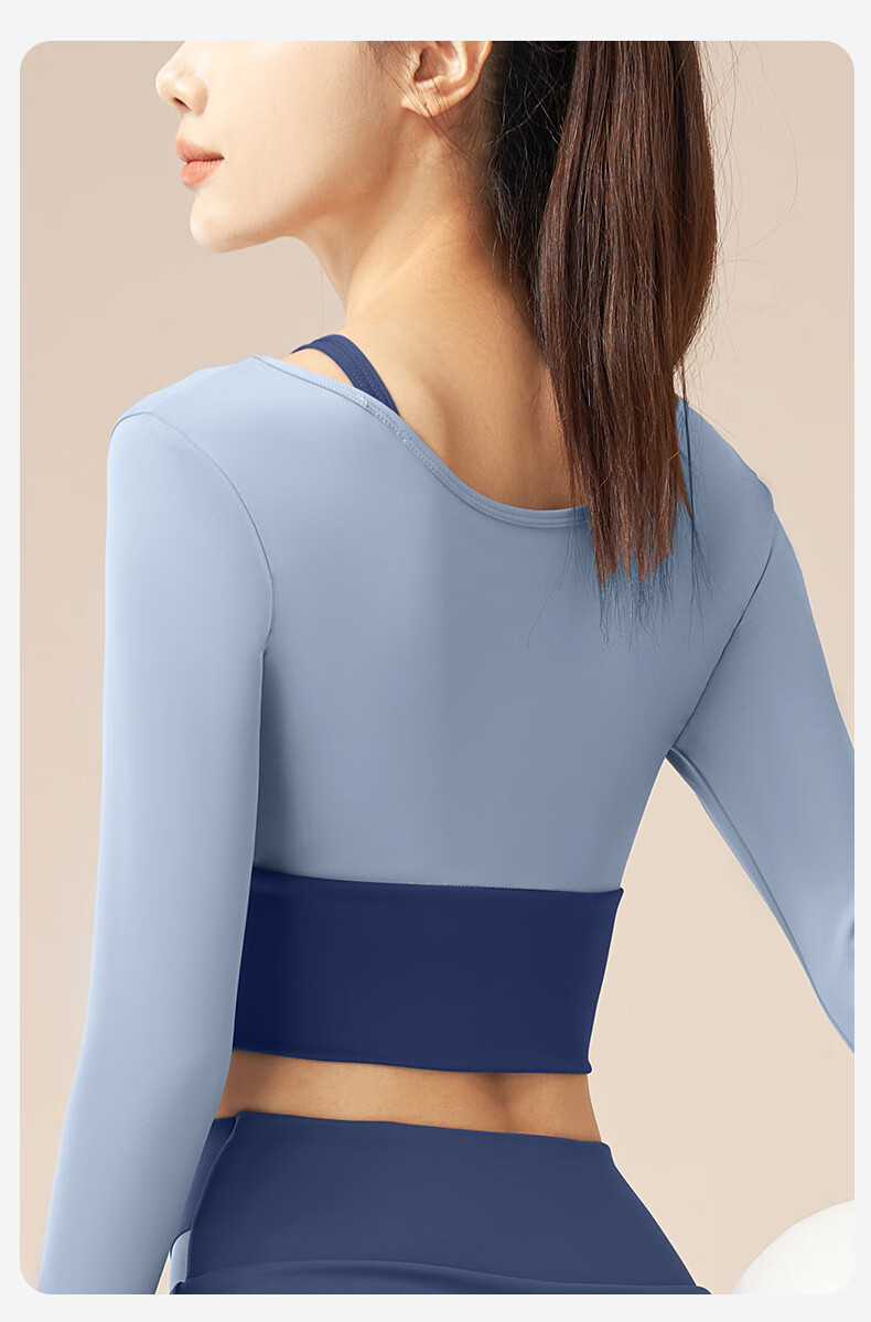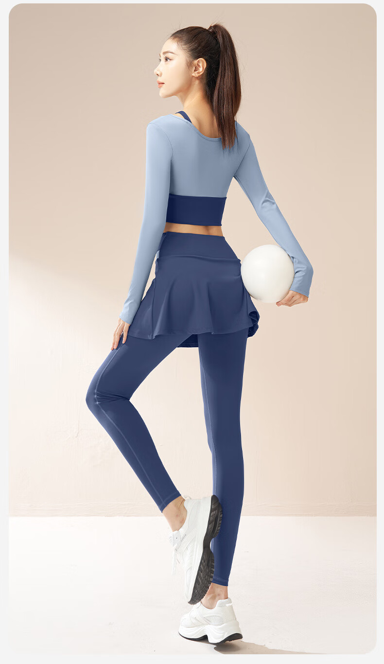 LULU CENTURY fake two-piece anti-exposure Pilates training suit for running, cycling and skipping, medium and high intensity yoga fitness clothes for women, gray lake blue + light frost blue S