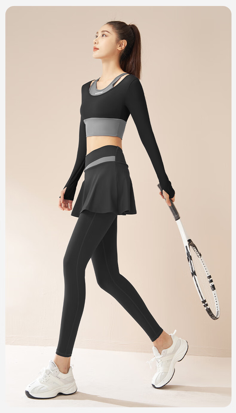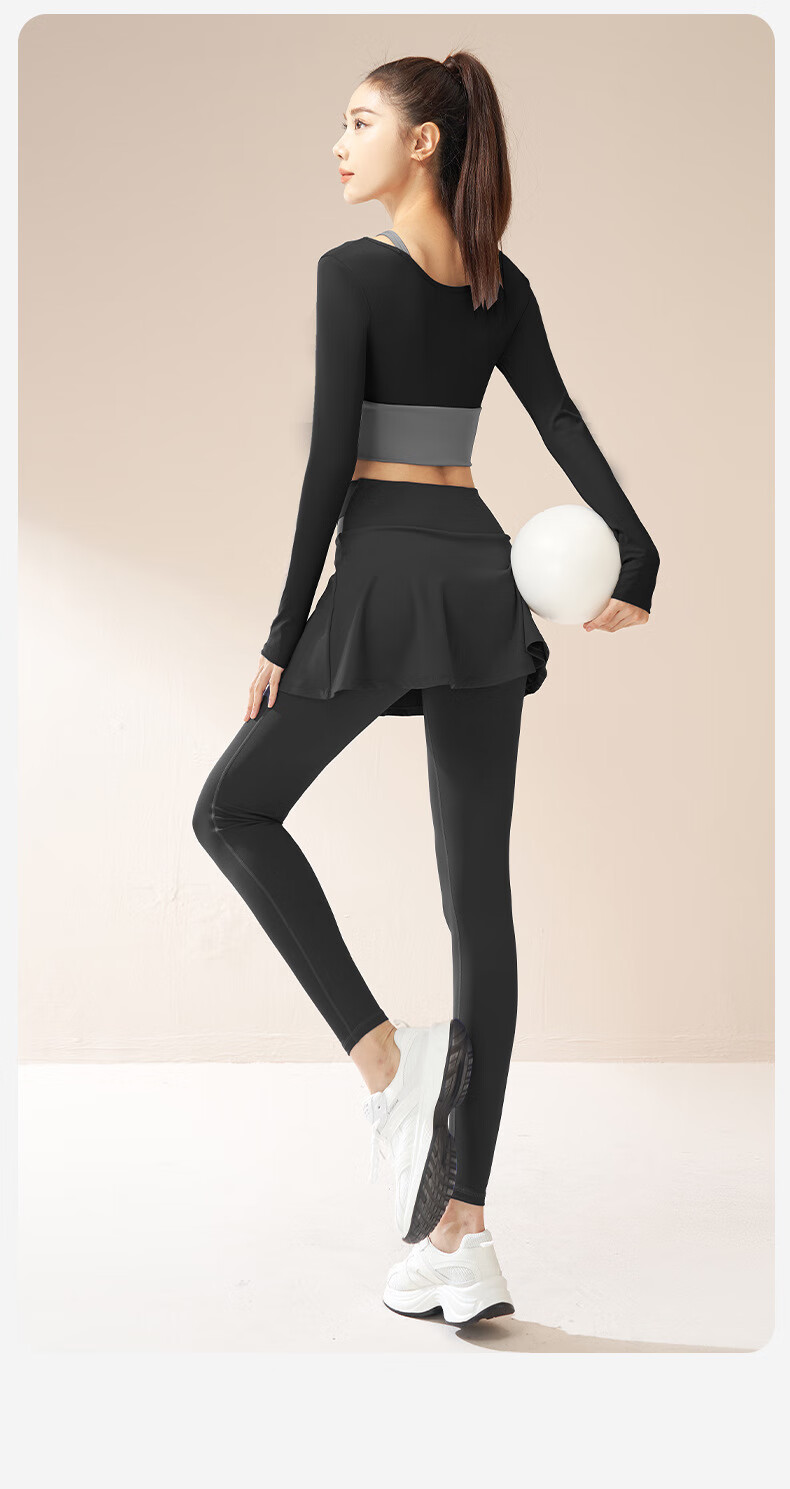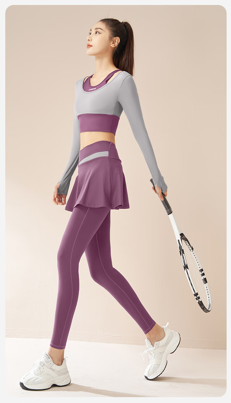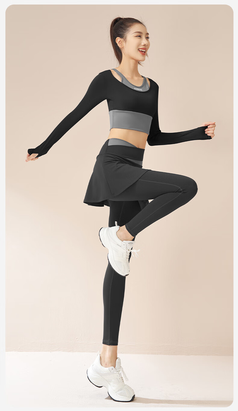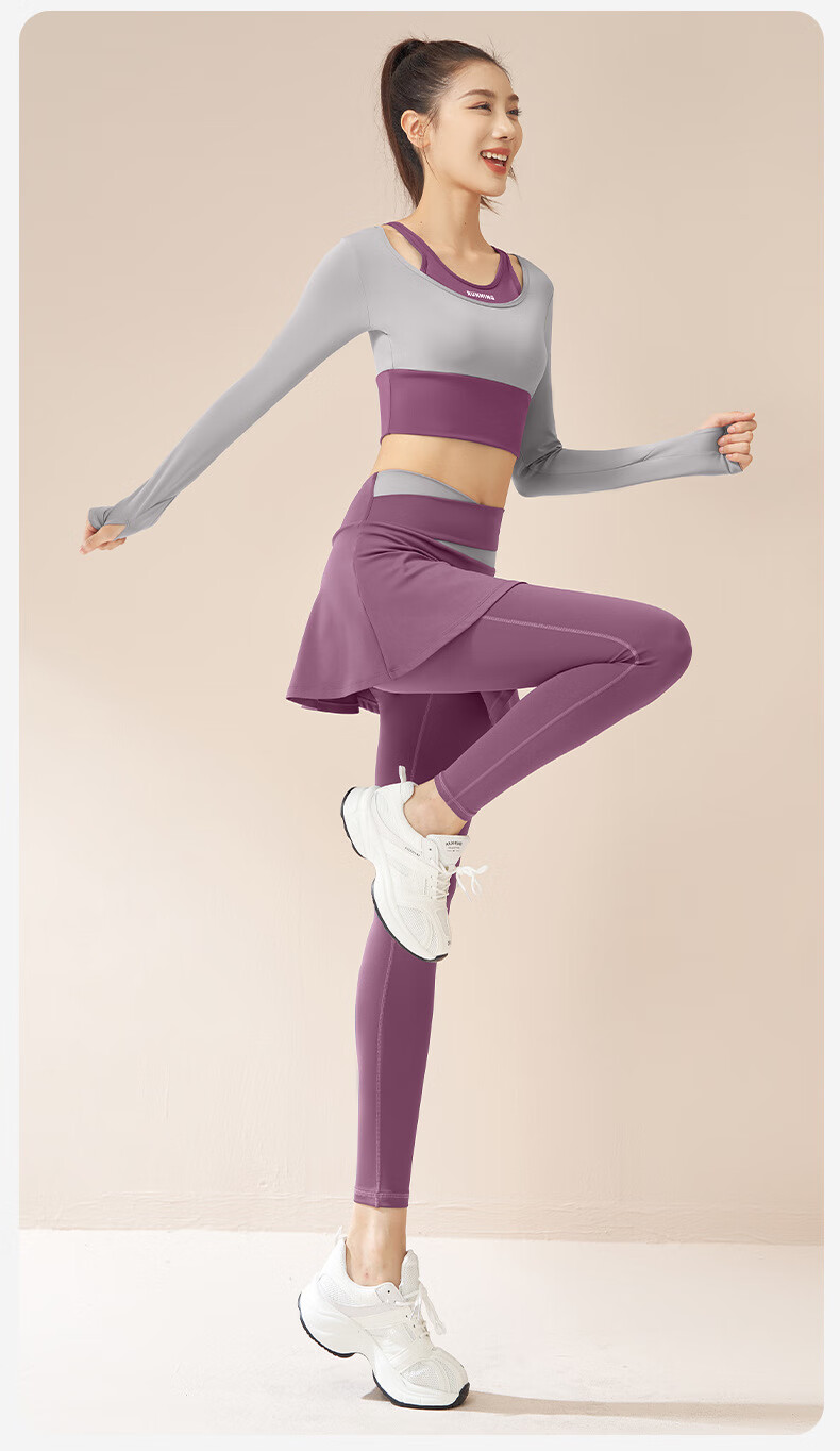 LULU CENTURY fake two-piece anti-exposure Pilates training suit for running, cycling and skipping, medium and high intensity yoga fitness clothes for women, gray lake blue + light frost blue S