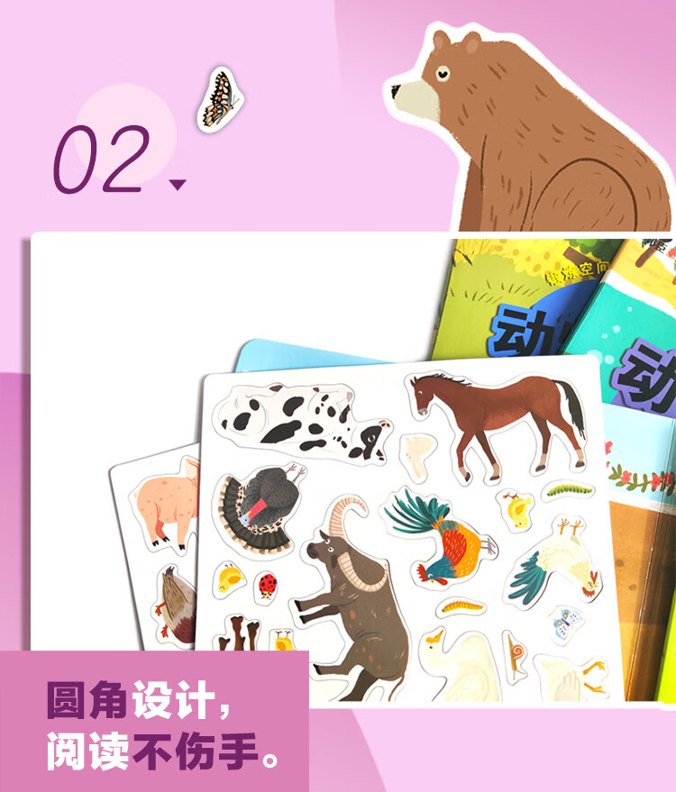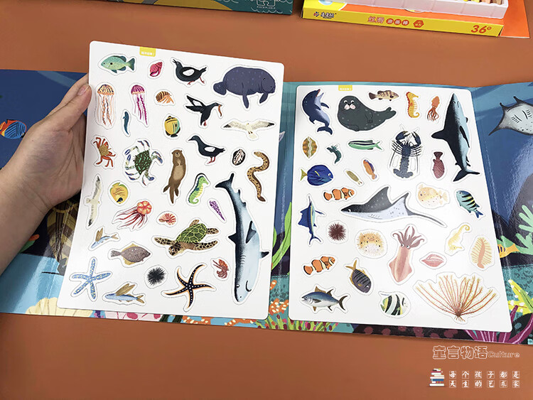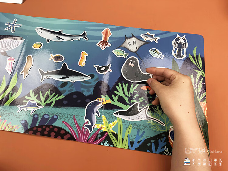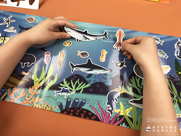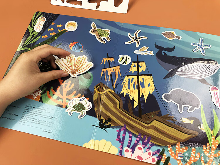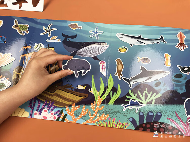 Little Red Flower Children's Repeat Sticker Book Pasting Stickers 2-3-4 Years Old Baby Magnetic Sticker Book Cartoon Early Education Toy Animal Game Magnetic Sticker-Marine Animals