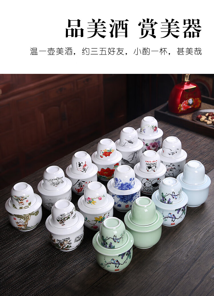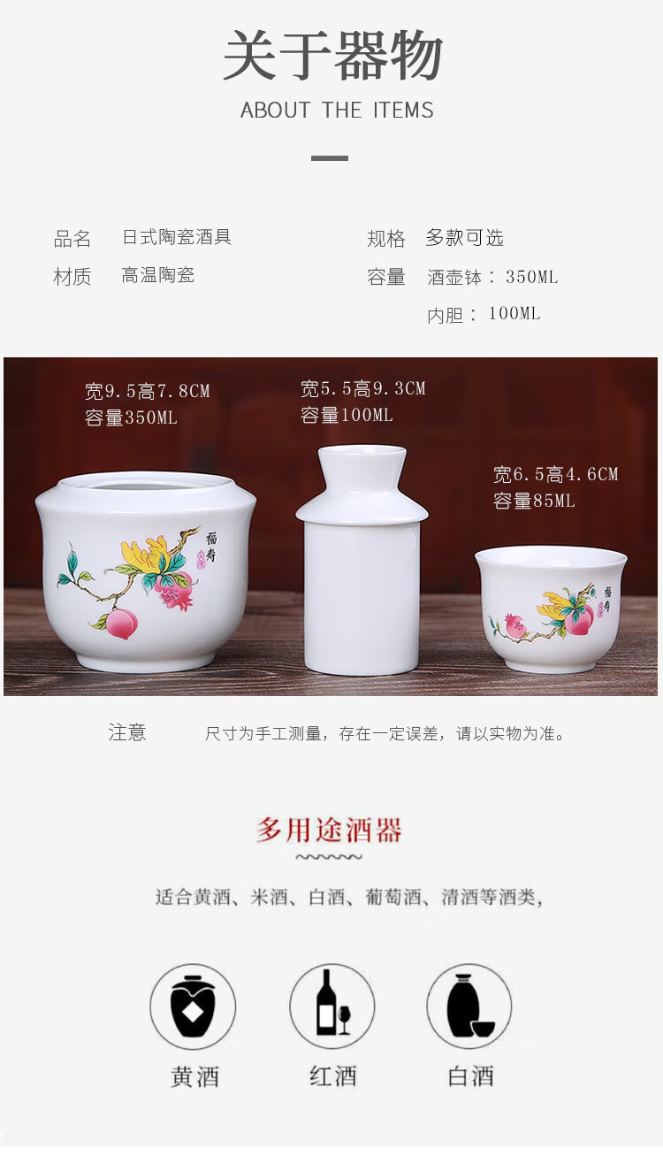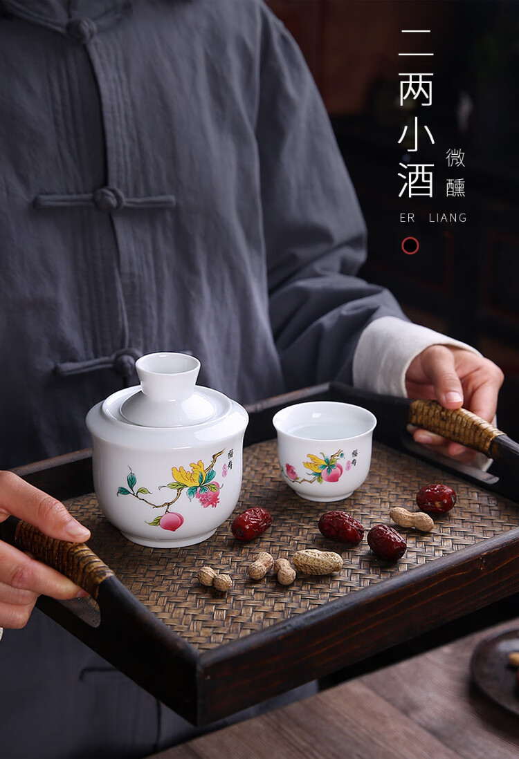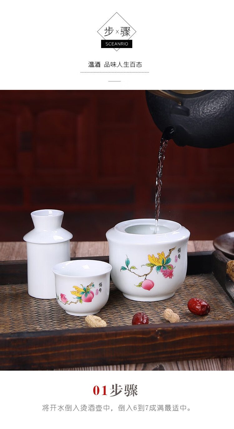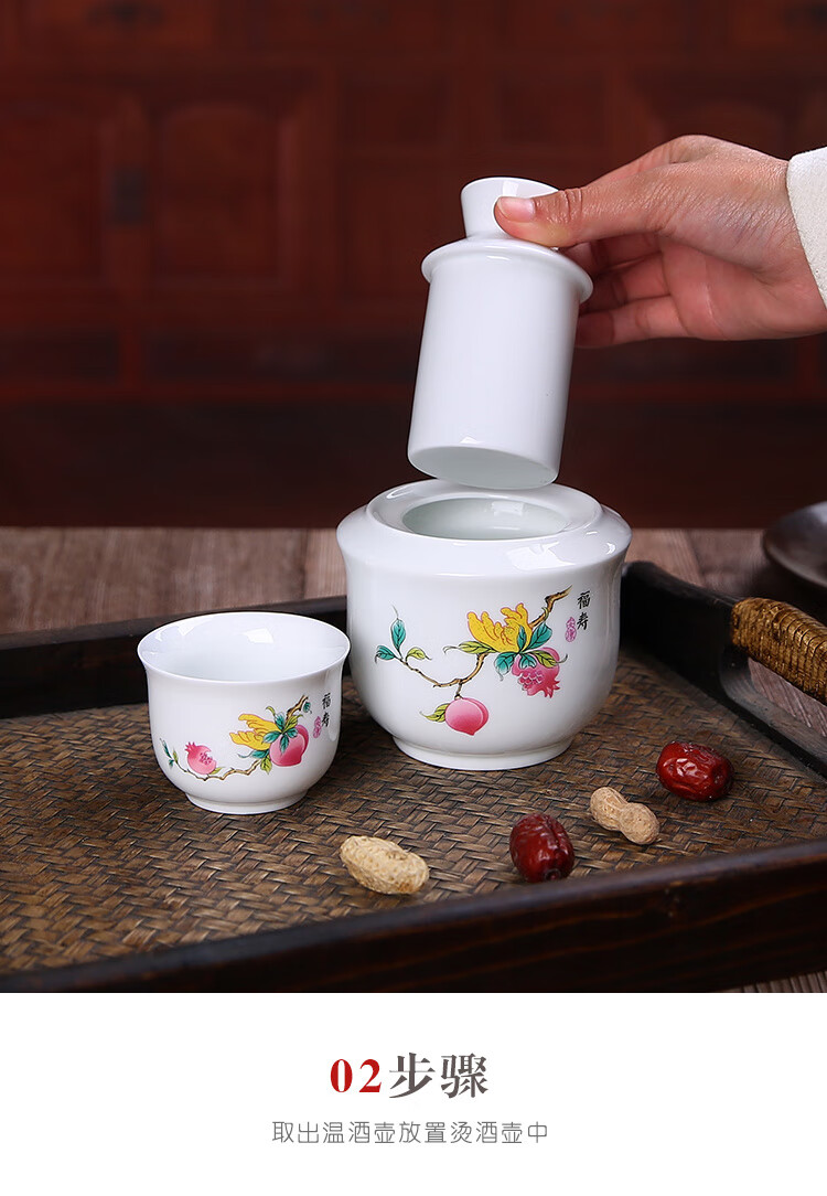 Enshousu wine set set hot wine jug household wine divider ceramic wine warmer Chinese spirits yellow wine white wine cup hot wine jug Fulu Shuangquan two liang
