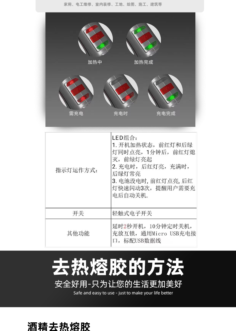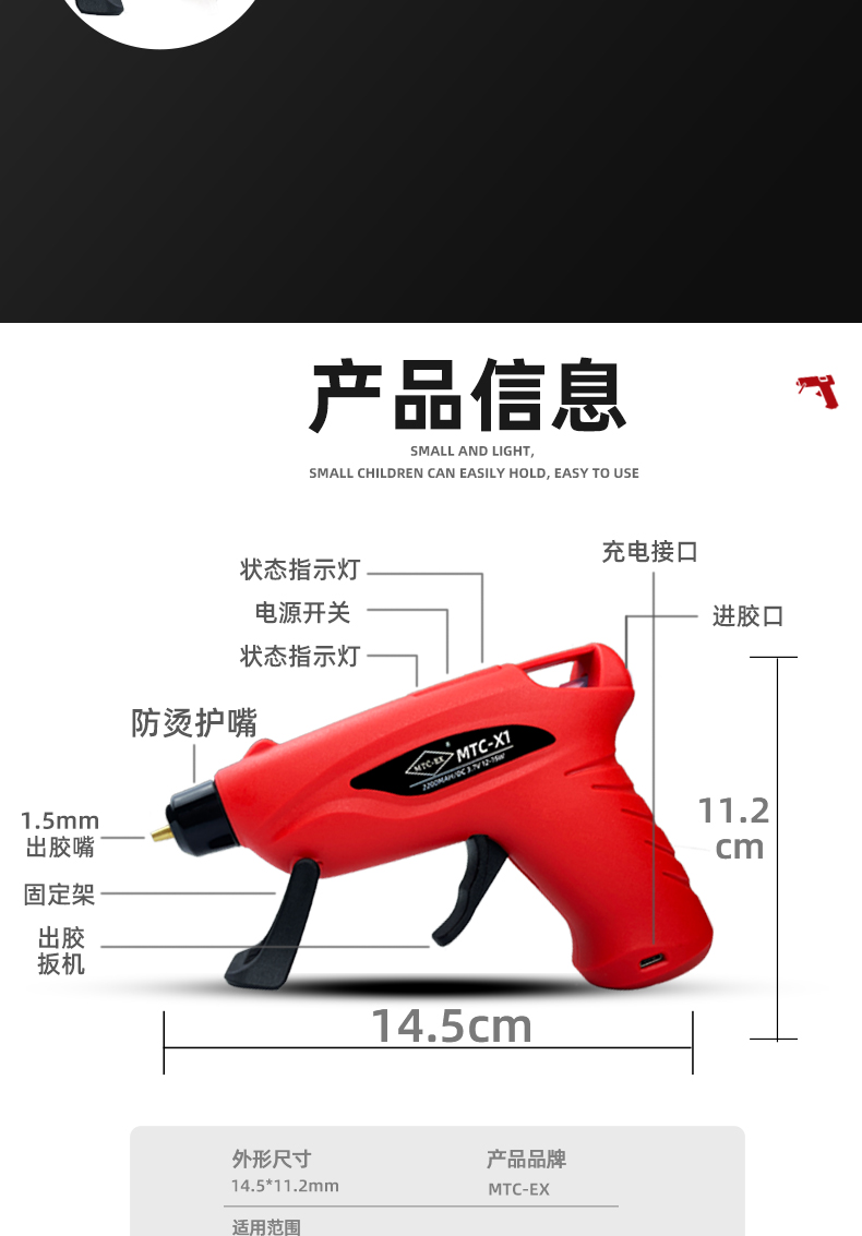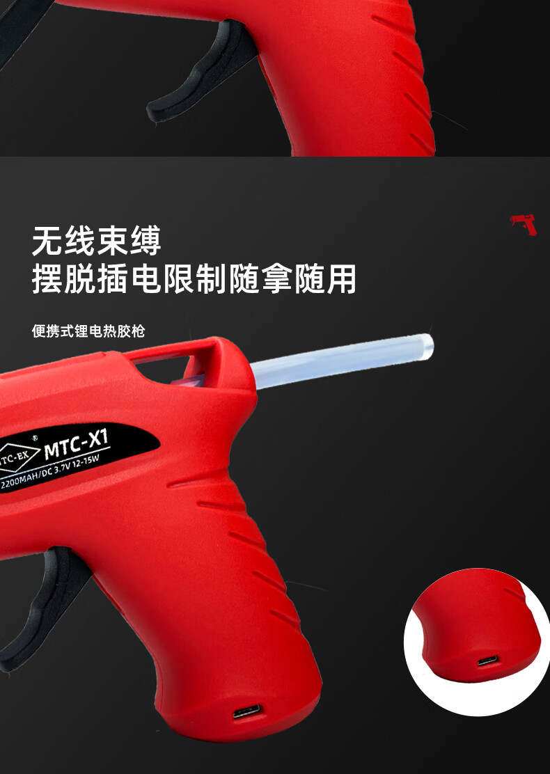 Taslon hot melt glue gun glue stick industrial-grade wireless charging high-viscosity strong small children's handmade household glue gun (+10 short glue sticks)