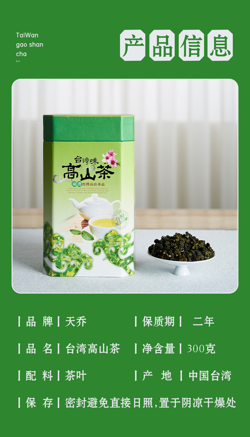 TIANQIAO Taiwan High Mountain Tea Alishan Jinxuan Oolong Tea High Cold Tea Clear Mellow Fragrance Jar Vacuum Bag Simple Pack 300g