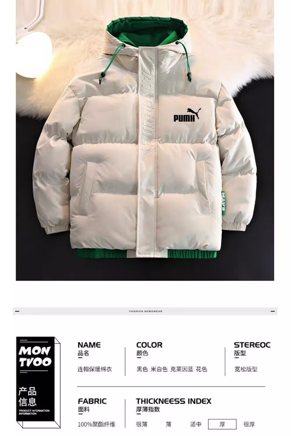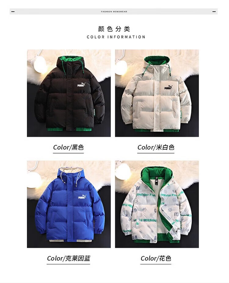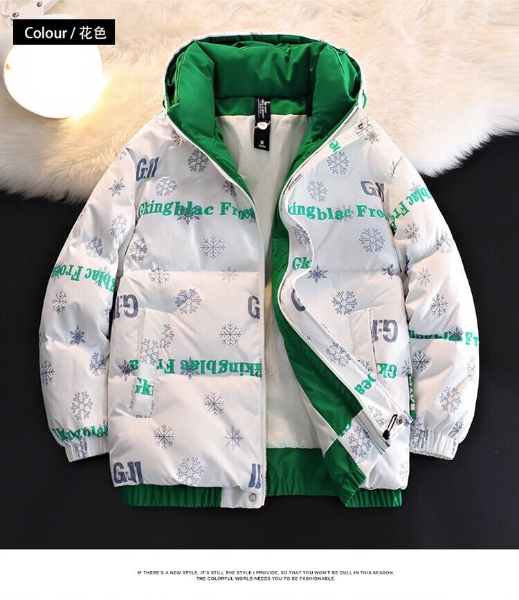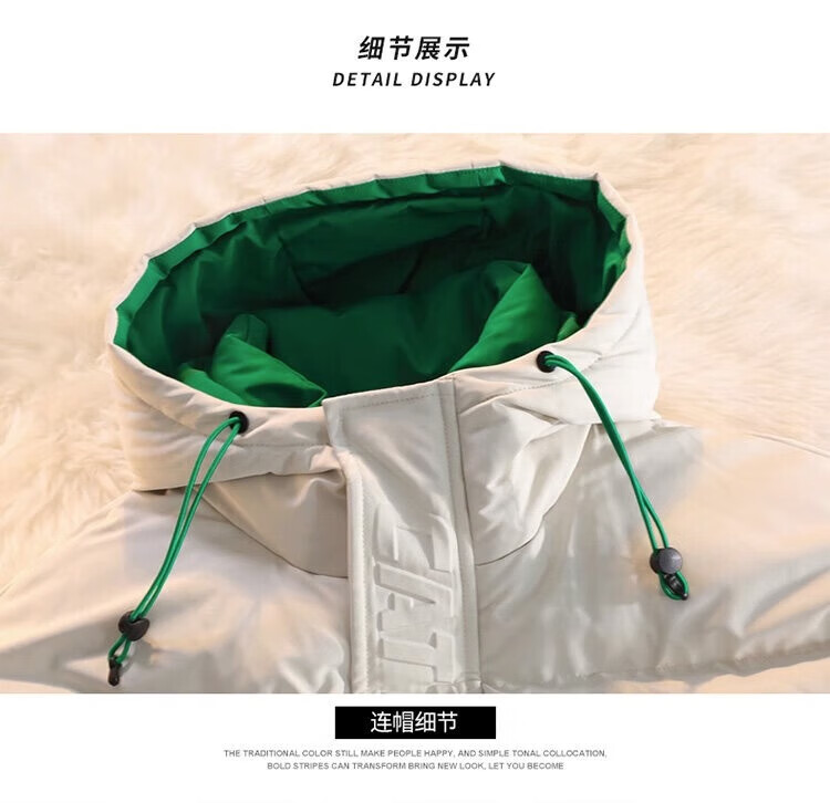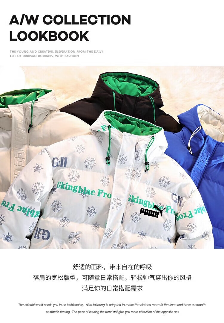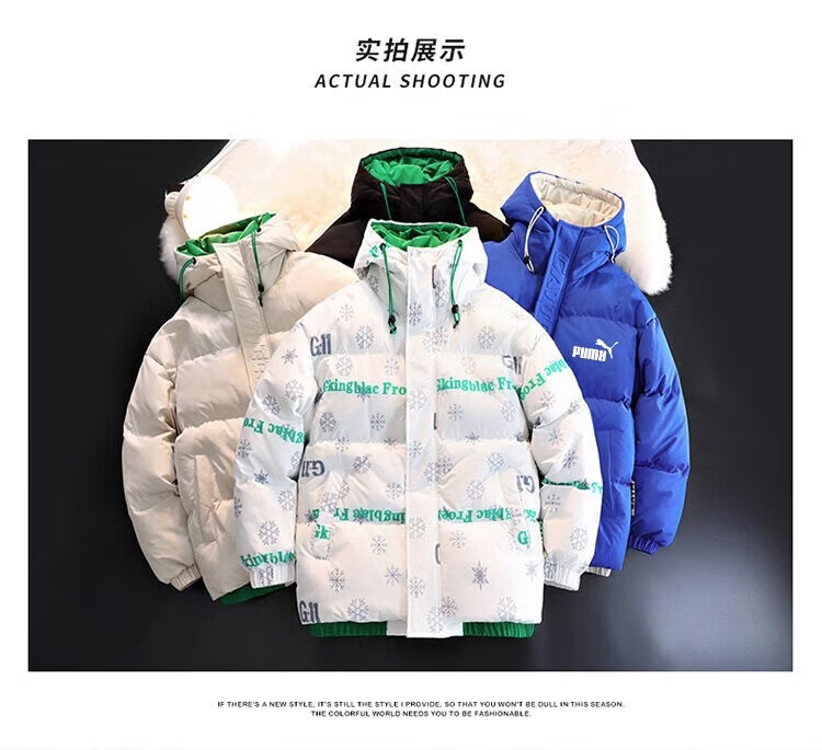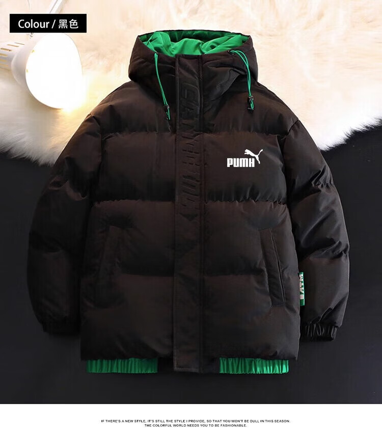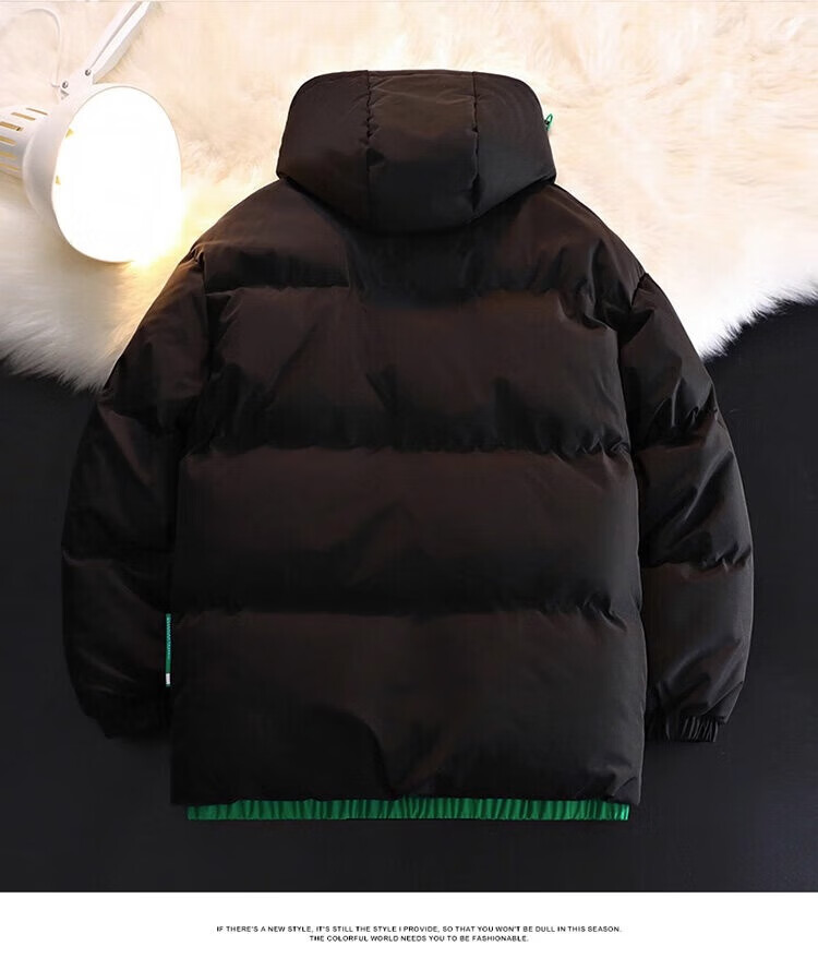 Men's hooded down jacket winter couple new thickened warm cotton coat trendy brand youth cotton-padded jacket winter jacket black XL