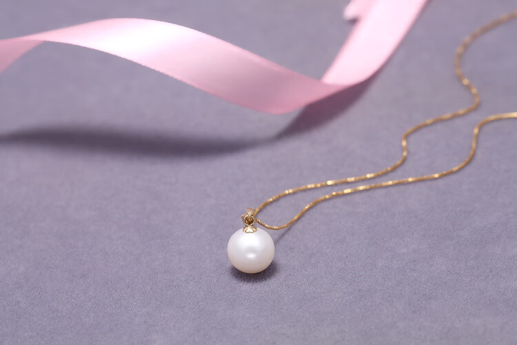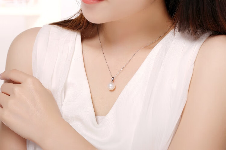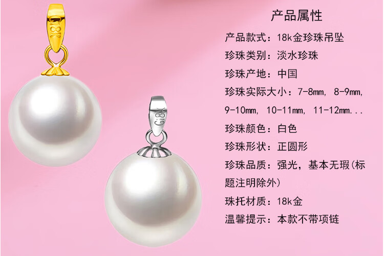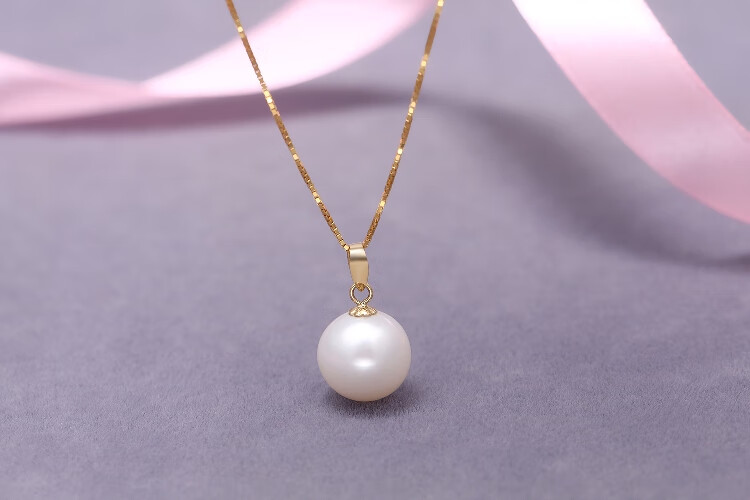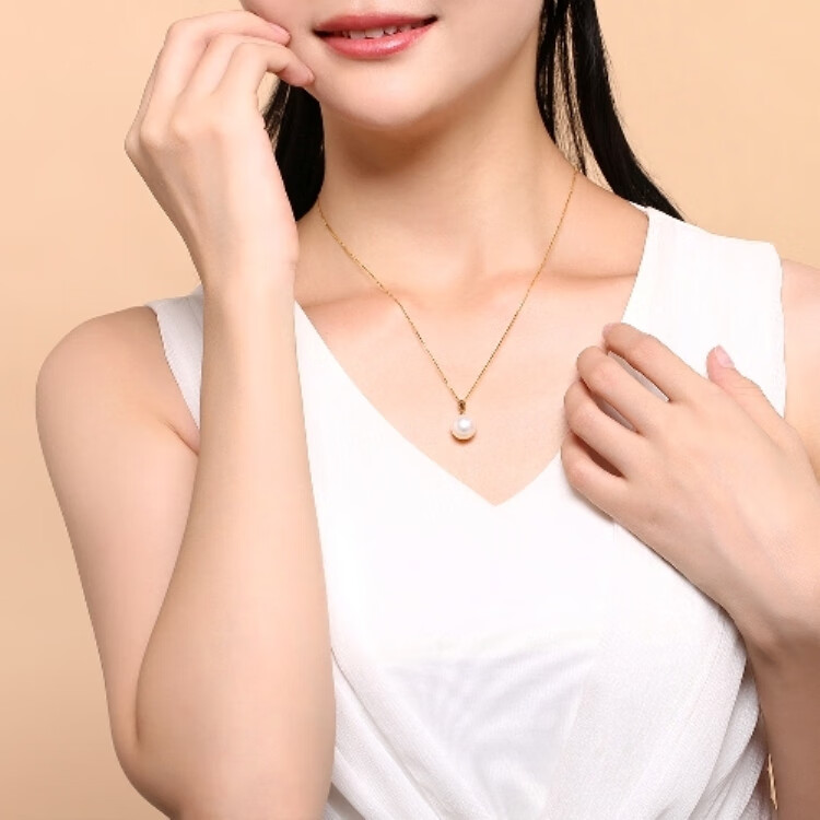 Drops of water pearls without chain single pendant 18k gold holder with round freshwater pearl DIY matching practical gift 10.0-11.0mm pearl + white 18k gold holder