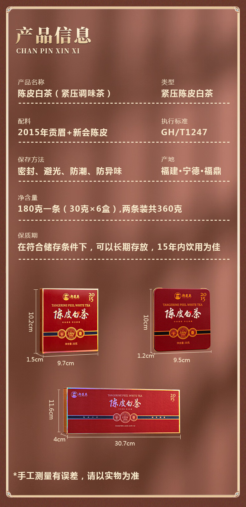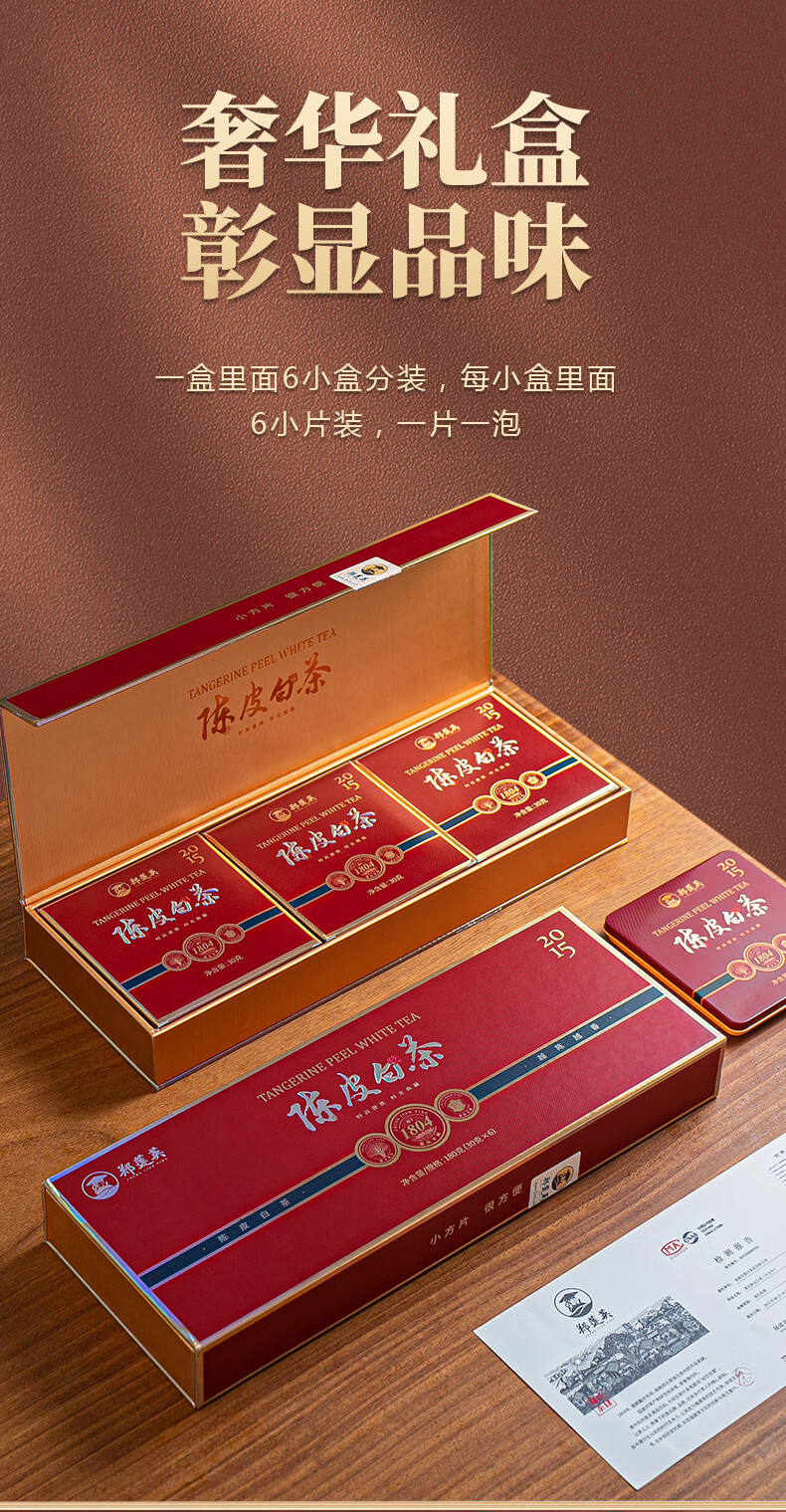 ZHENGLIANYING Tangerine Peel White Tea 2015 Gongmei Xinhui Tangerine Peel Pressed Tangerine Peel White 900g (5 pieces gift bag + stew teapot