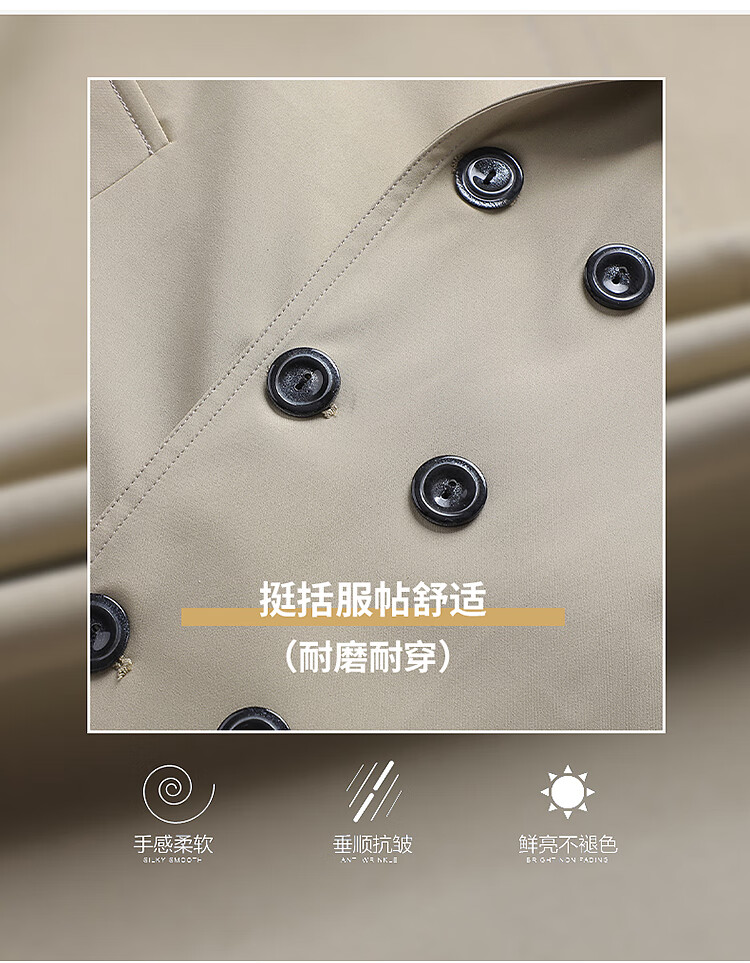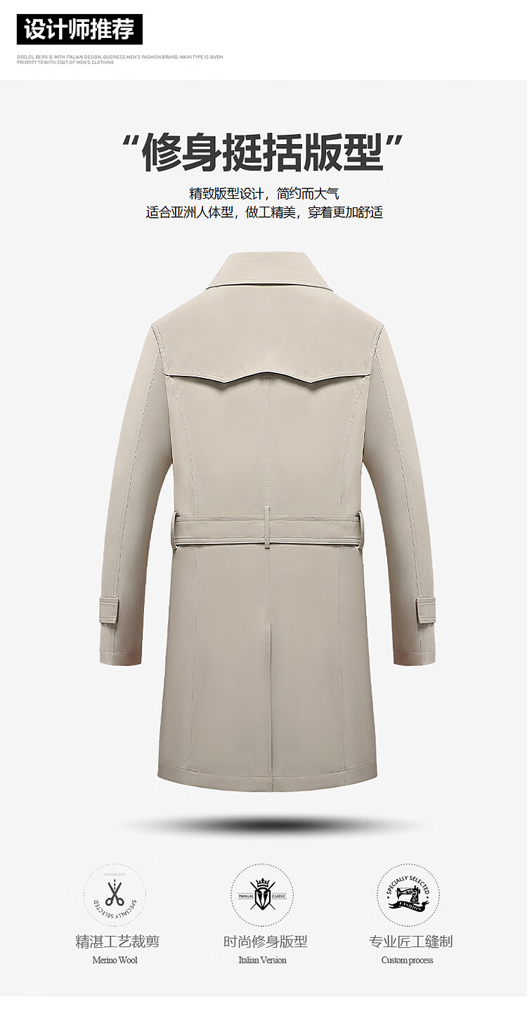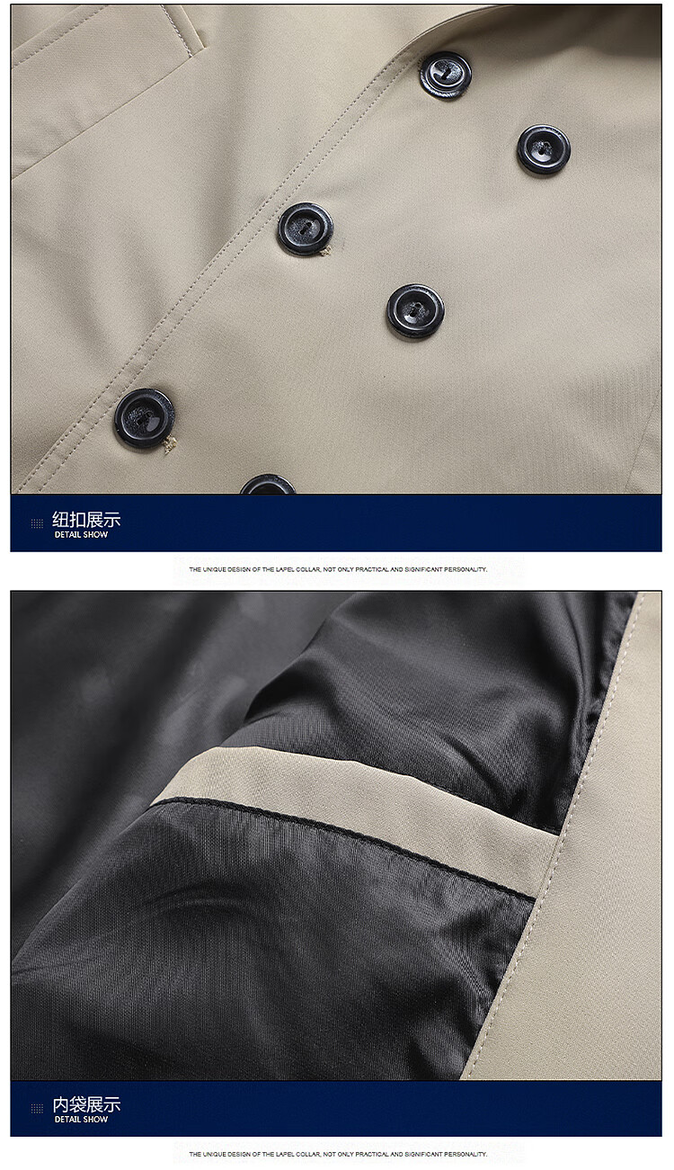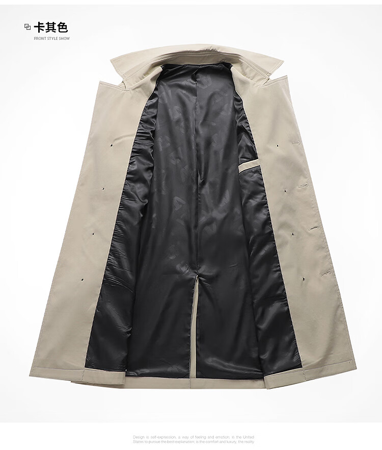 Hengyuanxiang men's windbreaker spring and autumn new style men's 2024 British style mid-length double-breasted top men's spring coat trend 1911 black M