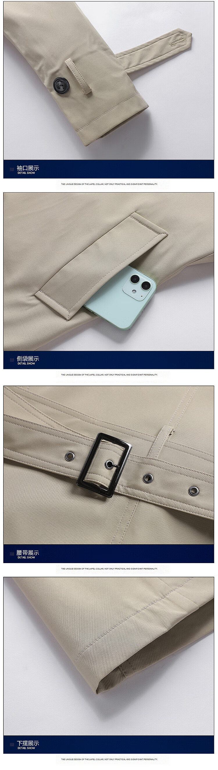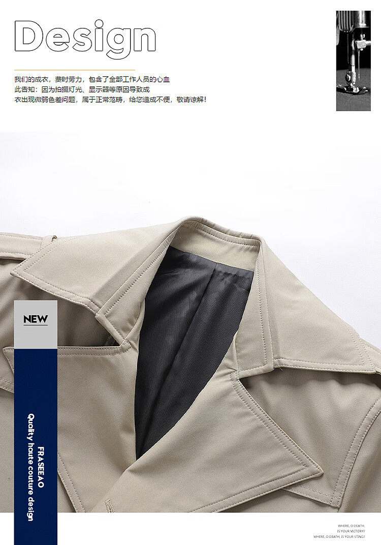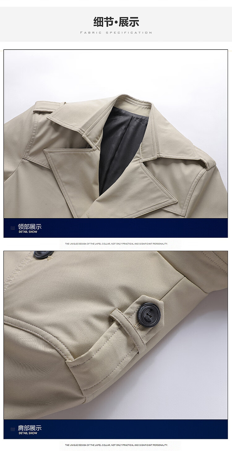 Hengyuanxiang men's windbreaker spring and autumn new style men's 2024 British style mid-length double-breasted top men's spring coat trend 1911 black M