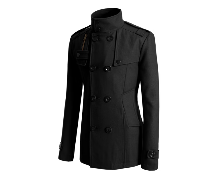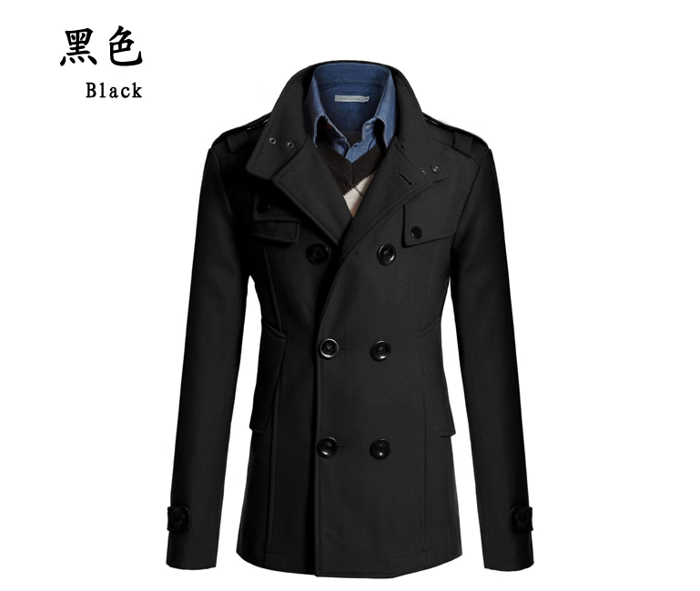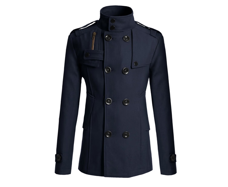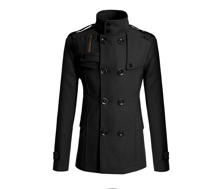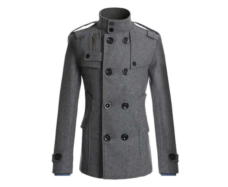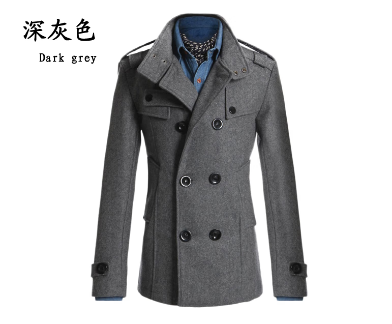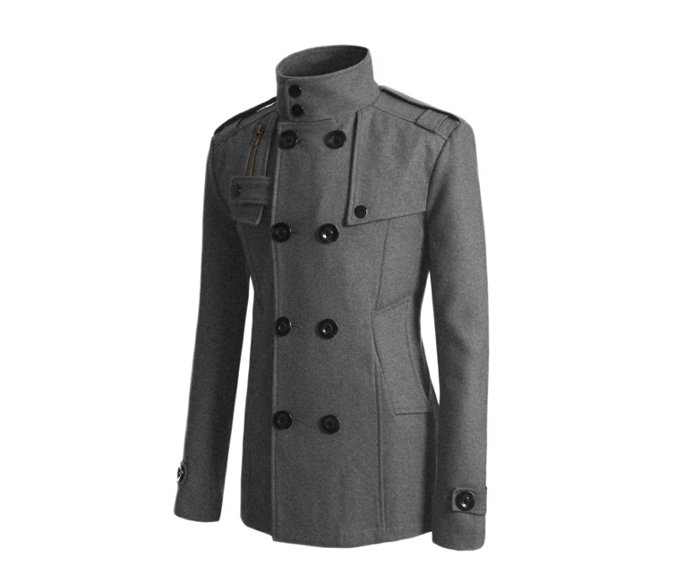 Hengyuanxiang World War II German Men's Woolen Coat Slim Medium Long Stand Collar Windbreaker Triad Casual Jacket Men's Dark Gray As Pictured XL