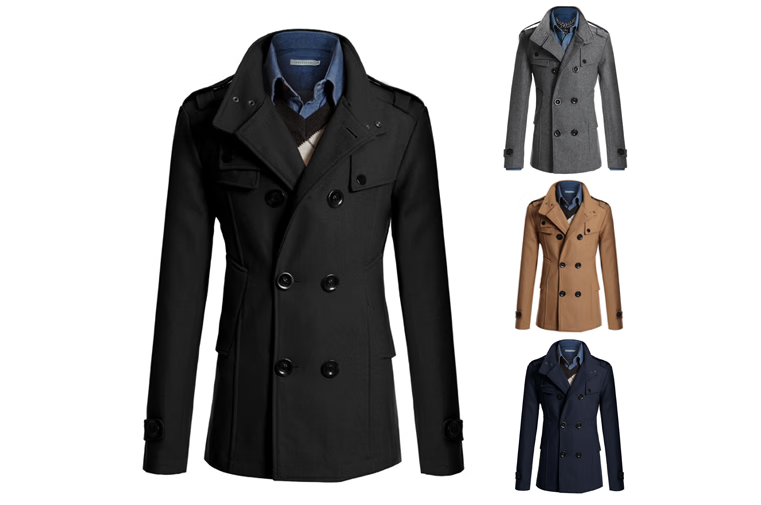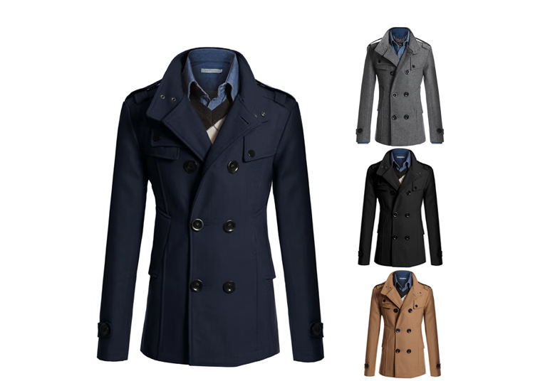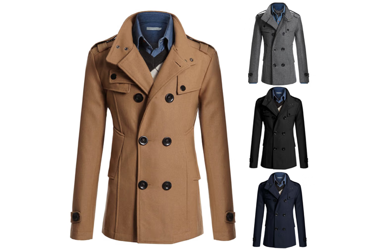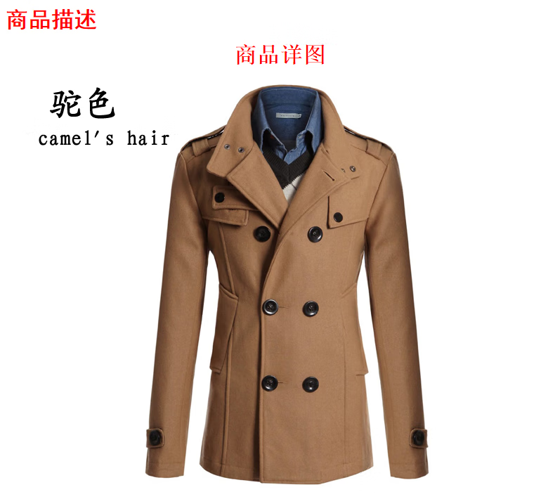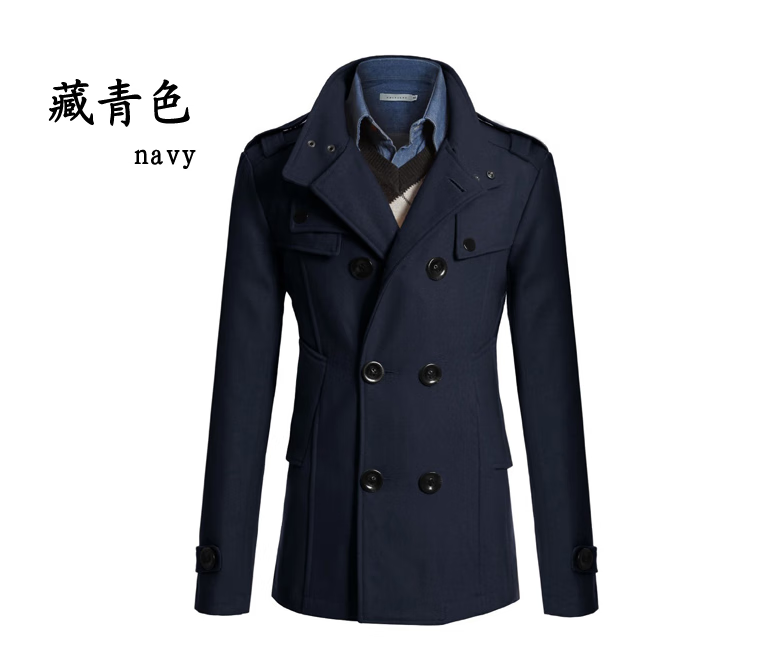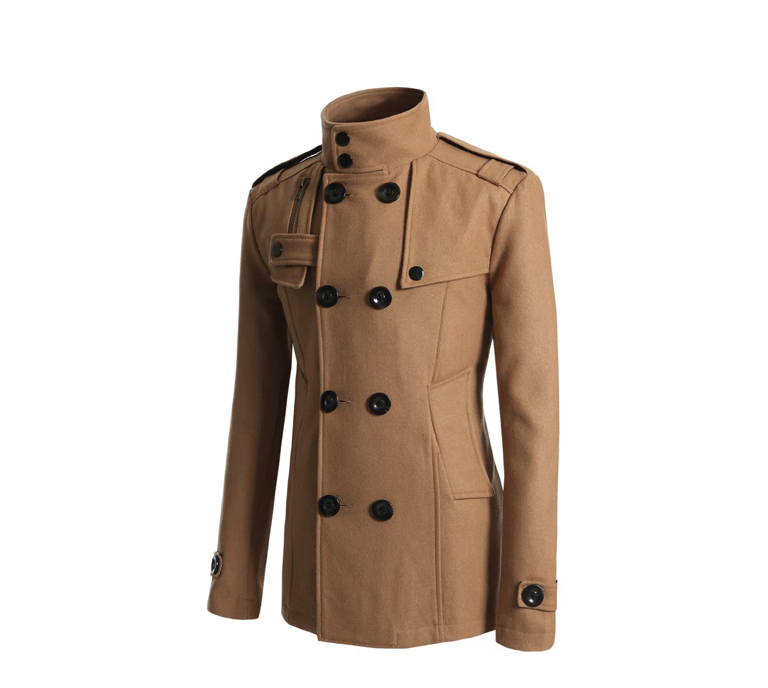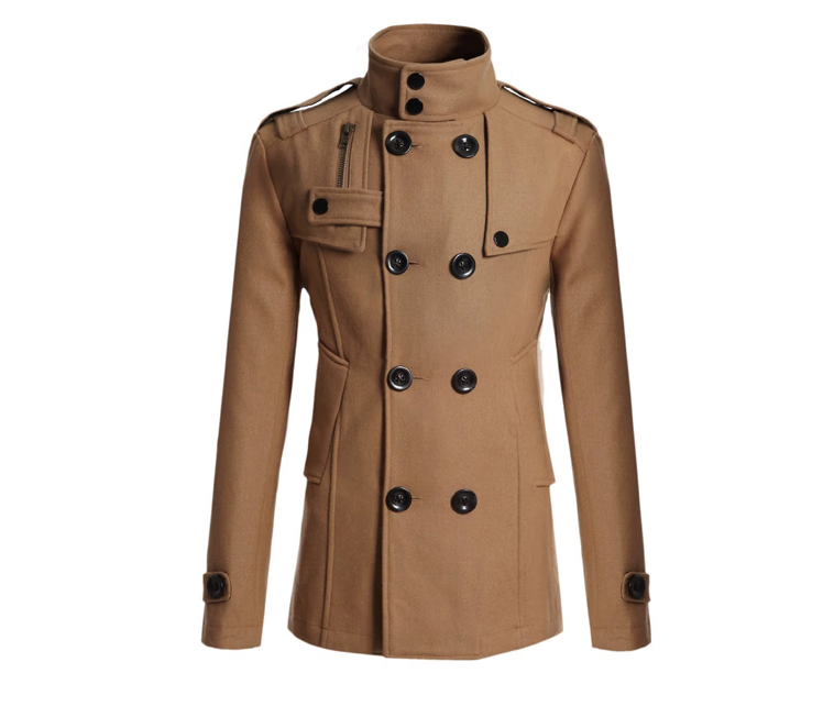 Hengyuanxiang World War II German Men's Woolen Coat Slim Medium Long Stand Collar Windbreaker Triad Casual Jacket Men's Dark Gray As Pictured XL
