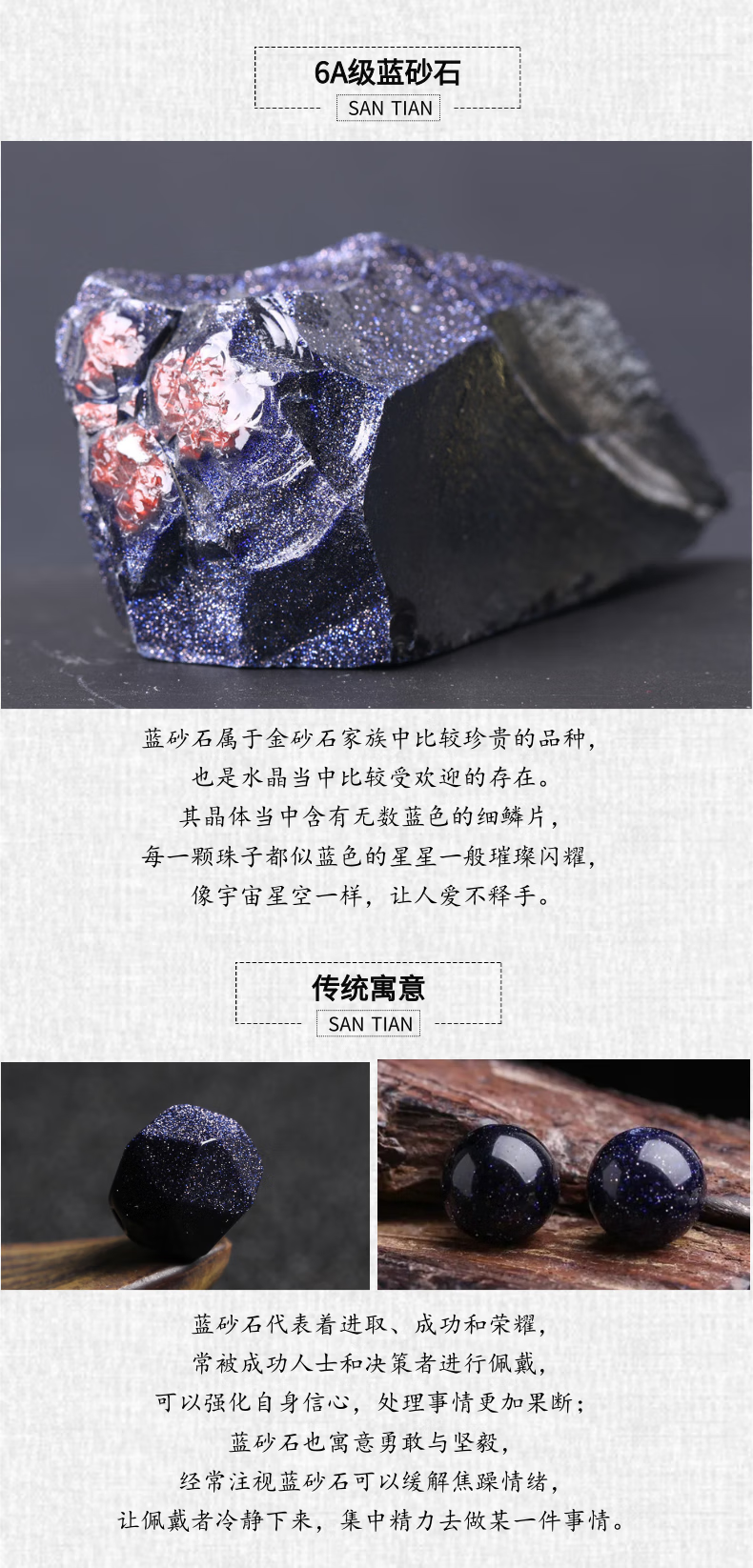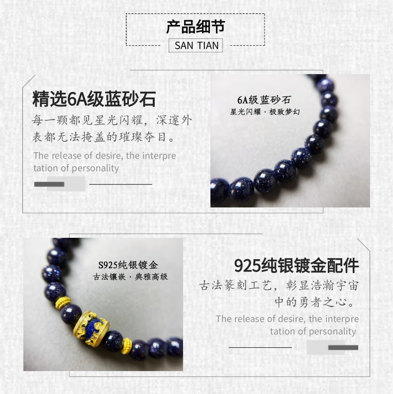 Ancient blue sandstone bracelet with S925 sterling silver gold-plated bucket beads, original design, stone of glory and victory 6mm, premium 6A grade blue sandstone 6mm, free packaging box
