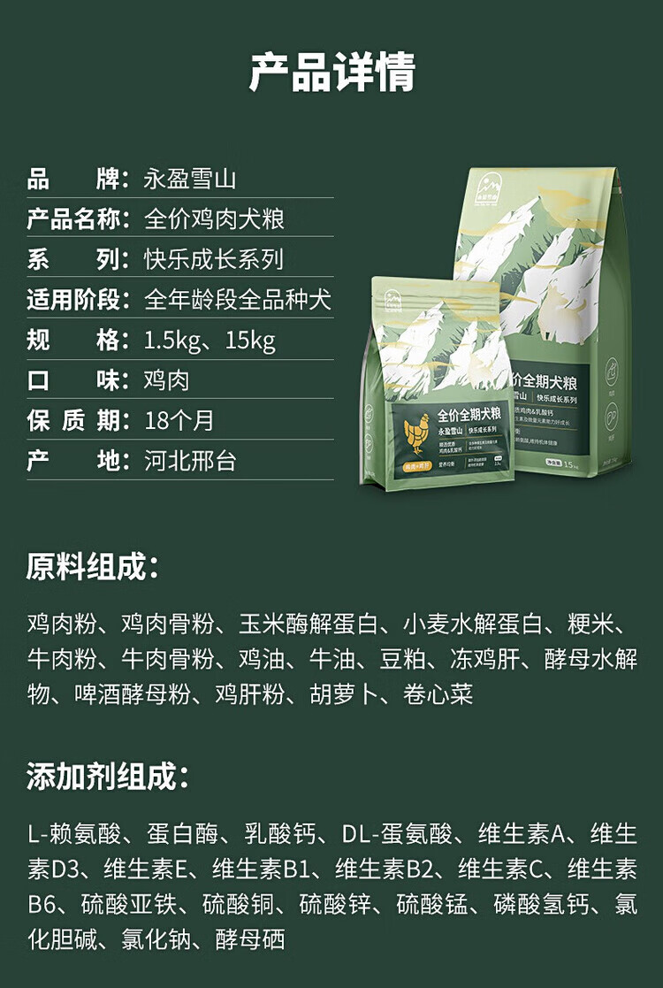 Lecaifu Yongying Snow Mountain Dog Food Happy Growth Series Grain-free Full-price Full-Term Chicken and Liver Nutritional Puppy Dog Food Full-price Chicken Dog Food 1.5kg