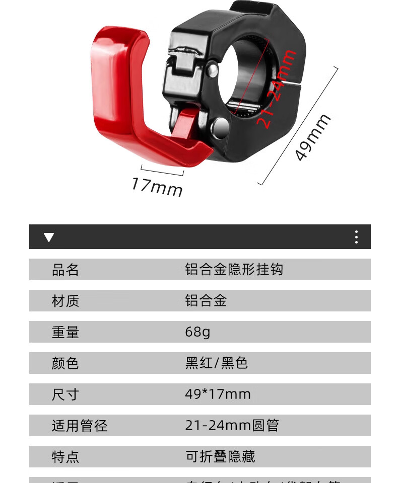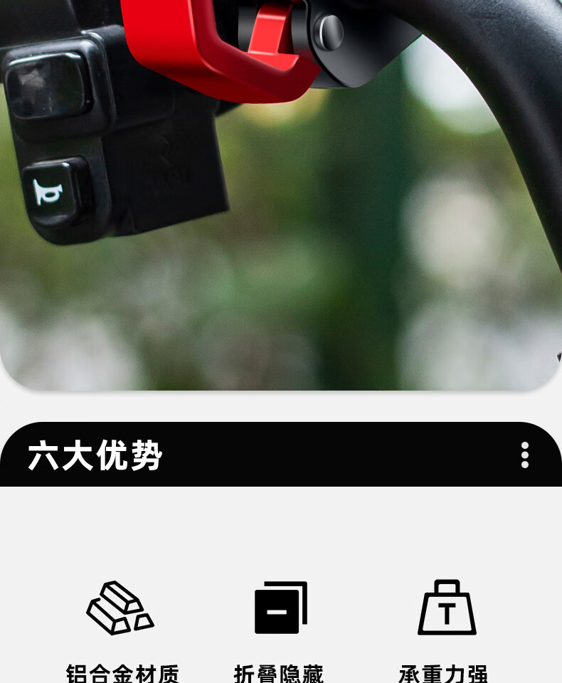 TOOKTRO motorcycle electric vehicle hook strong load-bearing front universal battery bicycle handlebar hanging special storage hook Rubik's cube invisible hook cool black 2 pieces
