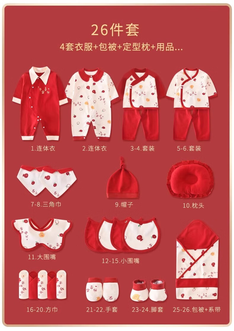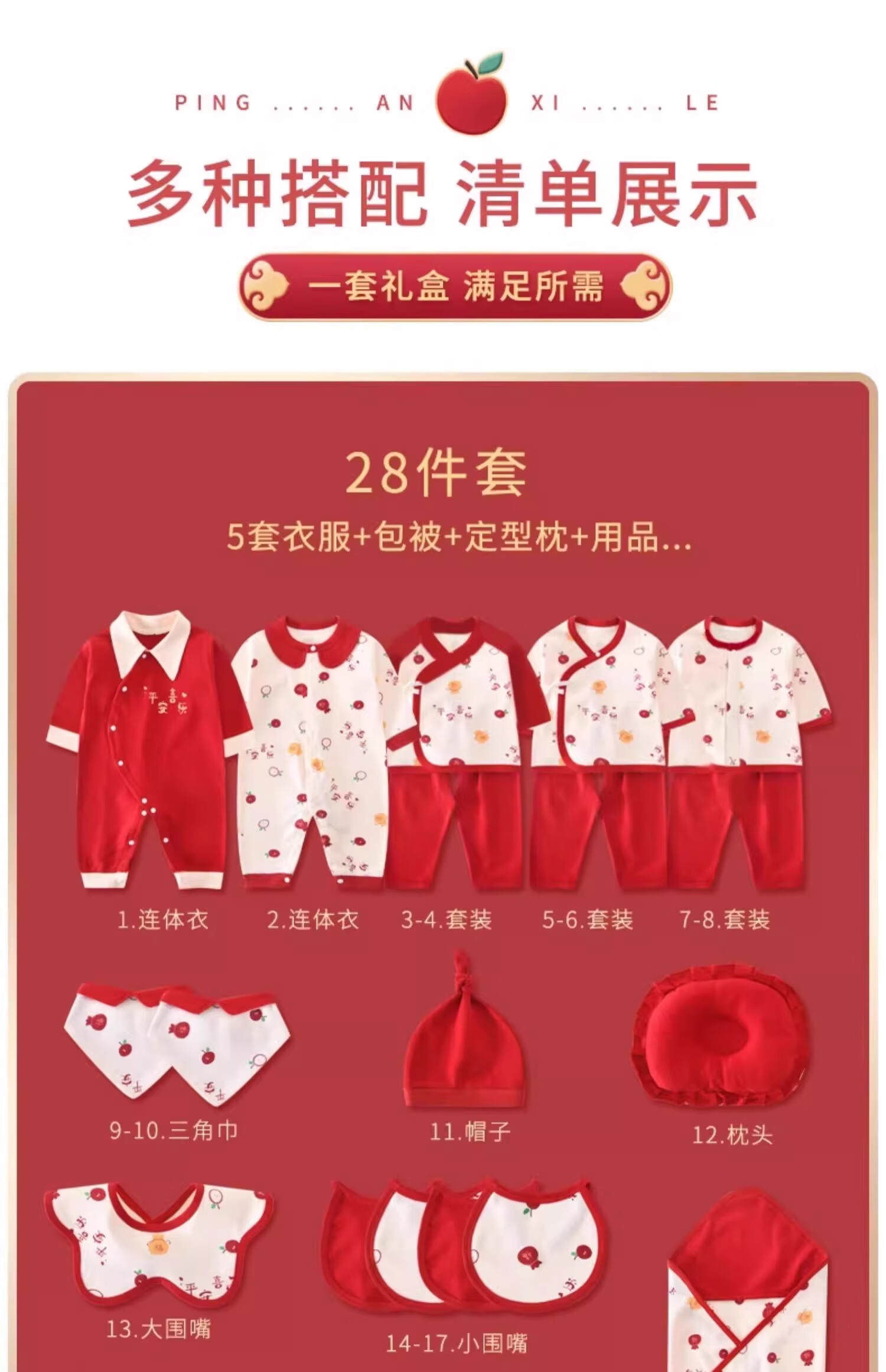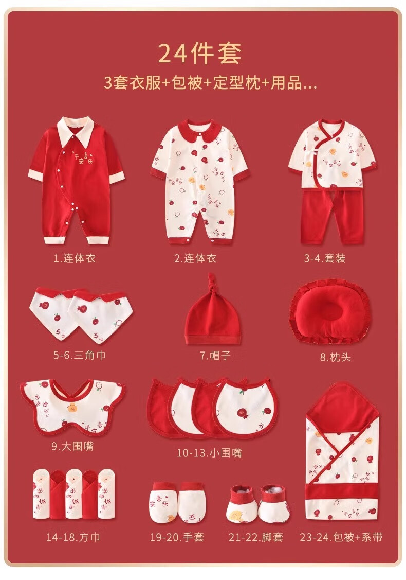 Mian Xiaoguo Newborn Meet Gift Box, Baby Clothes, Newborn Suit, Newborn Baby Full Moon Supplies, Maternity Gift, High-end Warmth | 22 Pieces | Portable Gift Box 66cm (Full Moon Gift 3-6 months)