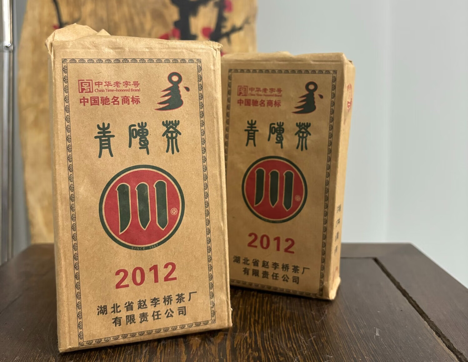 Zhaoliqiaochuan brand Zhaoliqiao Tea Factory 2012 450g green brick tea old black tea aged old ingredients taste smooth and sweet