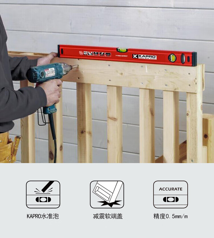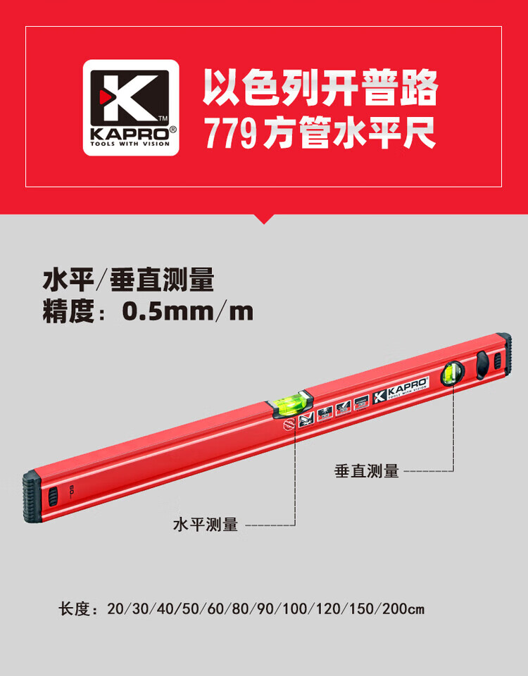 KAPROKAPRO Israel Cape Road 779 square tube level high-precision 2-meter flat water level with magnetic aluminum alloy small strong magnetic 30CM two blisters