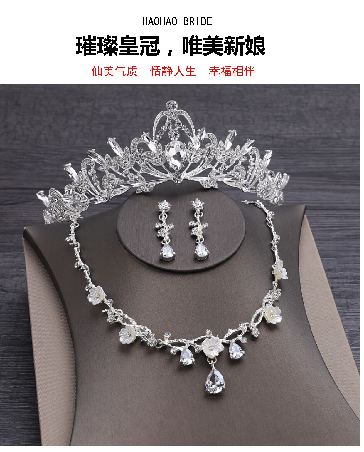 Shijun (SHIJUN) birthday princess crown tiara for adults Korean wedding dress bride wedding crown three-piece set forest style super fairy wedding hair silver necklace + earrings ear clip gift box