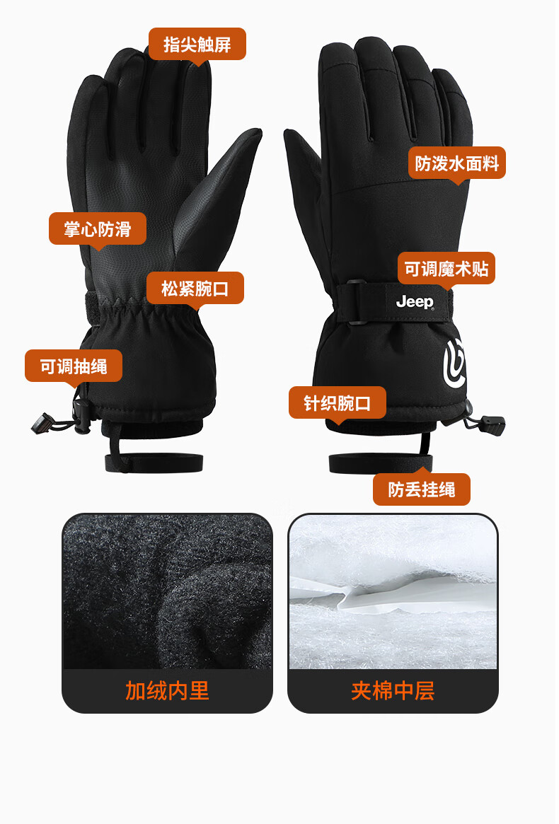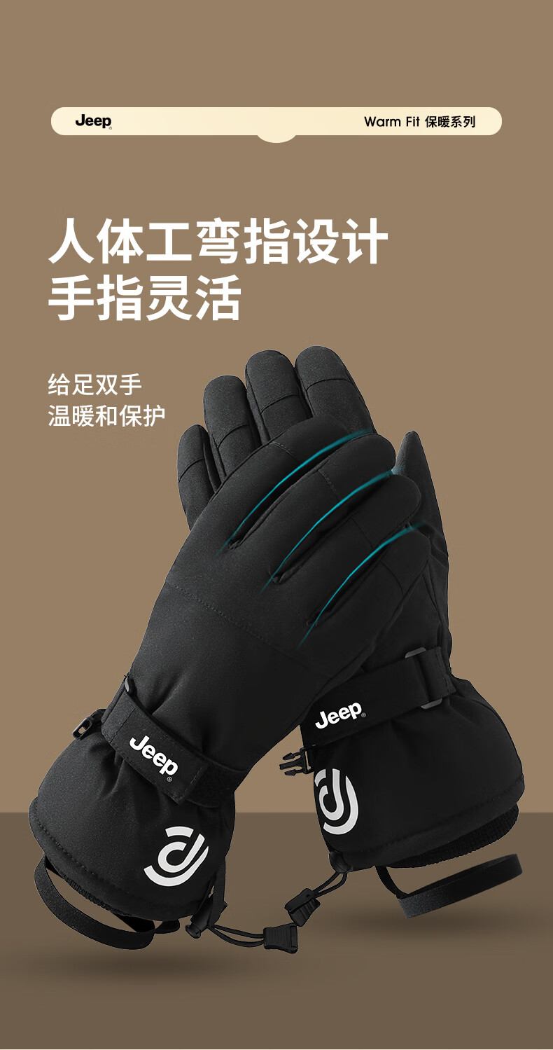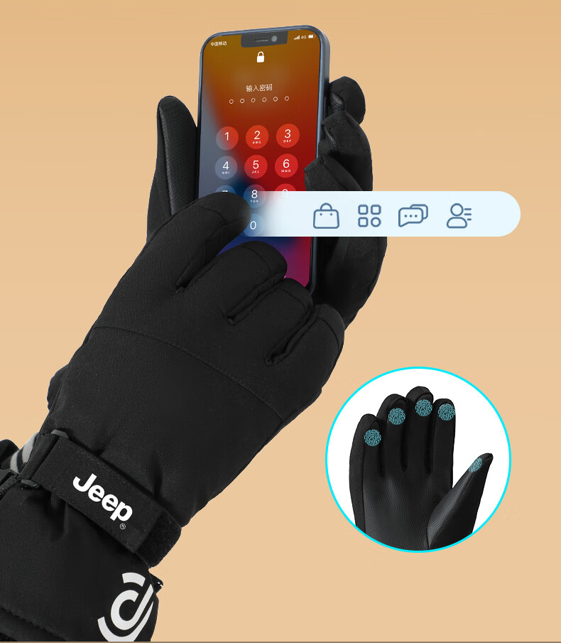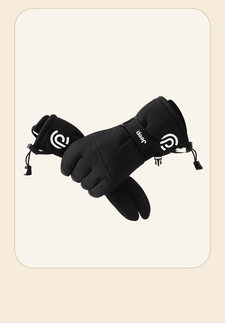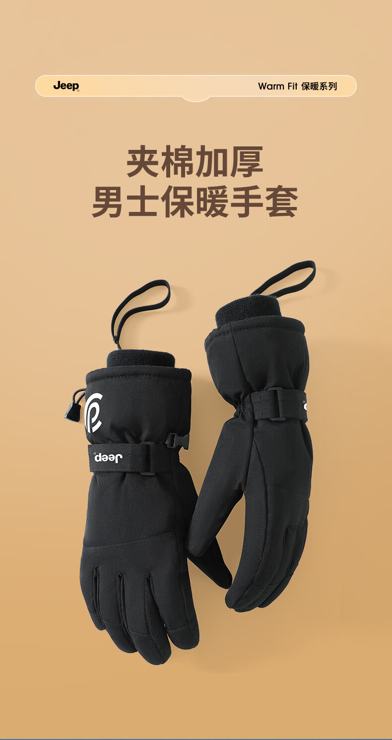 JEEP Warm Gloves Men's Winter Windproof and Coldproof Touch Screen Cycling Ski Cotton Gloves Men's Outdoor Cycling Gloves Black