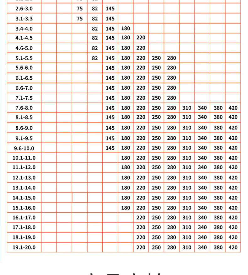76.2 81.3 86.4 91.5 96.5 101.6 106.7 112 117 122 127 132 137 142