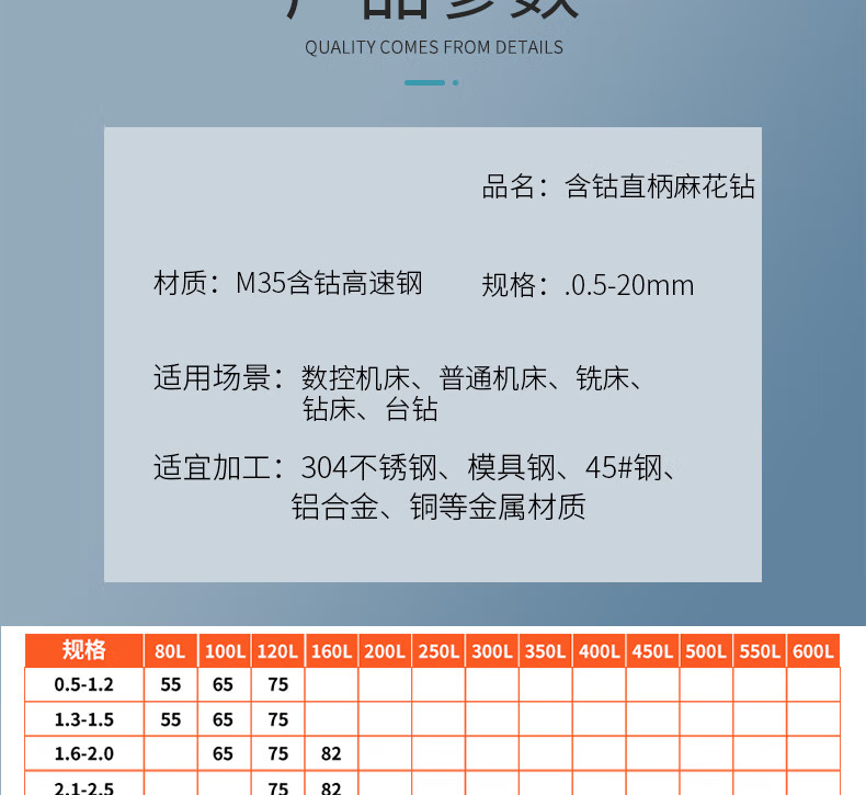 Cobalt-containing extended twist drill bit 10.1 10.2 10.3 10.4 10.5 10.6 10.7 10.8 10.9 100145200mm