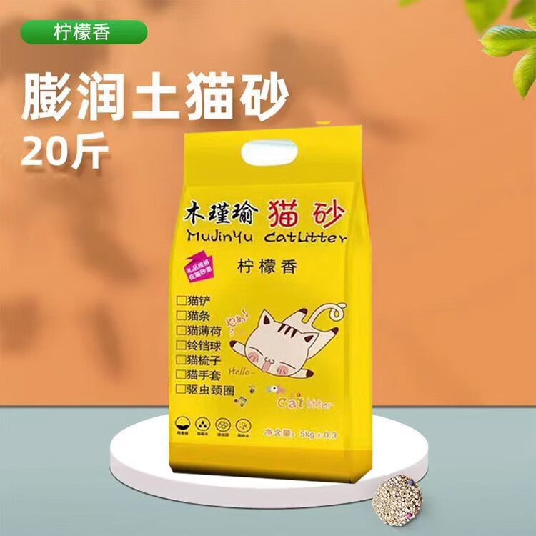 Tongrubi cat litter deodorization 20 Jin Jin equals 0.5 kg, 50 Jin Jin equals 0.5 kg, 10 kg bentonite large particle low dust activated carbon sand cat litter supplies, lemon scented cat litter deodorization, 50 Jin Jin equals 0.5 kg, 5 packs in total, great value