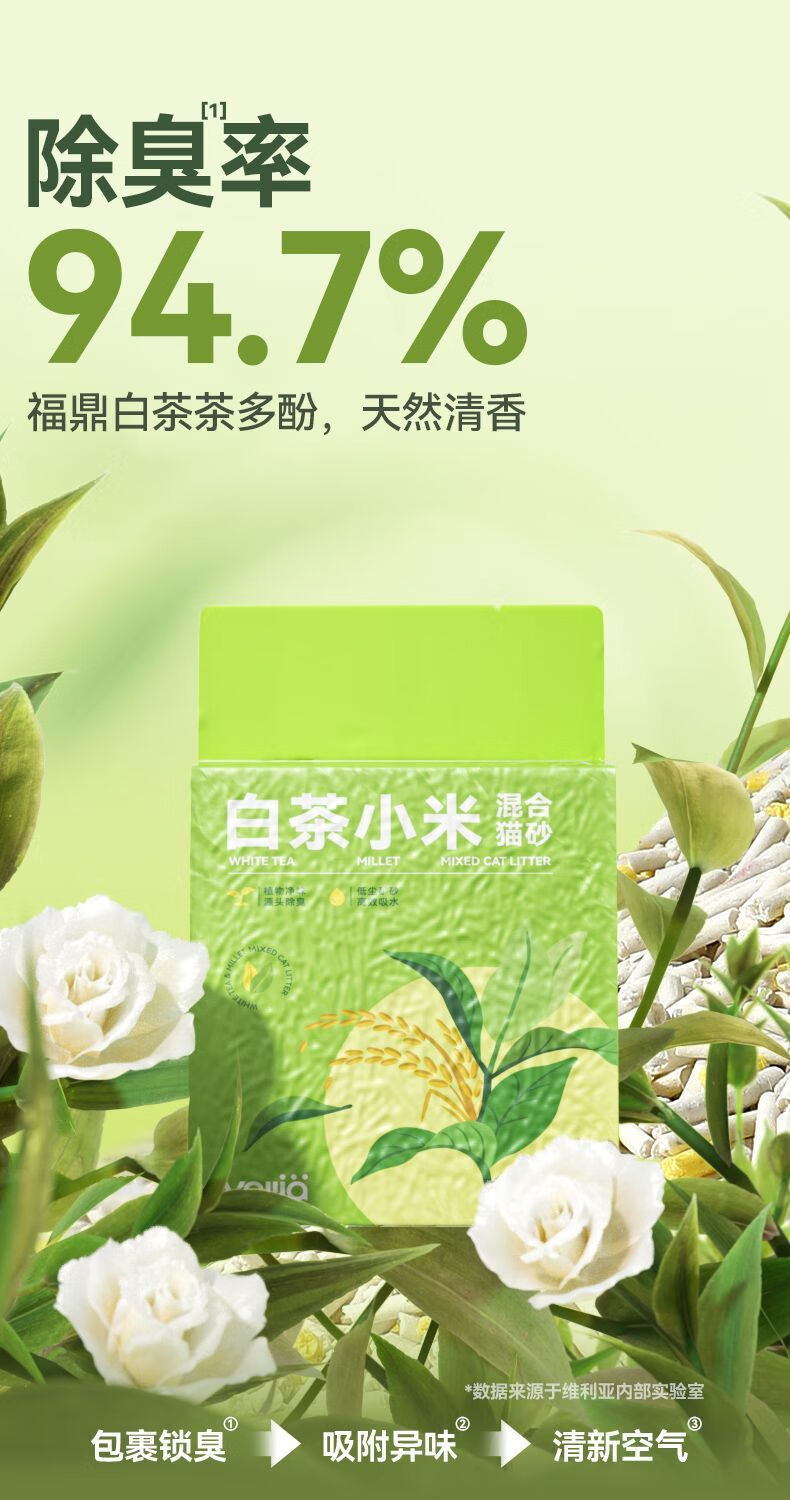 Vilia Cat Litter White Tea Millet Cat Litter Fragrant Indoor Low Dust Deodorizing Tofu Sand Bentonite Mixed Cat Litter Wholesale New Upgrade - 4 Packs - Discount Pack - One Cat Enough for 2 Months 5 Jin Jin equals 0.5 kg White Tea Millet 6 3 1 Scientific Formula