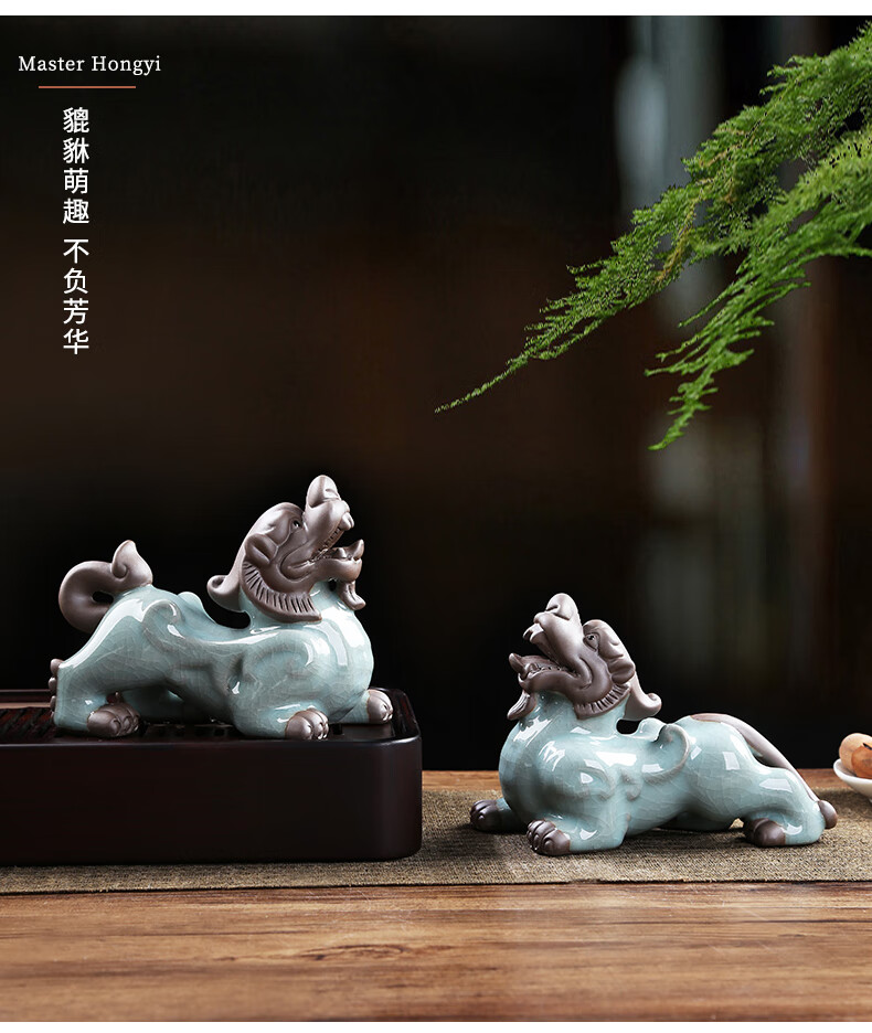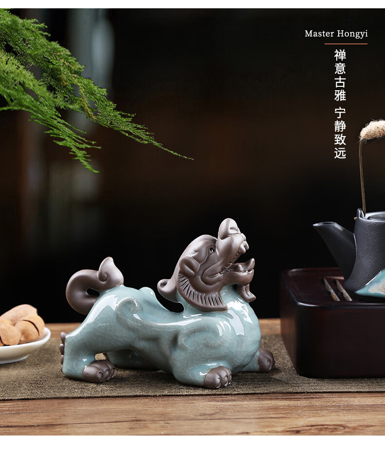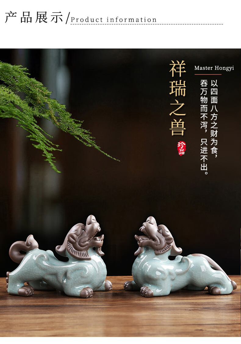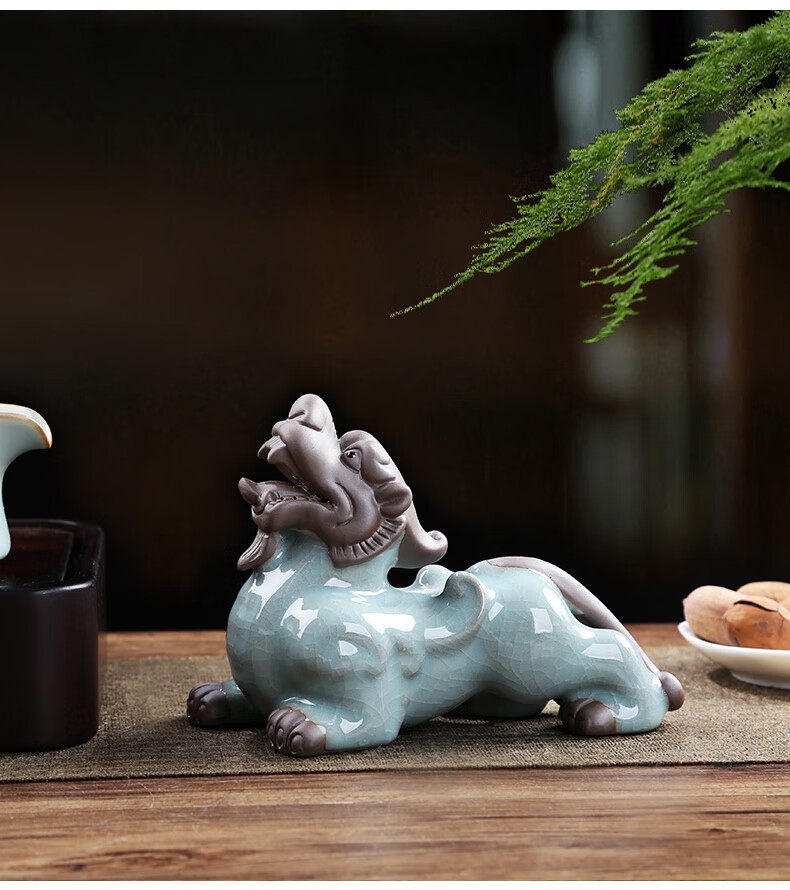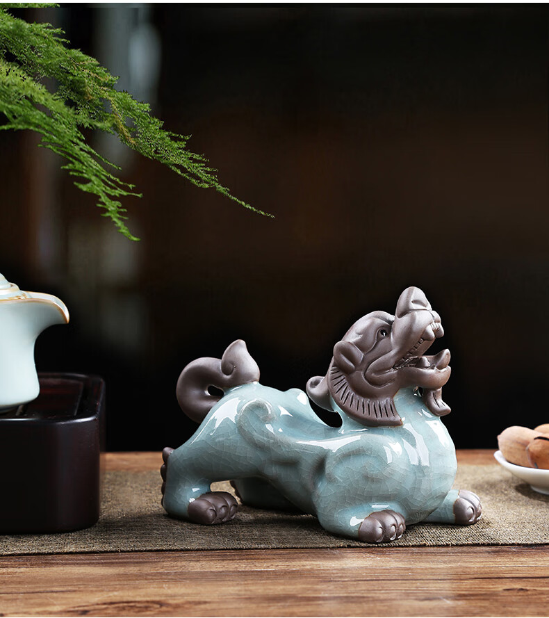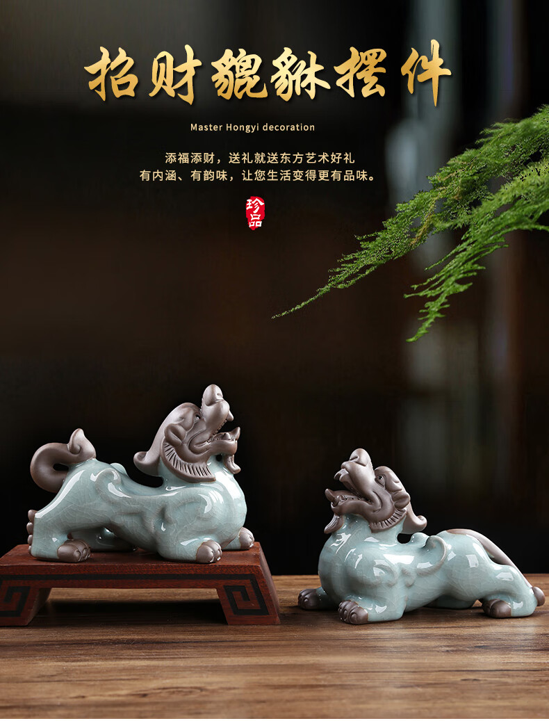 Zhenfan Pixiu ornaments, a pair of ceramic Ge Kiln Pixiu Piqiu home living room shop decoration office home decoration Ge Kiln Feitian Pixiu (pair)