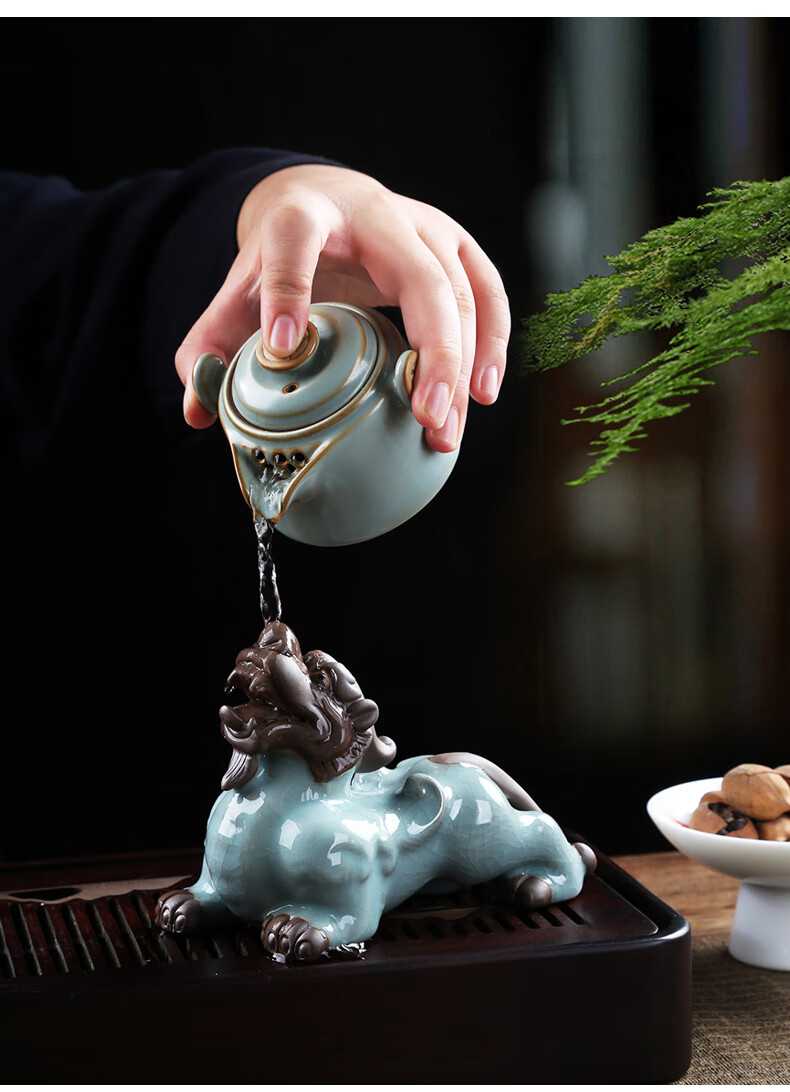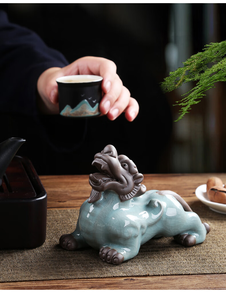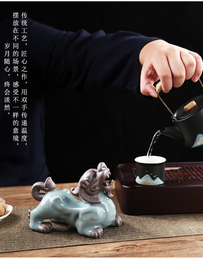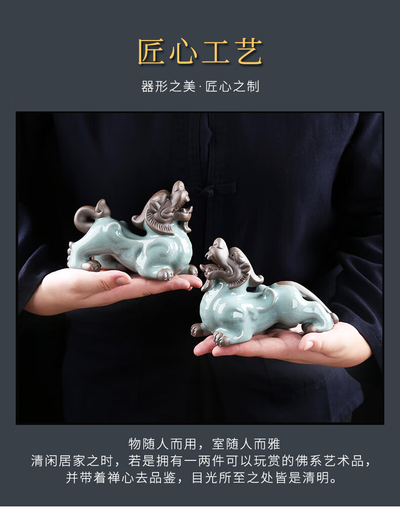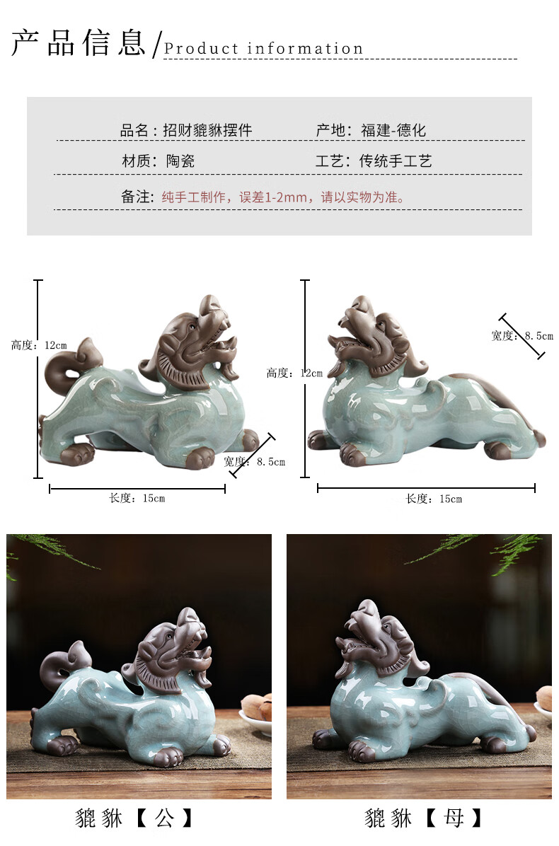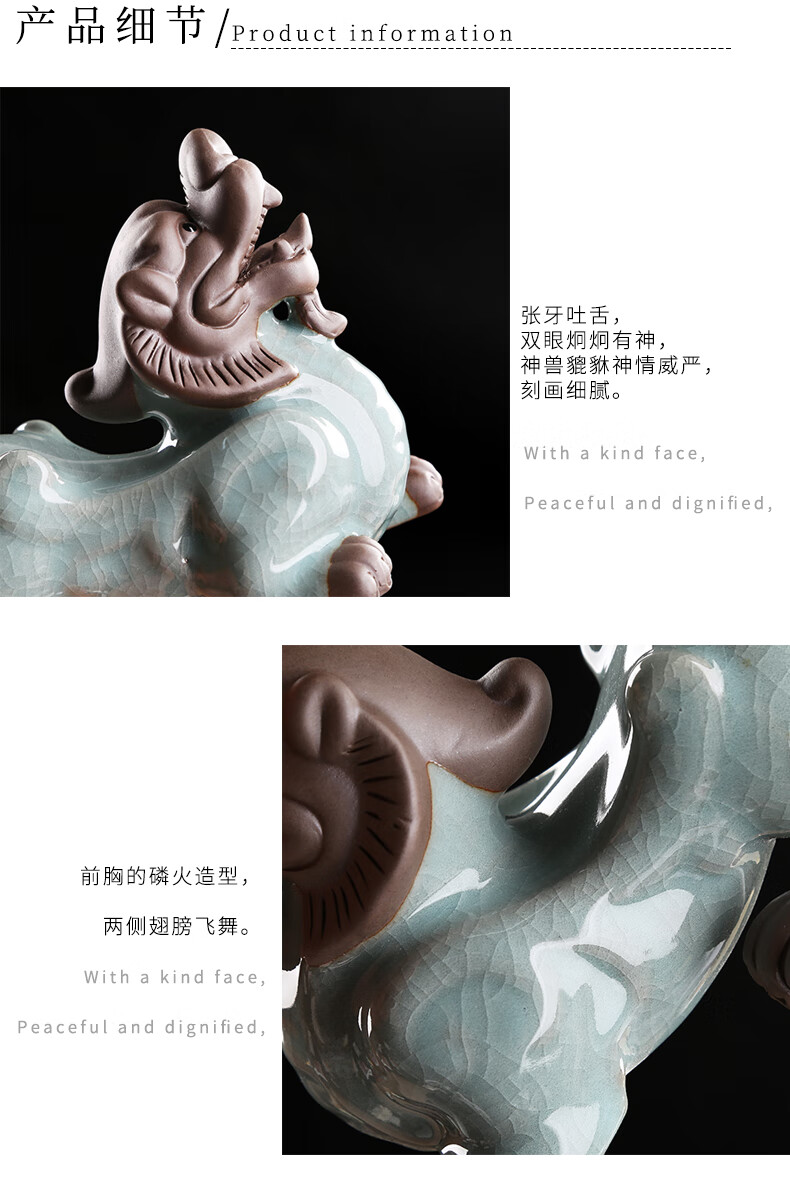 Zhenfan Pixiu ornaments, a pair of ceramic Ge Kiln Pixiu Piqiu home living room shop decoration office home decoration Ge Kiln Feitian Pixiu (pair)